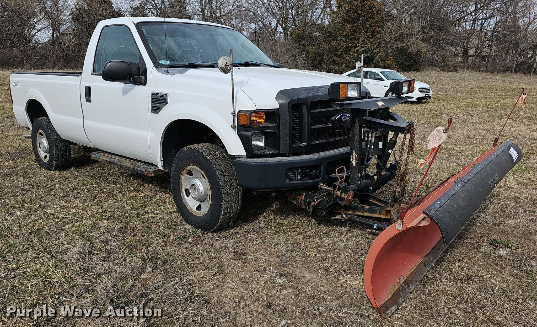2009 Ford F250 Super Duty XL pickup truck. Miles: 31,955 on odometer, VIN: 1FTNF21549EA19743, Unit #: FAC3330. Engine Displacement: 5.4L V8 SOHC, Cylinders: 8, Fuel type: Gas. Transmission Automatic, Four wheel drive. Interior AC, Heat. Features Tommy gate Capacity: 1300 lbs, Western Ultra finish snow plow Width: 8'. Tires Size: LT265/70R17. Notes Dash warning indicator: Check engine. Kansas title. Title distribution may be delayed up to 14 days from verification of funds. Johnson County, KS. 1800 W Old 56 Hwy. Olathe, KS 66061