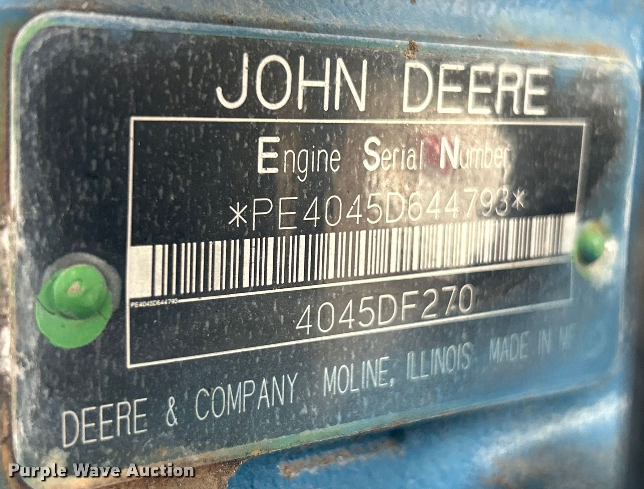 2007 Thompson Pump pump. Hours: 1,837 on meter, VIN: 1T9PT12137P634030, Unit #: 513. Engine John Deere 4045DF270B, Serial: PE4045D644793, Displacement: 4.5L, Cylinders: 4, Fuel type: Diesel. Chassis Overall dimension: 11' L x 63" W, Hitch: Pintle, Axle: Single. Features Inlet/outlet diameter: 4". Tires Rear: ST225/75R15. City of Tulsa. 108 N Trenton Ave. Tulsa, OK 74120