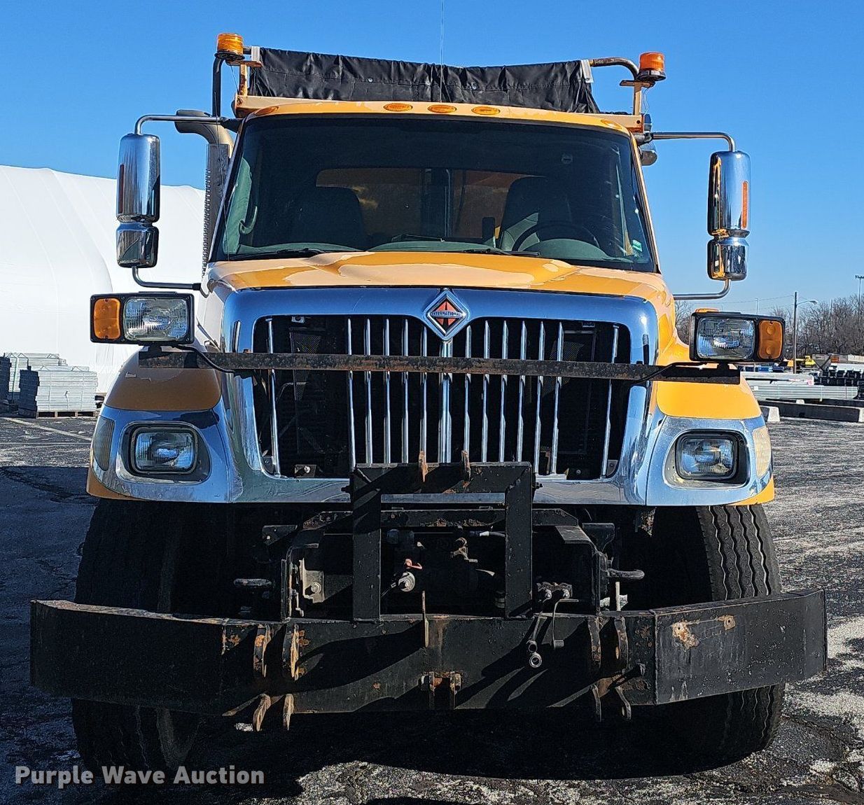 2006 International 7400 dump truck. Miles: 153,061 on odometer, VIN: 1HTWHAZT96J303208, Unit #: 7631. Engine Displacement: 9.3L, Cylinders: 6, Fuel type: Diesel. Transmission Automatic. Chassis Axles: Tandem, Differential lock: Inter-axle, Suspensions: Spring over walking beam, Brakes: Air, PTO, Front mount PTO. Interior AC, Heat, Heated mirrors, Power windows, Cruise control. Features Dump bed Model: CS140DA, 15' L x 100" W, Side height: 36", Bed type: Steel, Bed vibrator, Roll tarp, Ram: Single, End gate: Air operated, Mid-mount plow Width: 120". Tires Front: 315/80R22.5, Rear: 11R22.5. Notes Hydraulic leak on mid mount plow, Dash warning indicator: Check AC. Missouri title. Title distribution may be delayed up to 14 days from verification of funds. Missouri Department of Transportation-Southwest District. 3025 E Kearney St. Springfield, MO 65803