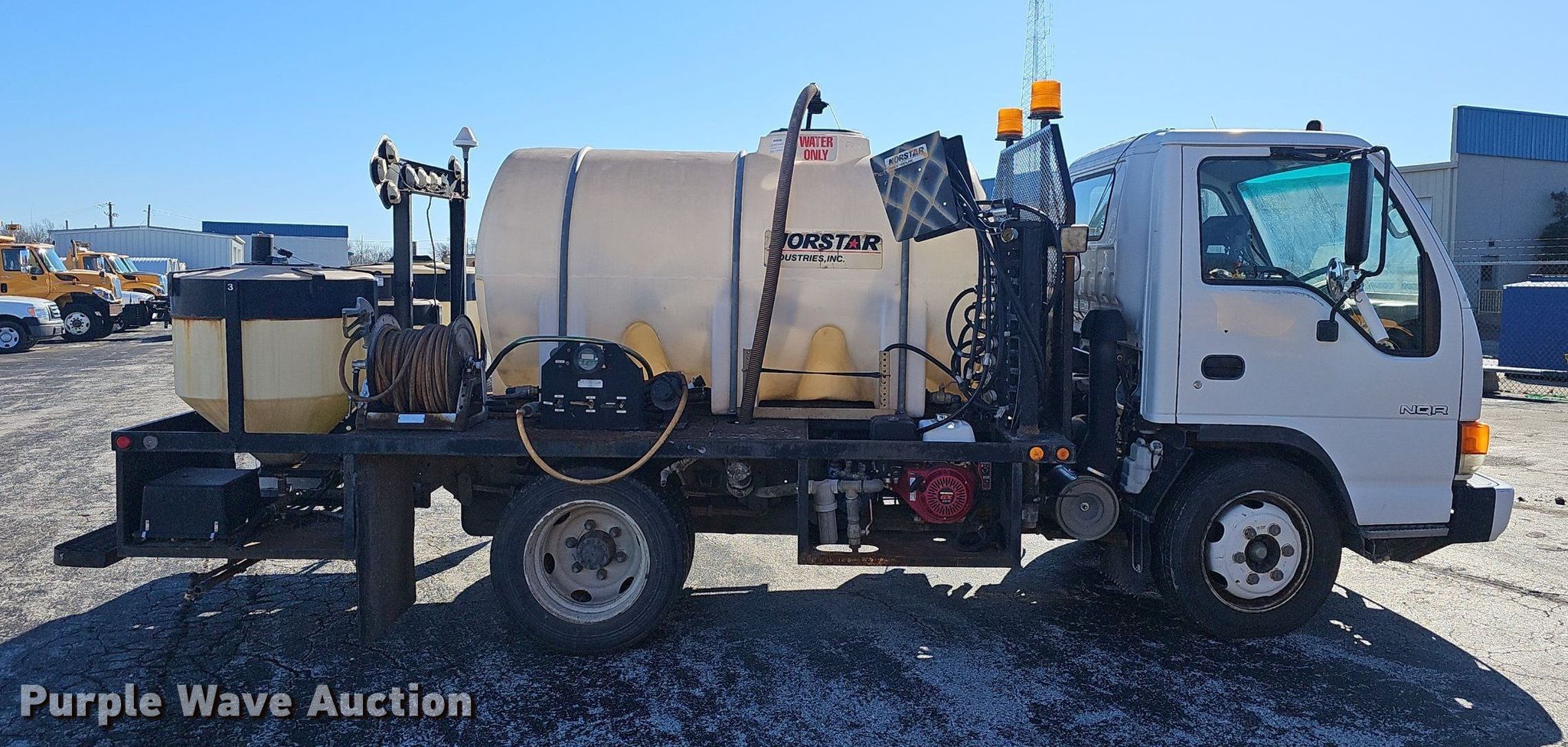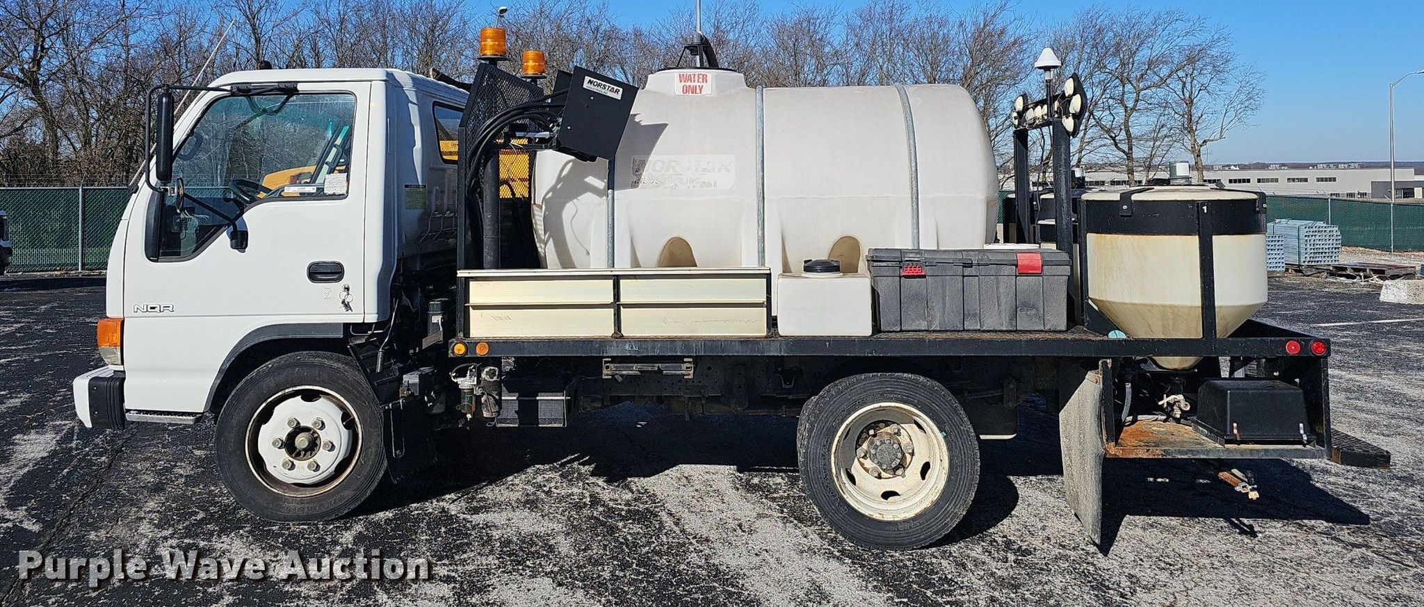 2001 Isuzu NQR flatbed truck. Miles: 91,638 on odometer, VIN: JALE5B14317900600, Unit #: G8699. Engine Displacement: 4.75L, Cylinders: 4, Fuel type: Diesel. Transmission Automatic. Chassis Axles: Single, Suspensions: Spring, Brakes: Hydraulic, PTO, GVWR: 17,950 lbs. Interior AC, heat, Power windows, power locks. Features Bed / tank 12' 6" L x 96" W, Spray bar: Rear, Top fill, Capacity: 700 gallons, (3) chemical tanks (2) 70 gallon, 30 gallon. Tires Size: 225/70R19.5. Missouri title. Title distribution may be delayed up to 14 days from verification of funds. Missouri Department of Transportation-Southwest District. 3025 E Kearney St. Springfield, MO 65803