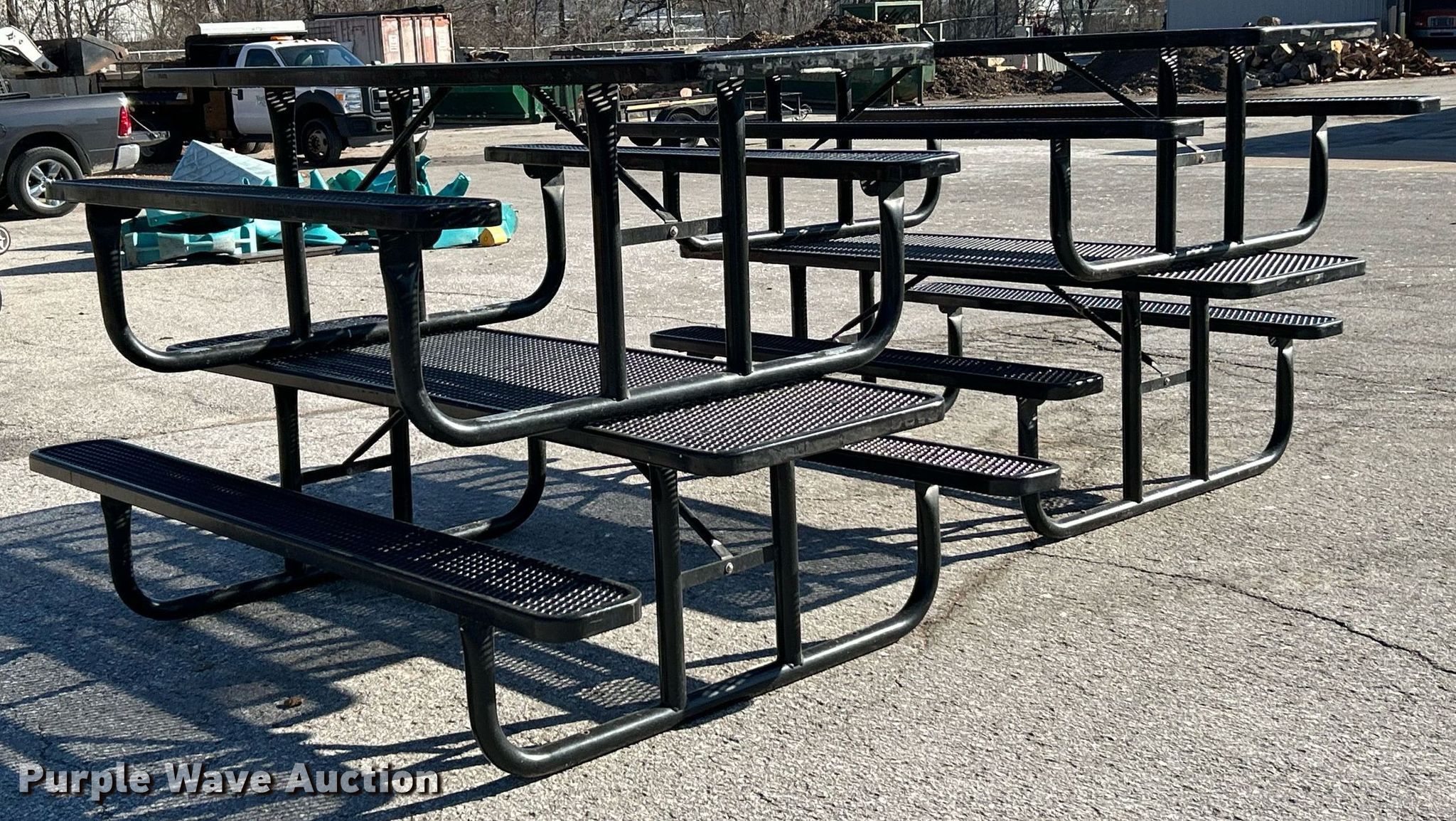 Purple Wave is selling a used Furniture in Missouri. This item is a (4) 8' picnic tables with the following: (2) Handicap accessible tables
