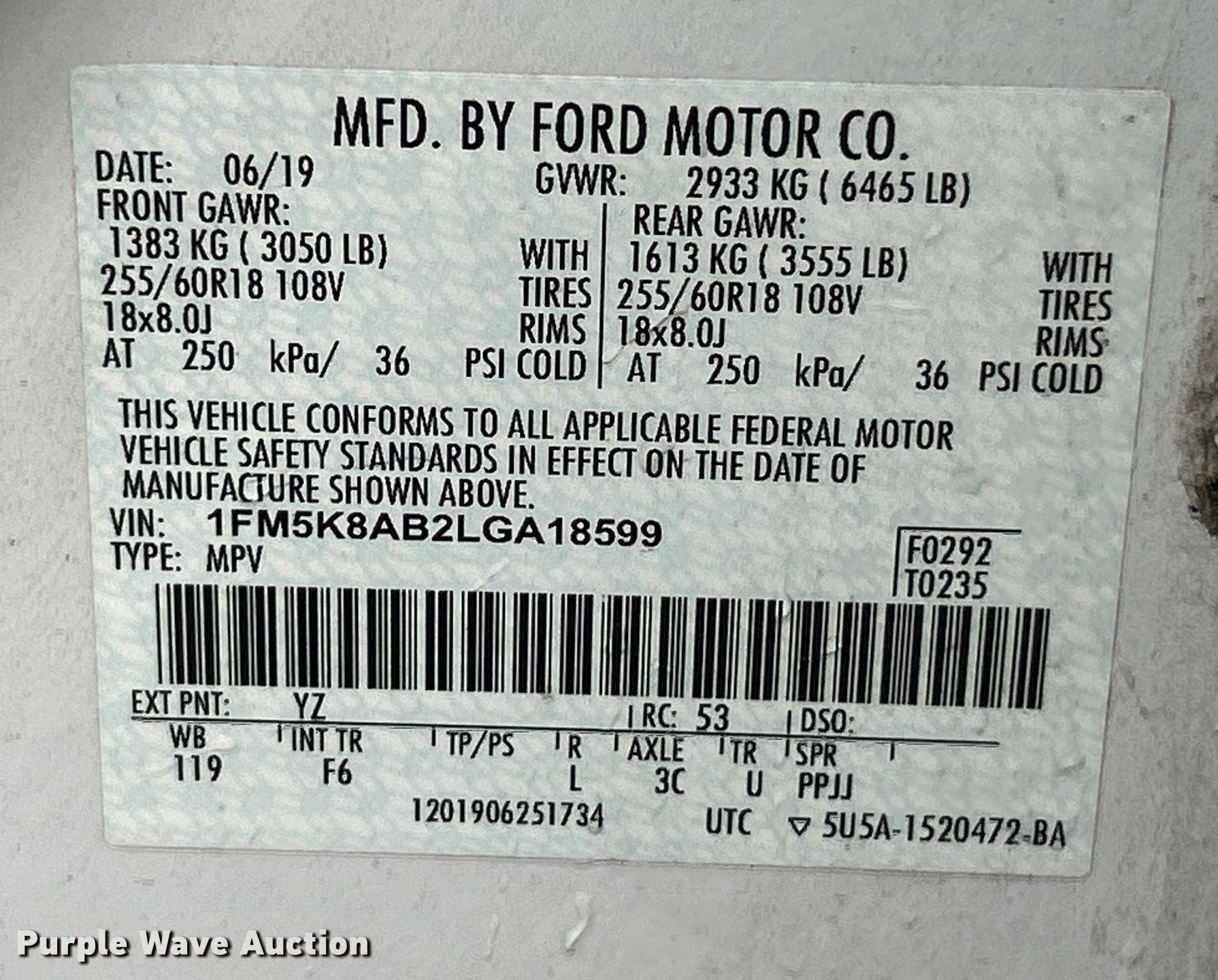 Purple Wave is selling a used Passenger Vehicle in Missouri. This item is a 2020 Ford Explorer Police Interceptor SUV with the following: Miles: 97,871 on odometer, VIN: 1FM5K8AB2LGA18599