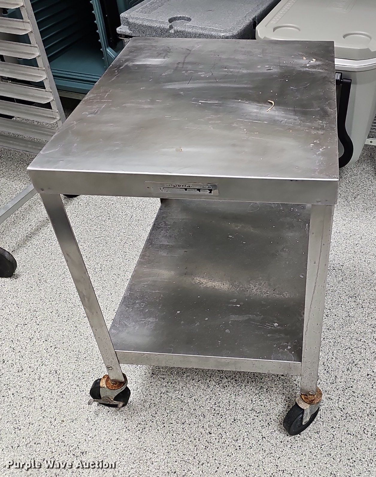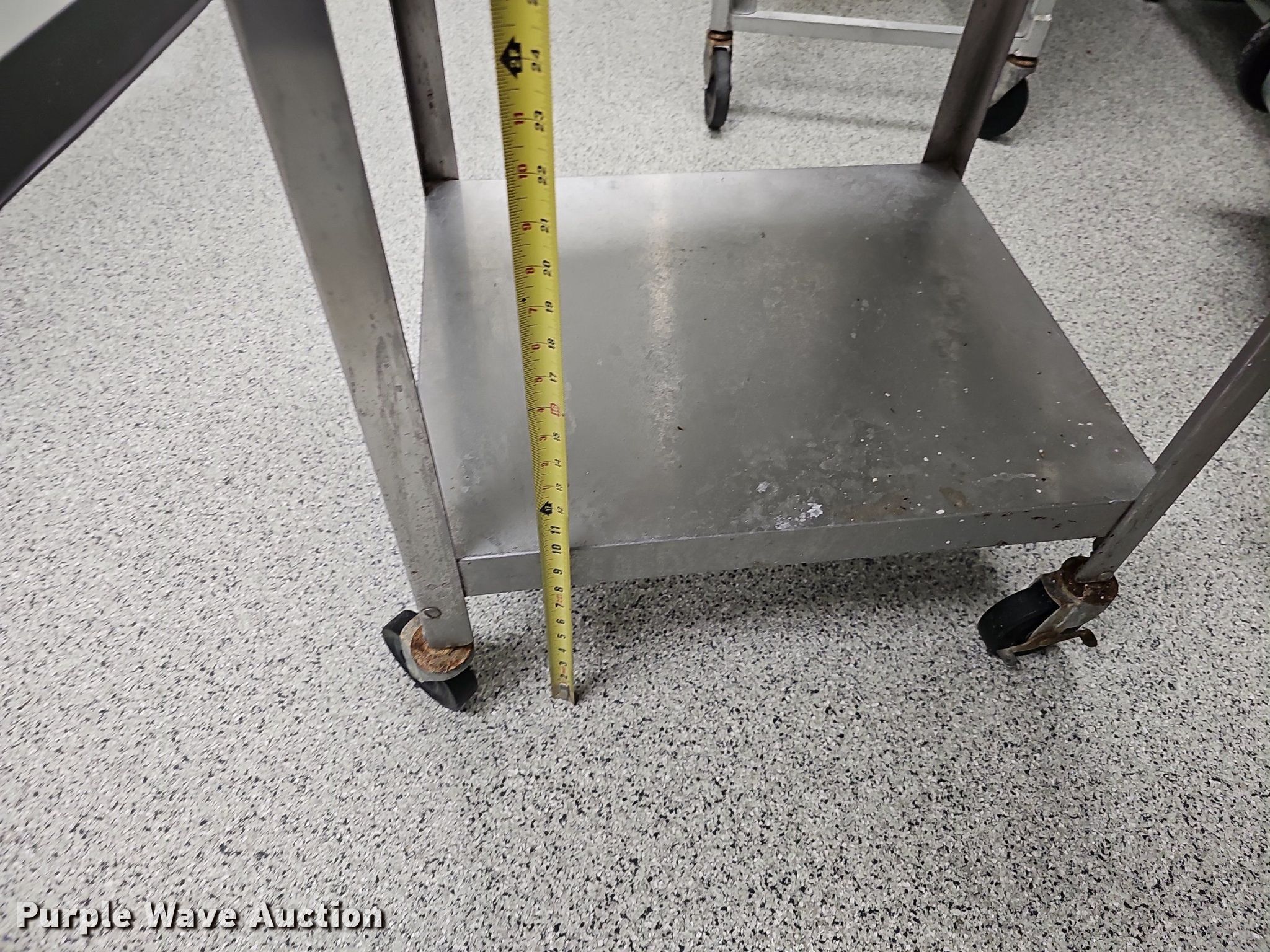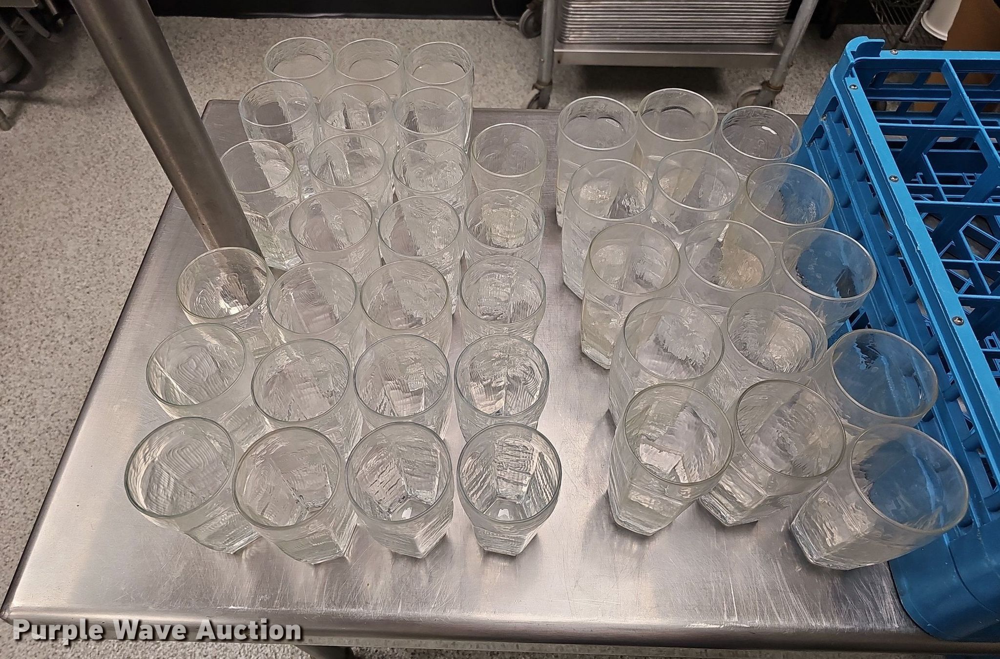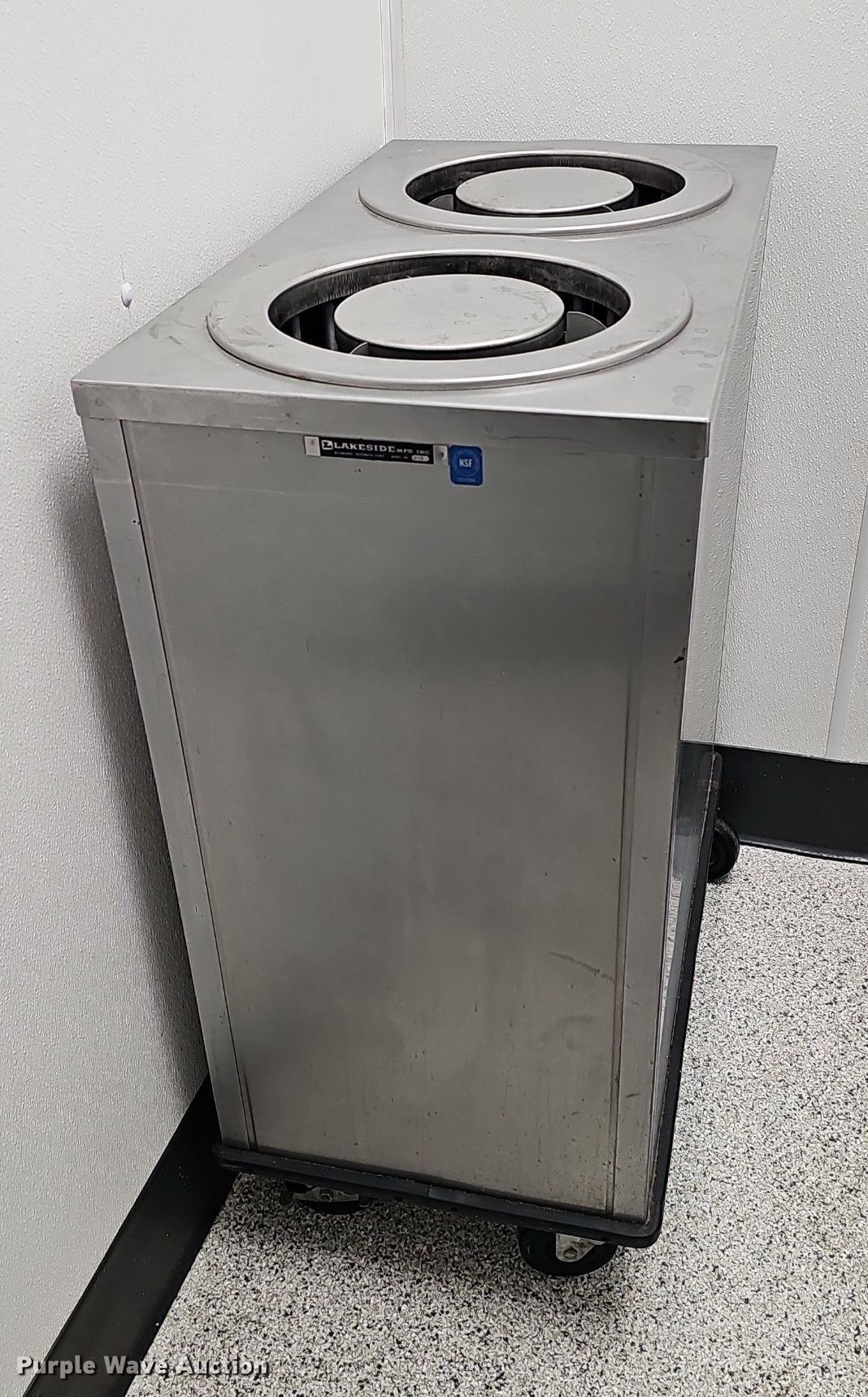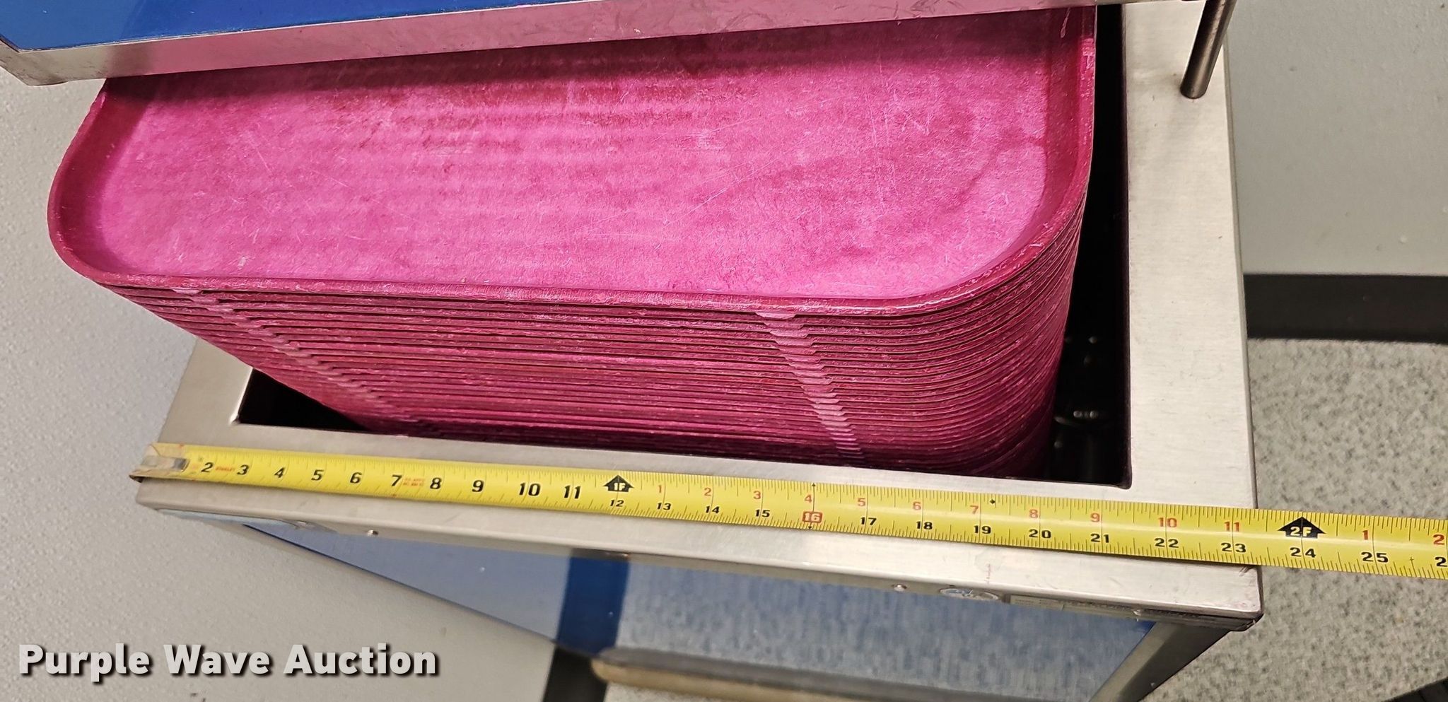 Purple Wave is selling a used Restaurant Equip. in Nebraska. This item is a Restaurant equipment with the following: Panasonic Pro II microwave, Lakeside 925 plate cart, 29 1/2" L x 16" W x 36" H, Delfield Company serving tray cart, 23 1/2" L x 19 1/2" W x 51" H, (75) trays, (30) bowls, (40) glass cups, Metal cart, 24" L x 20" W x 29" H, (2) Office chairs