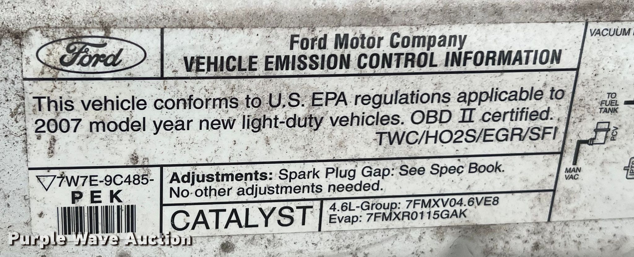 2007 Ford Crown Victoria Police Interceptor. Miles: 24,705 on odometer, VIN: 2FAFP71W57X111582. Engine Displacement: 4.6L V8 SOHC, Cylinders: 8, Fuel type: Gas. Transmission Automatic. Interior AC, Heat, Seat: Power driver, Power windows, Power locks. Tires Size: 235/55R17. Notes Dash warning indicator: Airbag. Texas title. Title distribution may be delayed up to 14 days from verification of funds. Alamo Area Council of Governments. 12625 Wetmore Road, Ste 436. San Antonio, TX 78247