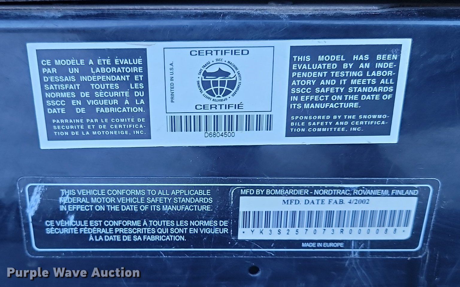 Purple Wave is selling a used ATV in South Dakota. This item is a 2003 Ski-doo Rotax 600 snowmobile with the following: Miles: 4,350 on odometer, VIN: YK3S257073R000088, Unit #: GFP03