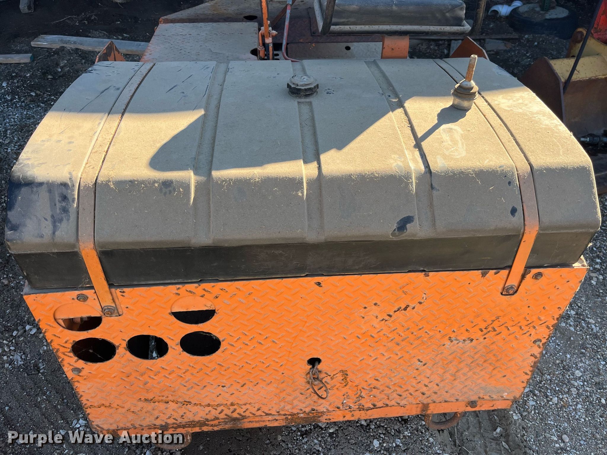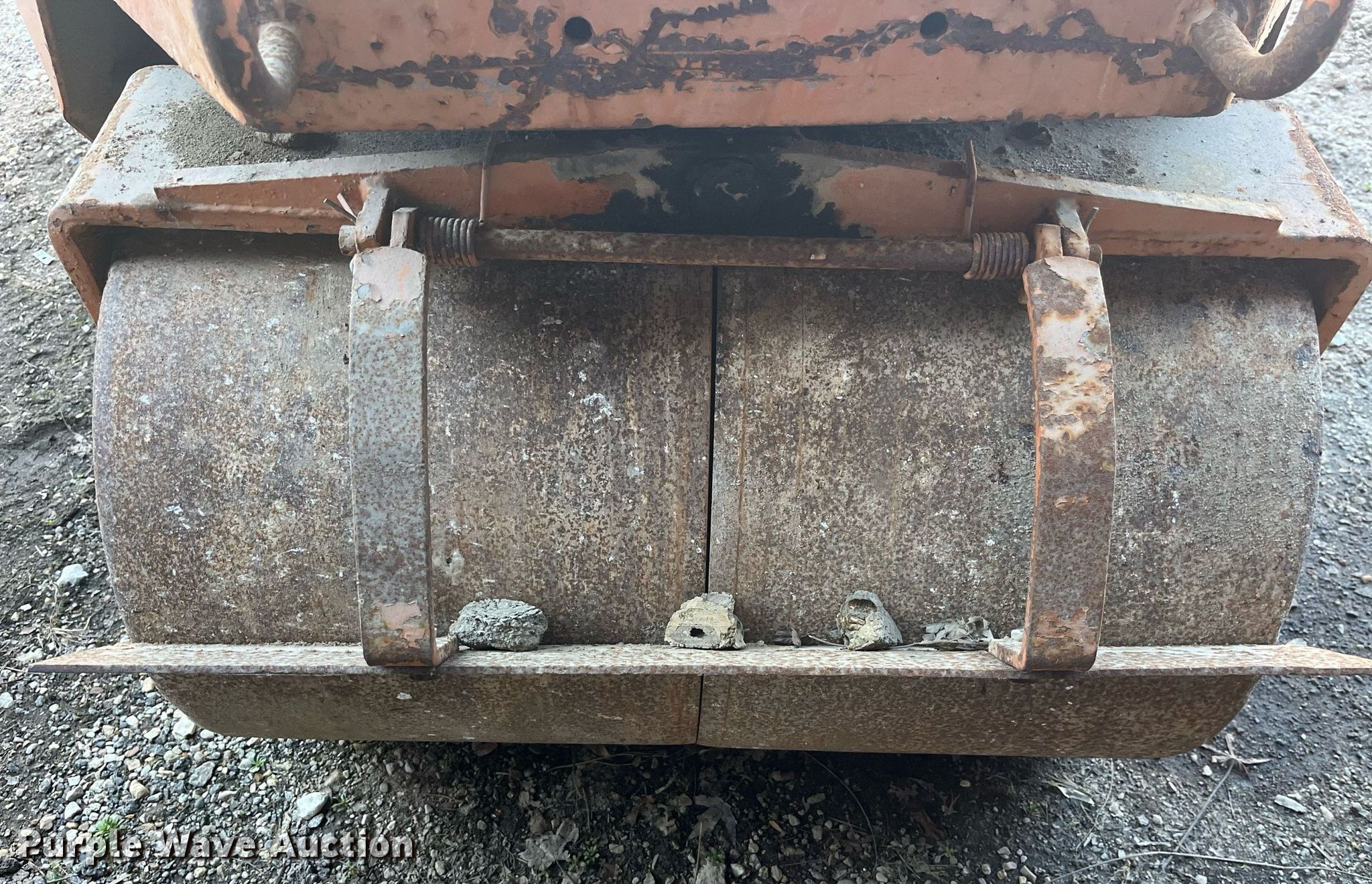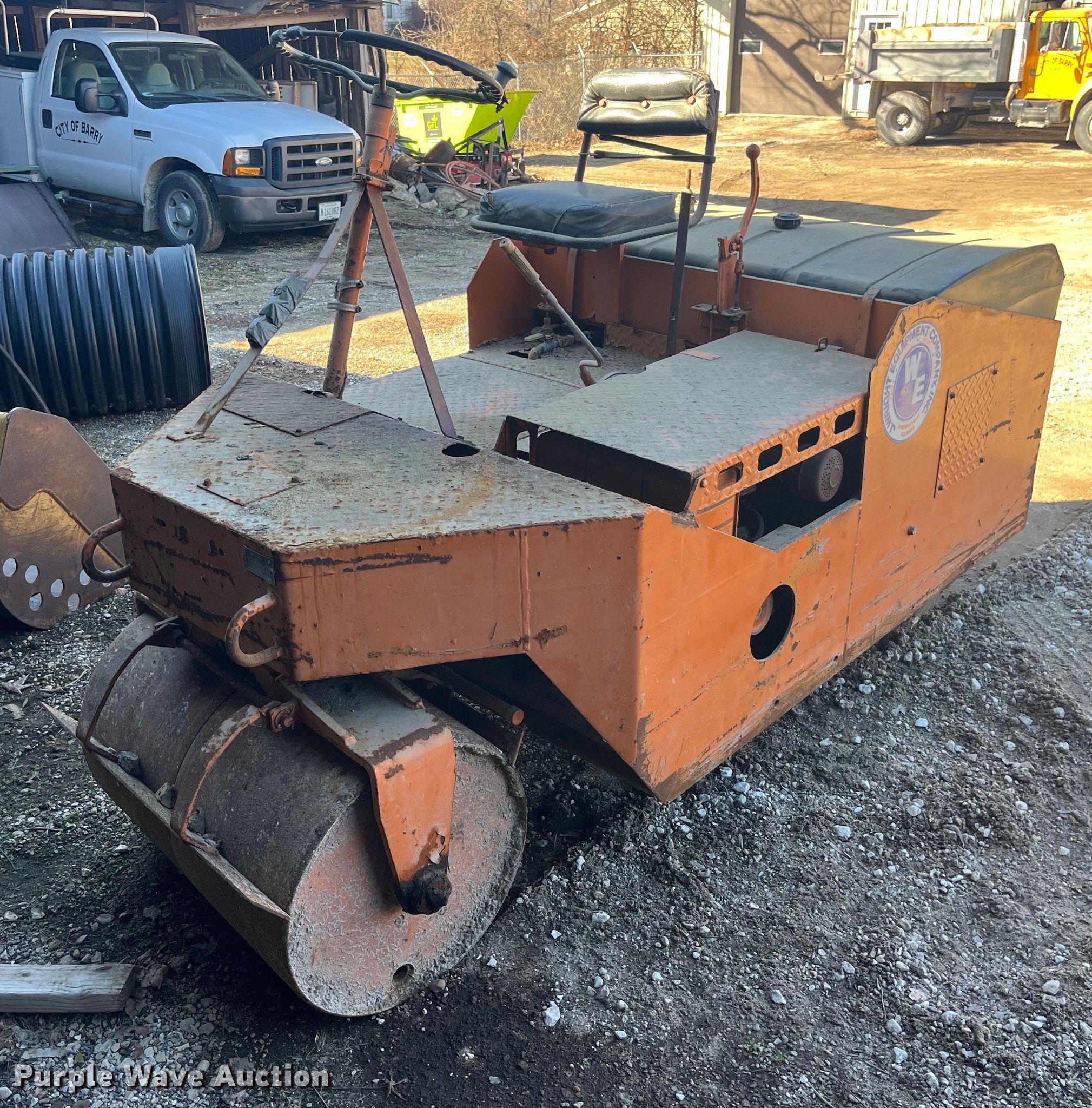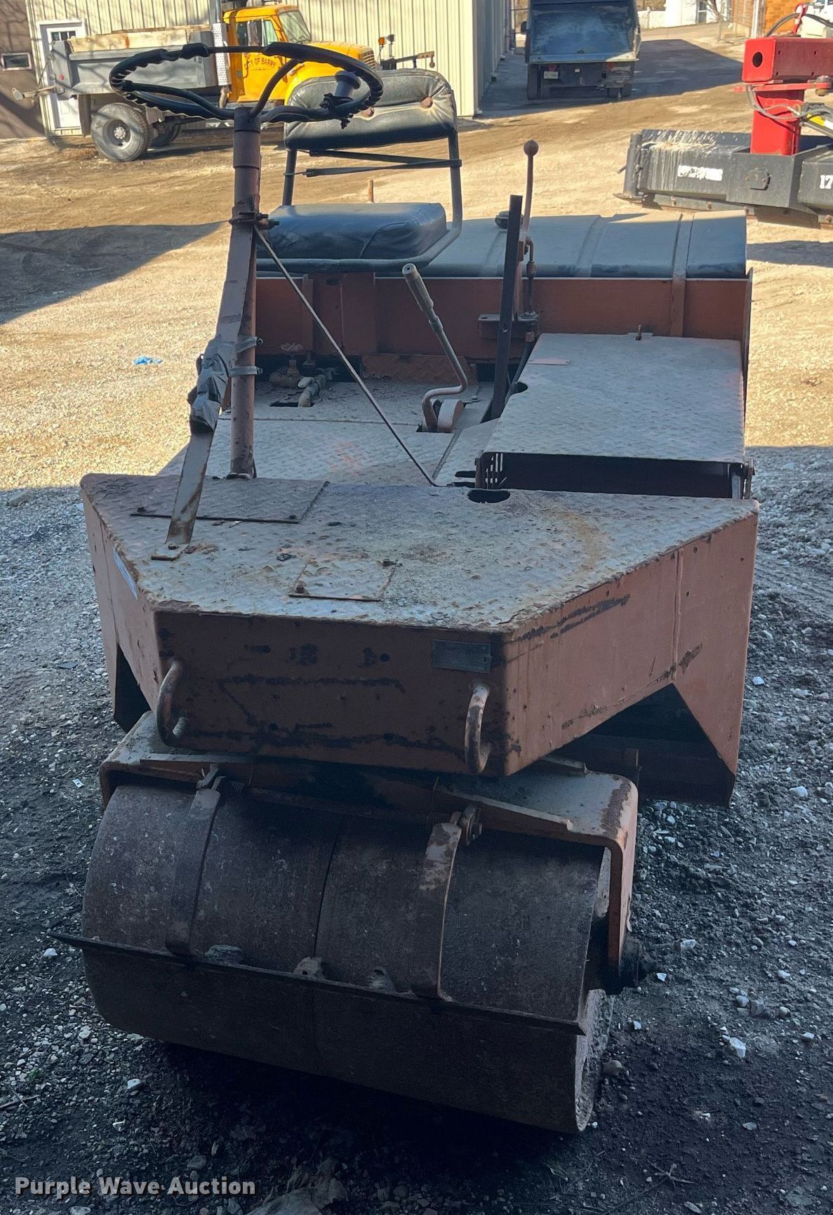 Rosco Vibrastat II double drum roller. Serial: 21697. Engine Cylinders: 1, Fuel type: Gas. Transmission Hydrostatic. Features Drum: Smooth, Front drum Width: 30", Diameter: 20", Rear drum Width: 35.5", Drum scrapers: Front, Rear. Notes No battery, Engine issues, Non-operational unit. City of Barry, IL. 1005 Bainbridge Street. Barry, IL 62312