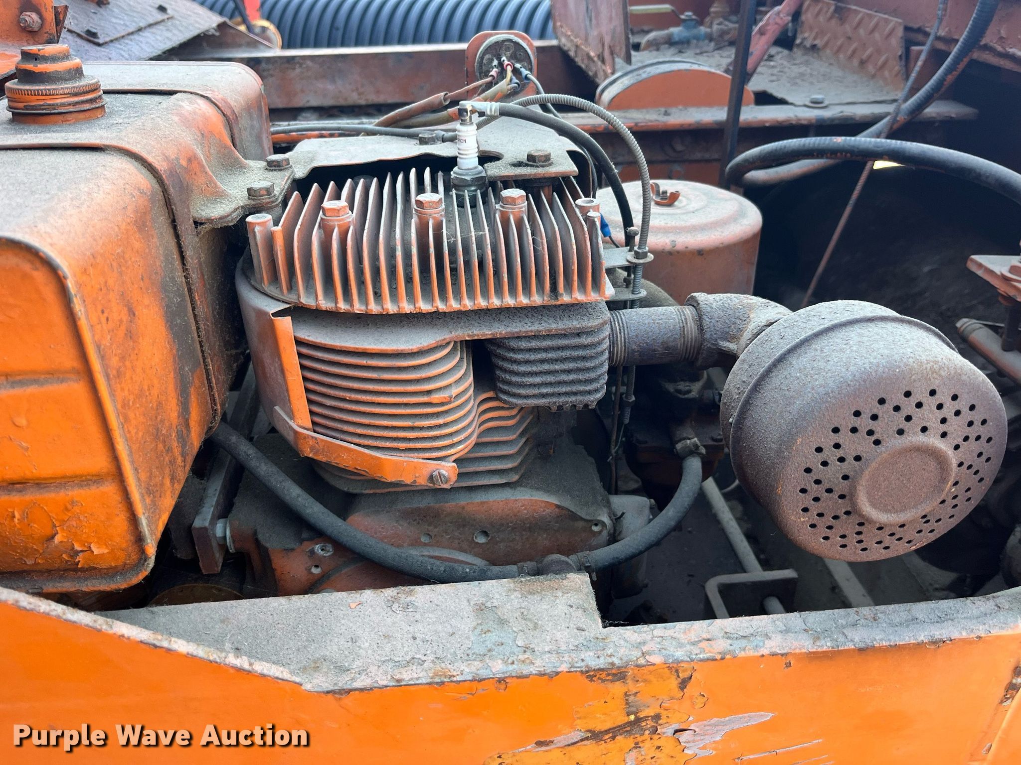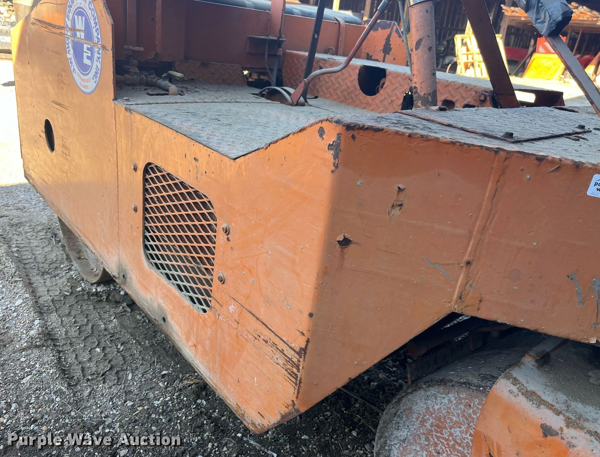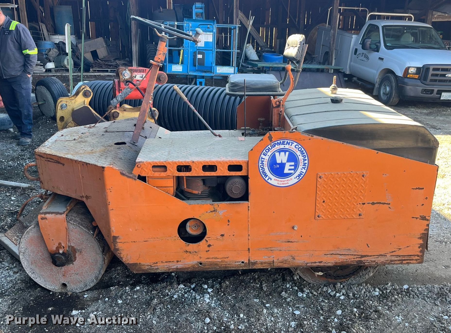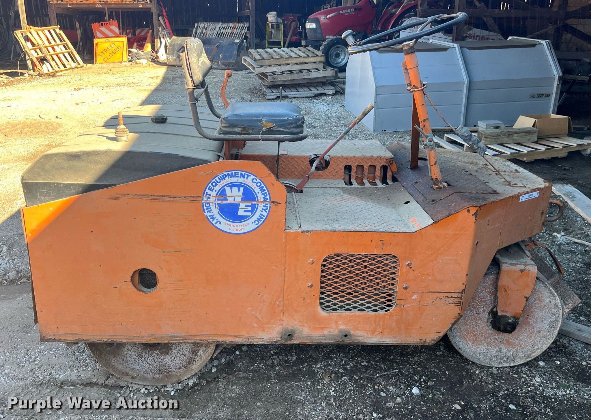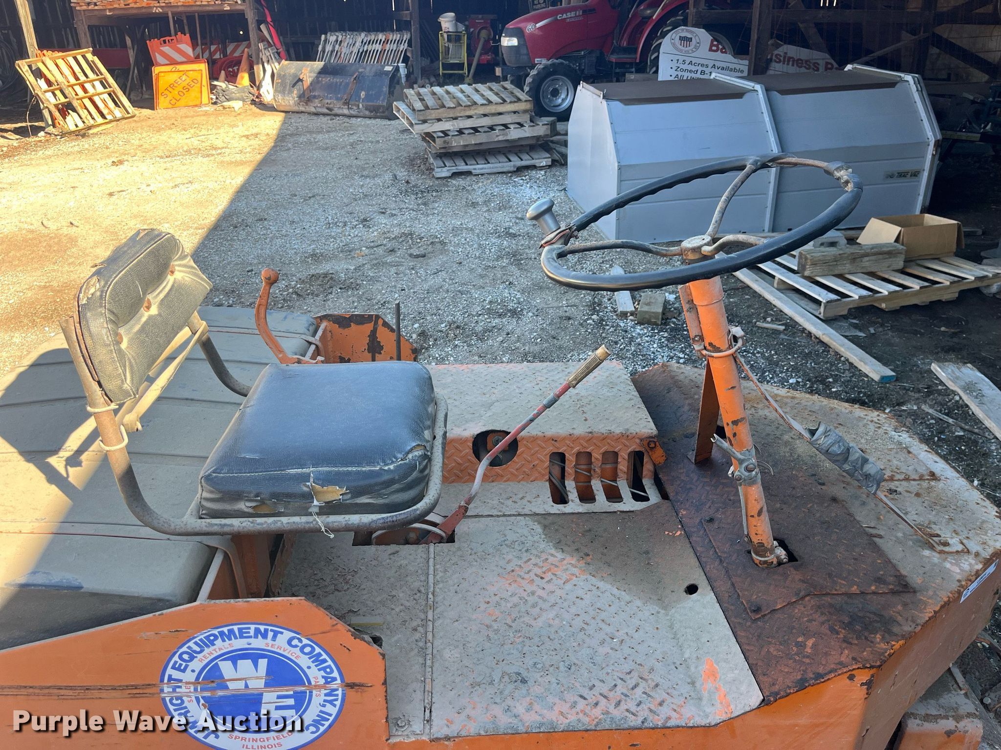 Rosco Vibrastat II double drum roller. Serial: 21697. Engine Cylinders: 1, Fuel type: Gas. Transmission Hydrostatic. Features Drum: Smooth, Front drum Width: 30", Diameter: 20", Rear drum Width: 35.5", Drum scrapers: Front, Rear. Notes No battery, Engine issues, Non-operational unit. City of Barry, IL. 1005 Bainbridge Street. Barry, IL 62312
