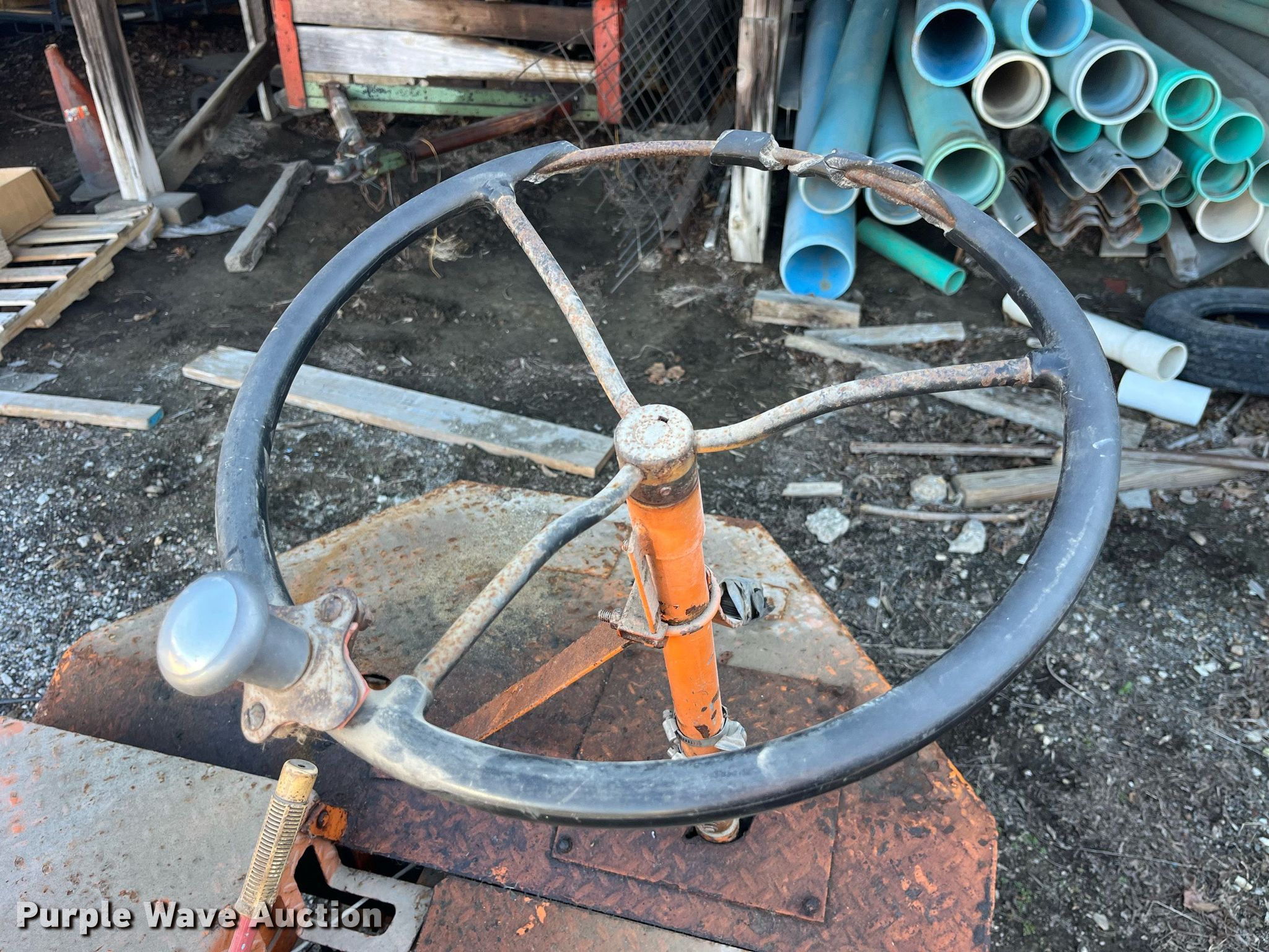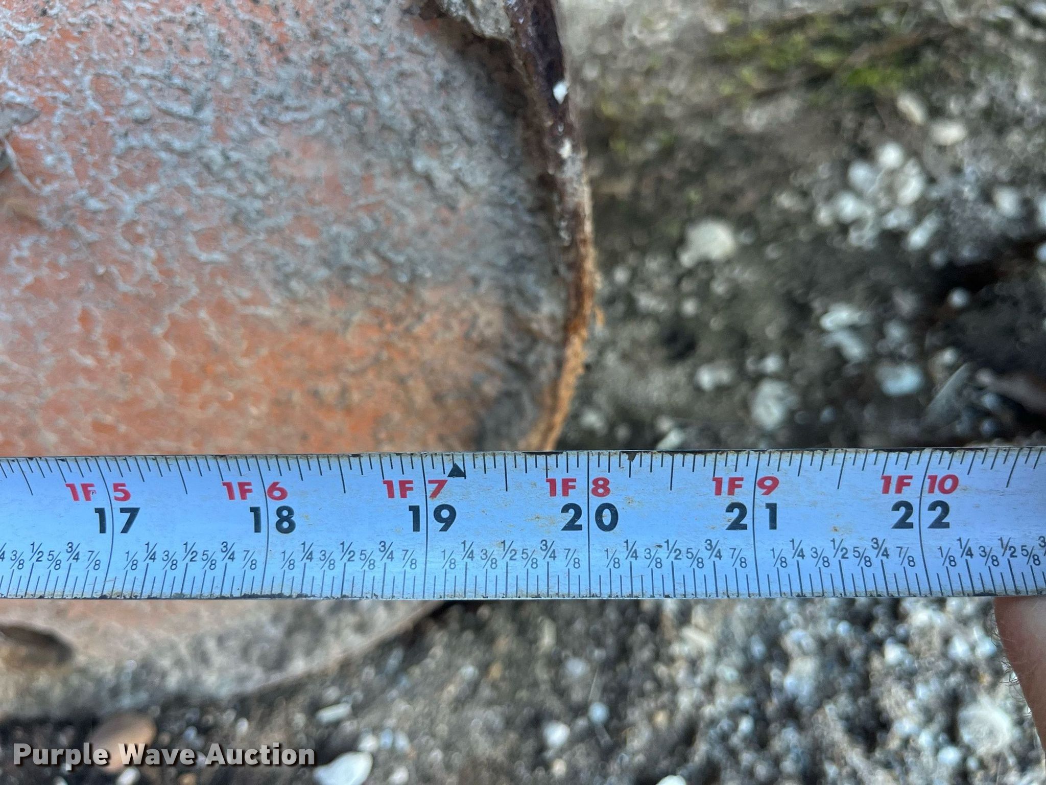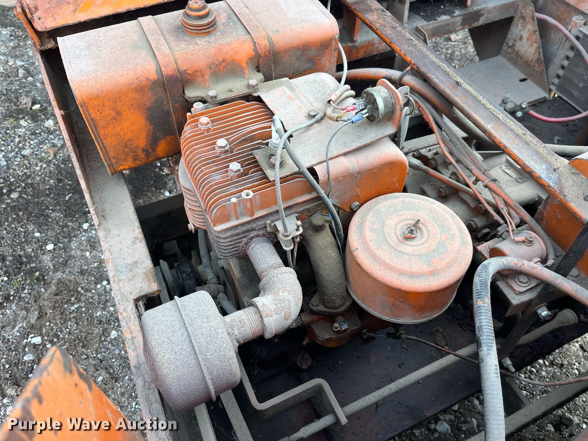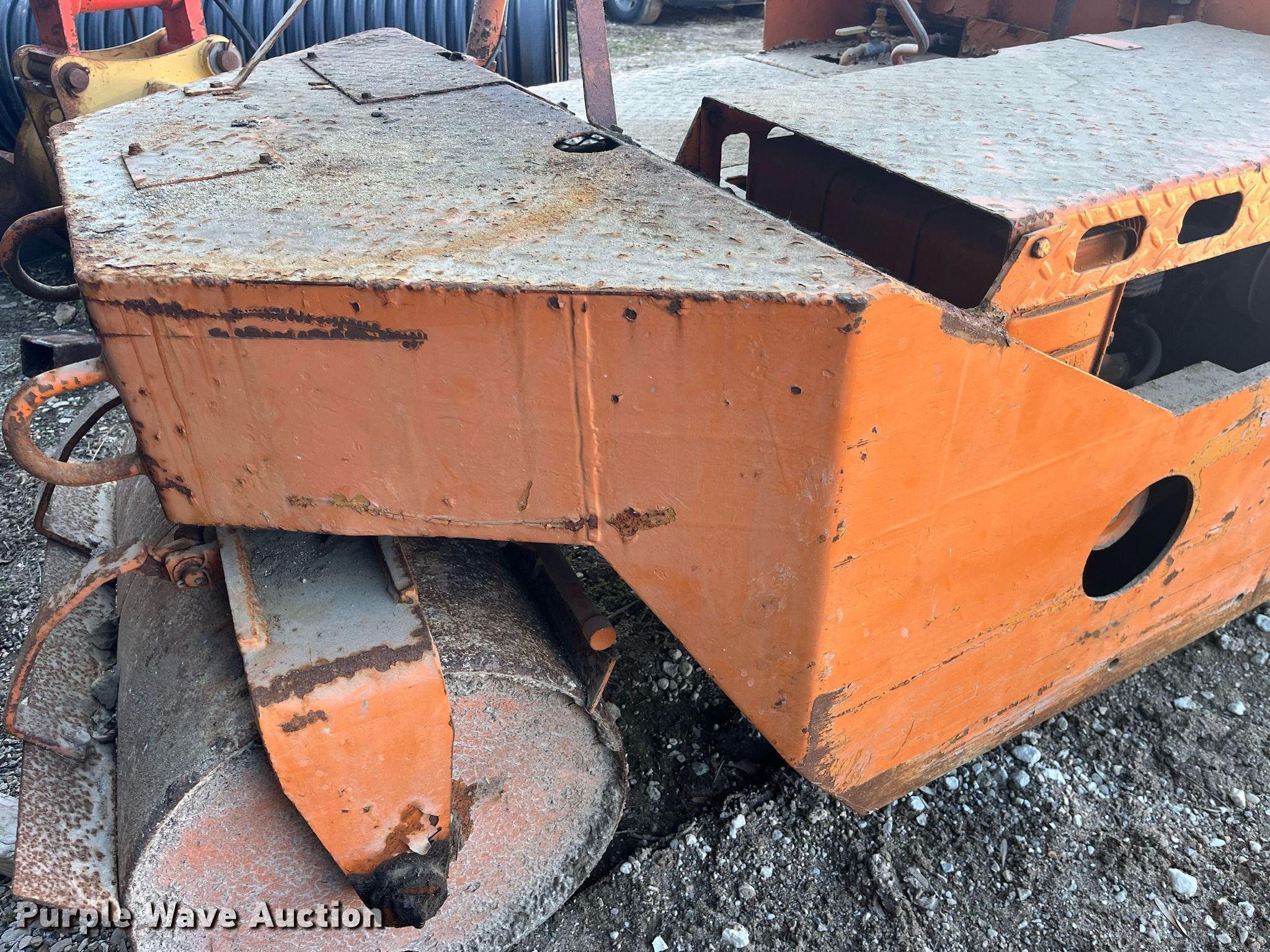 Rosco Vibrastat II double drum roller. Serial: 21697. Engine Cylinders: 1, Fuel type: Gas. Transmission Hydrostatic. Features Drum: Smooth, Front drum Width: 30", Diameter: 20", Rear drum Width: 35.5", Drum scrapers: Front, Rear. Notes No battery, Engine issues, Non-operational unit. City of Barry, IL. 1005 Bainbridge Street. Barry, IL 62312