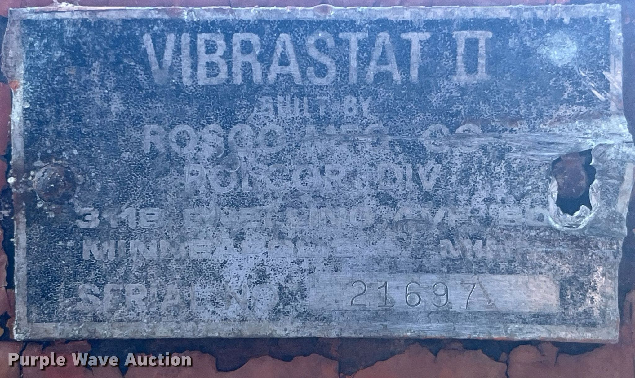 Purple Wave is selling a used Double Drum Roller Compactor in Illinois. This item is a Rosco Vibrastat II double drum roller with the following: Serial: 21697