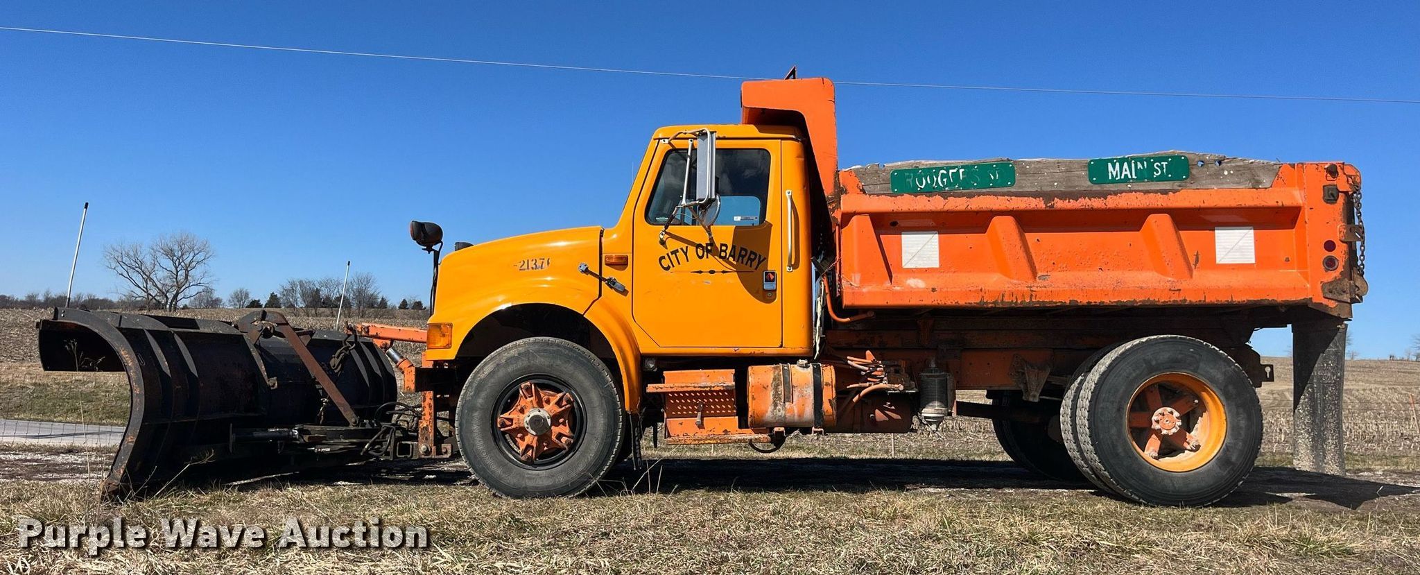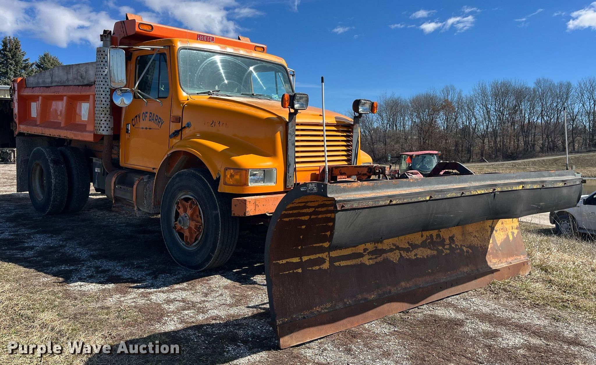 1991 International 4900 dump truck. Miles: 119,959 on odometer, Hours: 9,916 on meter, VIN: 1HTSDZ4N9MH306860. Engine Displacement: 7.6L, Cylinders: 6, Fuel type: Diesel. Transmission Automatic. Chassis Axles: Single, Suspension: Spring, Brakes: Air, PTO. Interior Heat, Heated mirrors. Features Dump bed Heil SL5YD10, Capacity: 5 cu.yd., 10' L x 8' W, Side height: 28", Side board height: 8.5" and 11", Bed type: Steel, Ram: Single, End gate: Manual, Spreader HI-WAY, Plow Flink, Width: 132". Tires Size: 11R22.5. Notes Hydraulic leak on blade. Illinois title. Seller is a government entity who will be assigning and distributing the title. Please contact the seller for distribution questions. City of Barry, IL. 1005 Bainbridge Street. Barry, IL 62312
