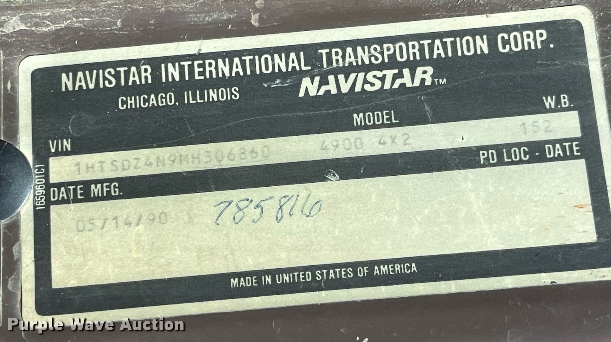 Purple Wave is selling a used Construction Dump Truck in Illinois. This item is a 1991 International 4900 dump truck with the following: Miles: 119,959 on odometer, Hours: 9,916 on meter, VIN: 1HTSDZ4N9MH306860