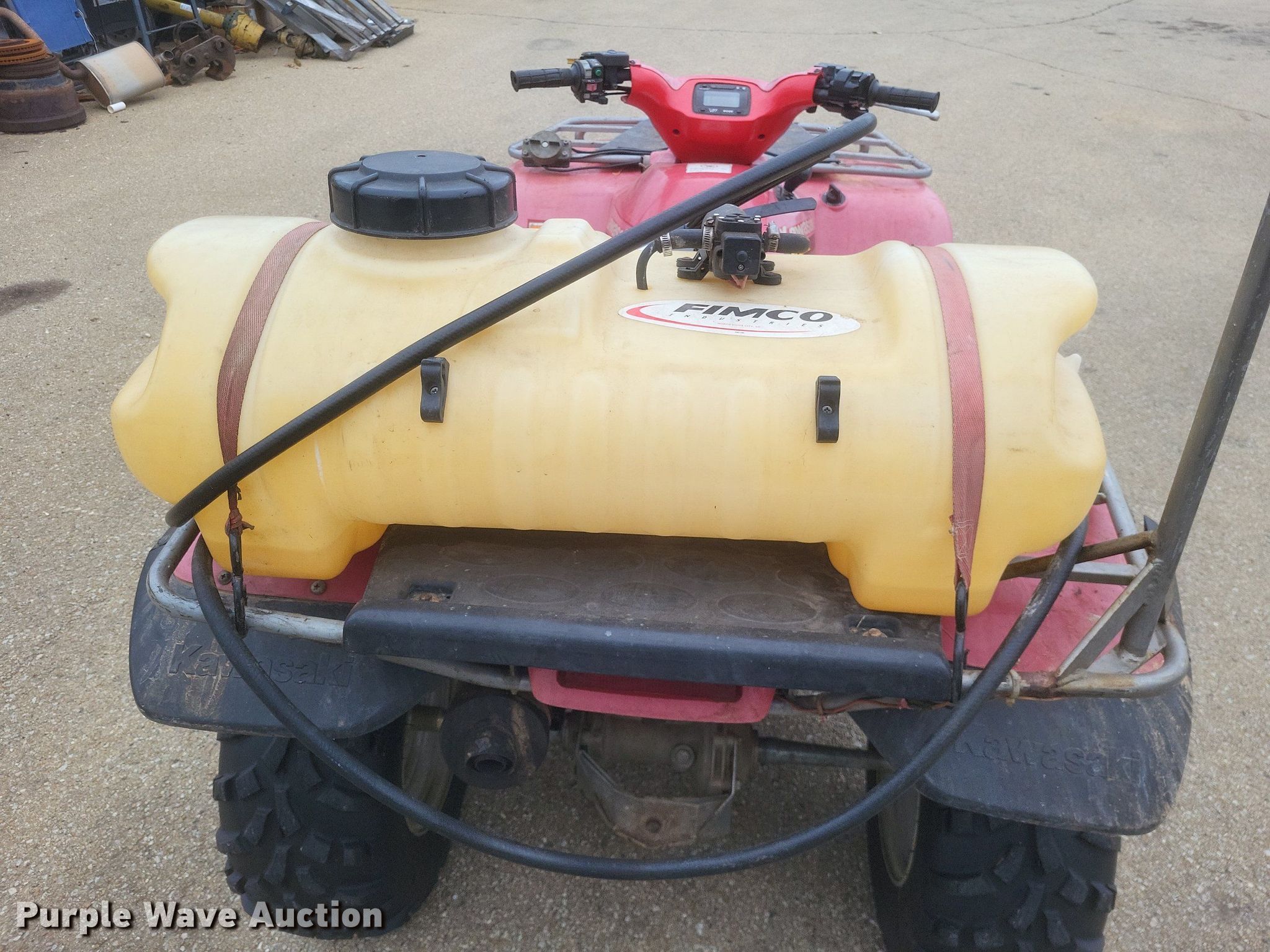 2002 Kawasaki Prairie 650 ATV. Miles: 2,380 on odometer, Hours: 513 on meter, VIN: JKAVFEA162B503042. Engine Kawasaki, Displacement: 650 cc, Cylinders: 2, Fuel type: Gas, Electric start, Recoil start. Transmission CVT. Chassis Four wheel drive. Features Winch, Grille guard, Attachment Description: Snow blade, Spot spray tank Capacity: 15 gallons, Wand included. Tires Front: 25x8.00-12, Rear: 25x10.00-12. Notes Dead battery. Transfer of ownership documentation will be a bill of sale. CITY OF FARMINGTON. 110 West Columbia. Farmington, MO 63640