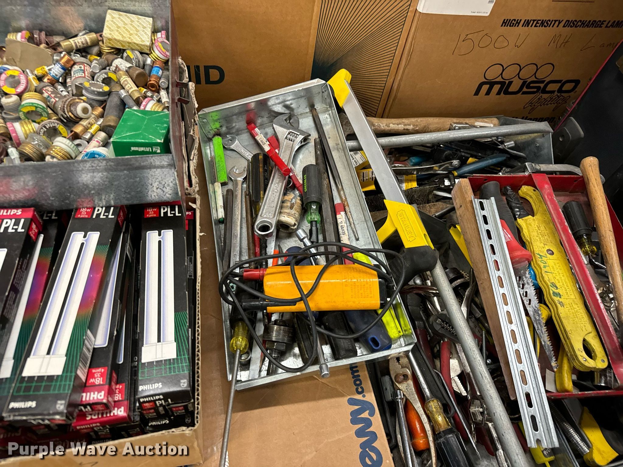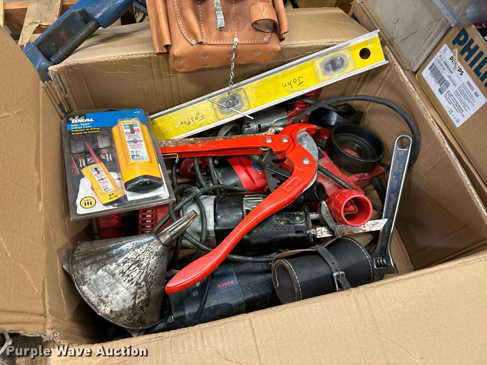 Purple Wave is selling a used Tools in Kansas. This item is a Tools with the following: Greenlee 690 blower/vacuum fish tape system, Knockout punch kits, Weller soldering gun, Greenlee circuit seeker, Greenlee circuit tracers, Pasar open tracer, Wiremold 605 raceway cutter, Black and Decker 14" chop saw, Drills, Reciprocating saws, Hammer drill, Ballasts, Led pole lights and more