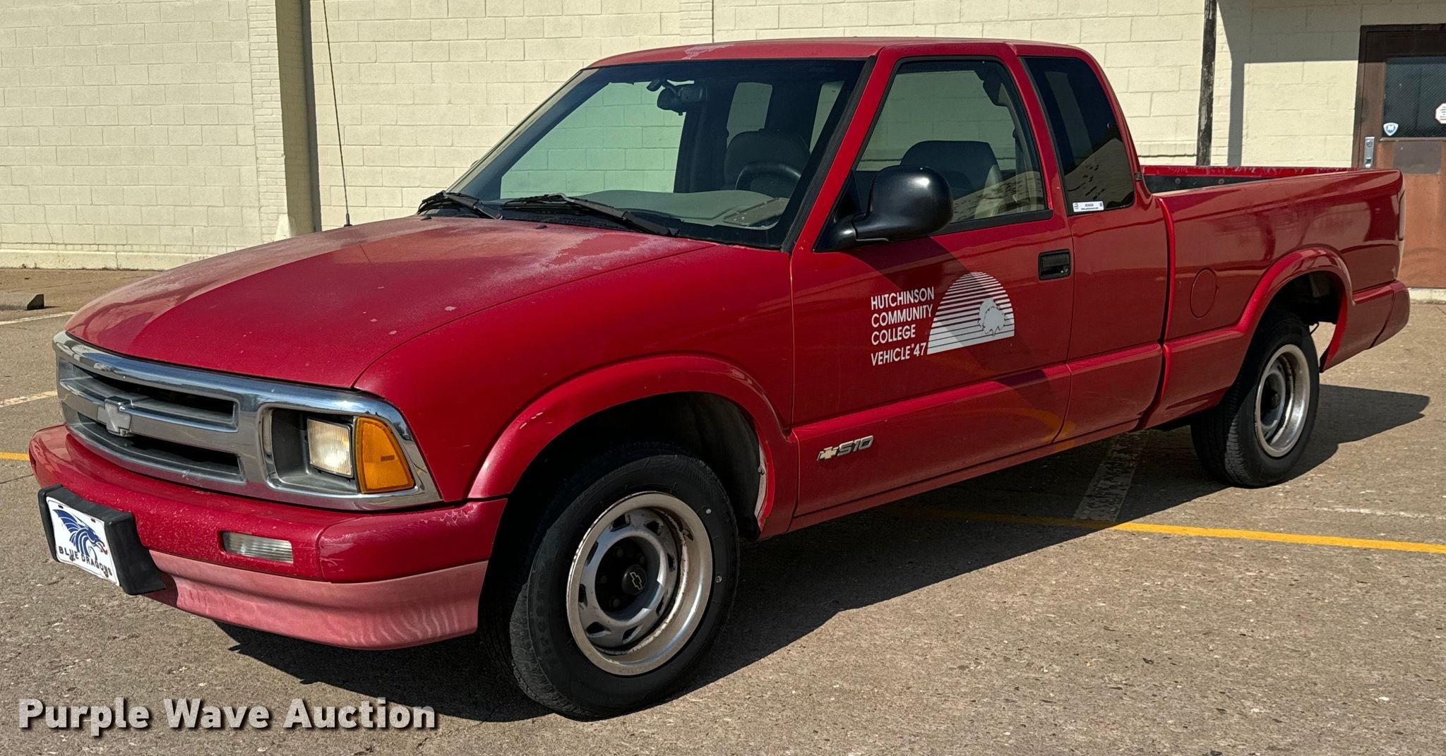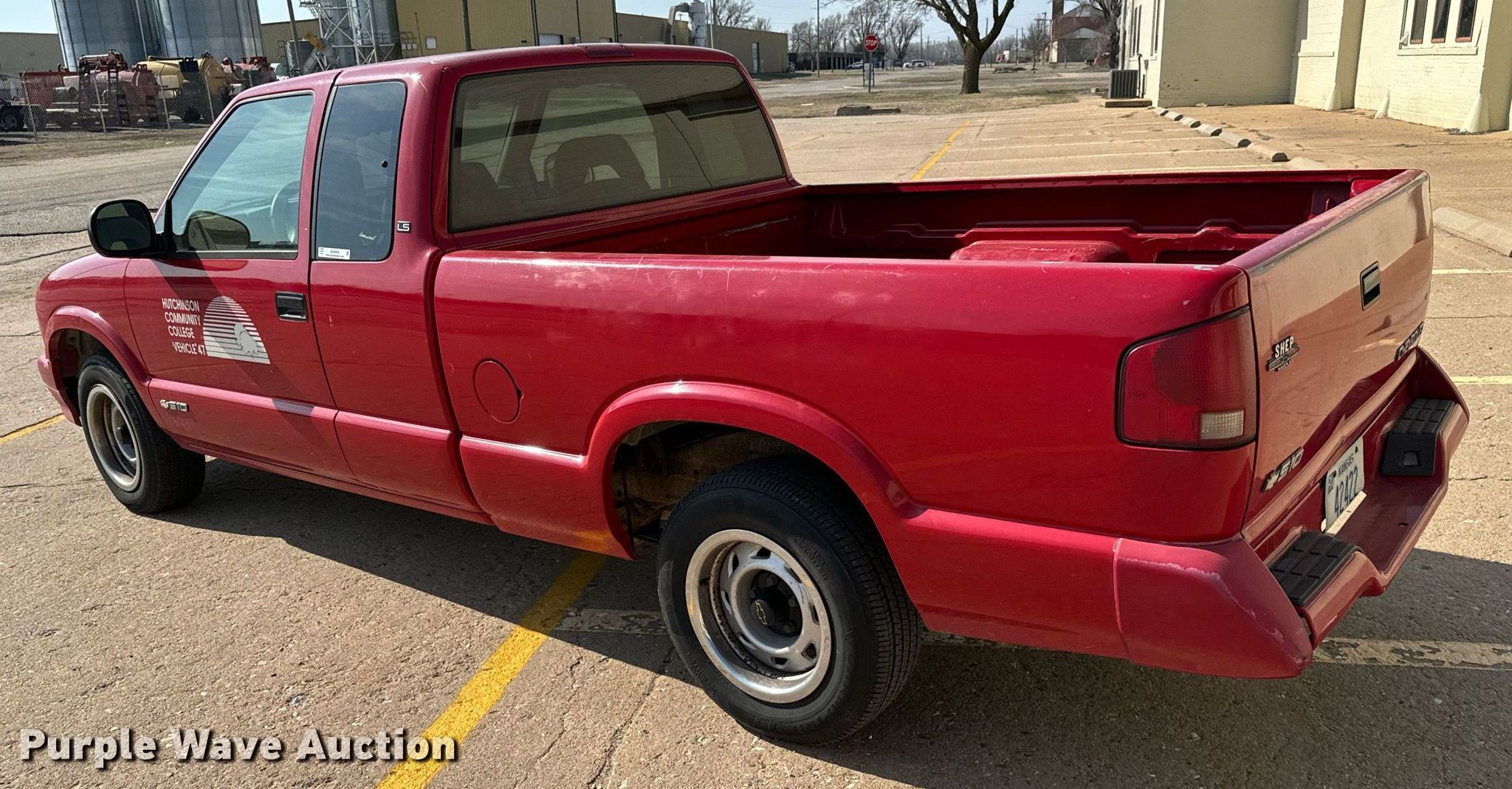 1997 Chevrolet S10 Ext. Cab pickup truck. Miles: 172,863 on odometer, VIN: 1GCCS19X1V8147983. Engine Displacement: 4.3L V6 OHV, Cylinders: 6, Fuel type: Gas. Transmission Automatic. Interior AC, Heat, Cruise control. Tires Size: 205/70R15. Notes Decals will be removed prior to auction. Kansas title. Title distribution may be delayed up to 14 days from verification of funds. Hutchinson Community College. 1800 East Essex Road. Hutchinson, KS 67501