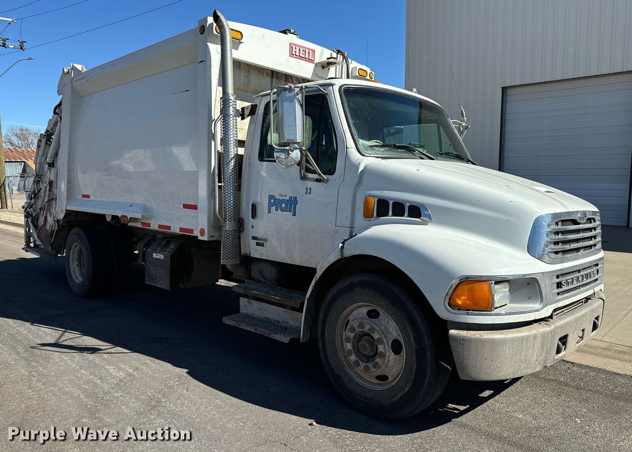2007 Sterling Acterra refuse truck. Miles: 133,699 on odometer, Miles or hours may vary, unit still in use, VIN: 2FZACGCS57AY54436. Engine Mercedes-Benz MBE 900, Serial: 0906640515, Displacement: 6.4L, Cylinders: 6, Fuel type: Diesel. Transmission Automatic. Chassis Axles: Single, Suspension: Spring, Brakes: Air, PTO, GVWR: 33,000 lbs. Interior AC, Heat, Heated mirrors, Cruise control, Backup camera. Features Refuse bed Heil 612-3796, Serial: 4F1302565, Capacity: 20 cu.yd., Load: Rear, Cart tipper. Tires Size: 11R22.5. Notes Unknown operating condition of AC. Kansas title. Title distribution may be delayed up to 14 days from verification of funds. City of Pratt Street Department. 905 South Iuka Street. Pratt, KS 67124