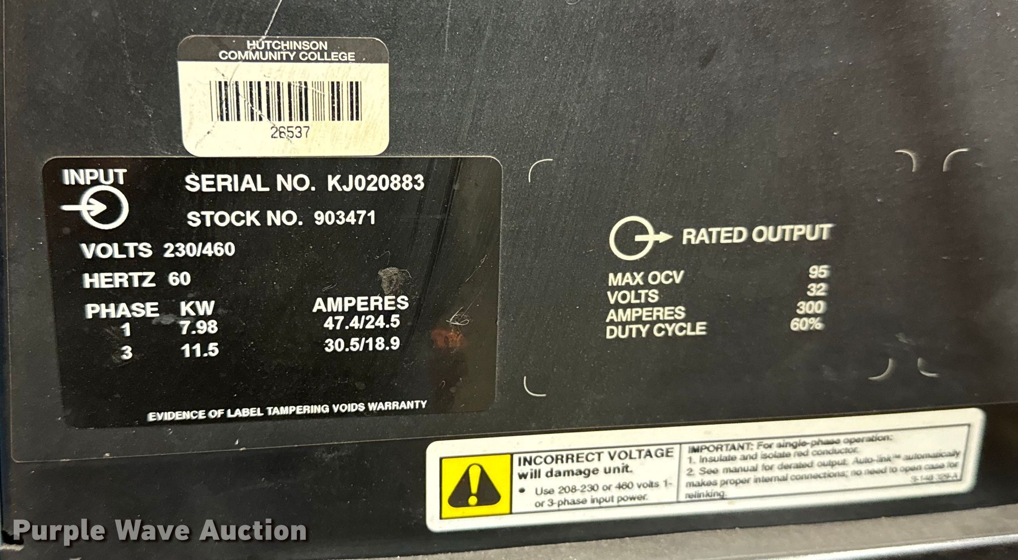 Miller XMT 304 CC/CV welder. Serial: KJ020883. Electric Motor Phase: Single, Three, Volts: 230/460. Features Welder Capabilities: CC, CV, DC, Wire, MIG, TIG, Stick, Leads, Bottles not included, Miller S-22A wire feeder, Tweco style guns, Tweco consumables. Notes Spool of wire not included. Hutchinson Community College. 1800 East Essex Road. Hutchinson, KS 67501