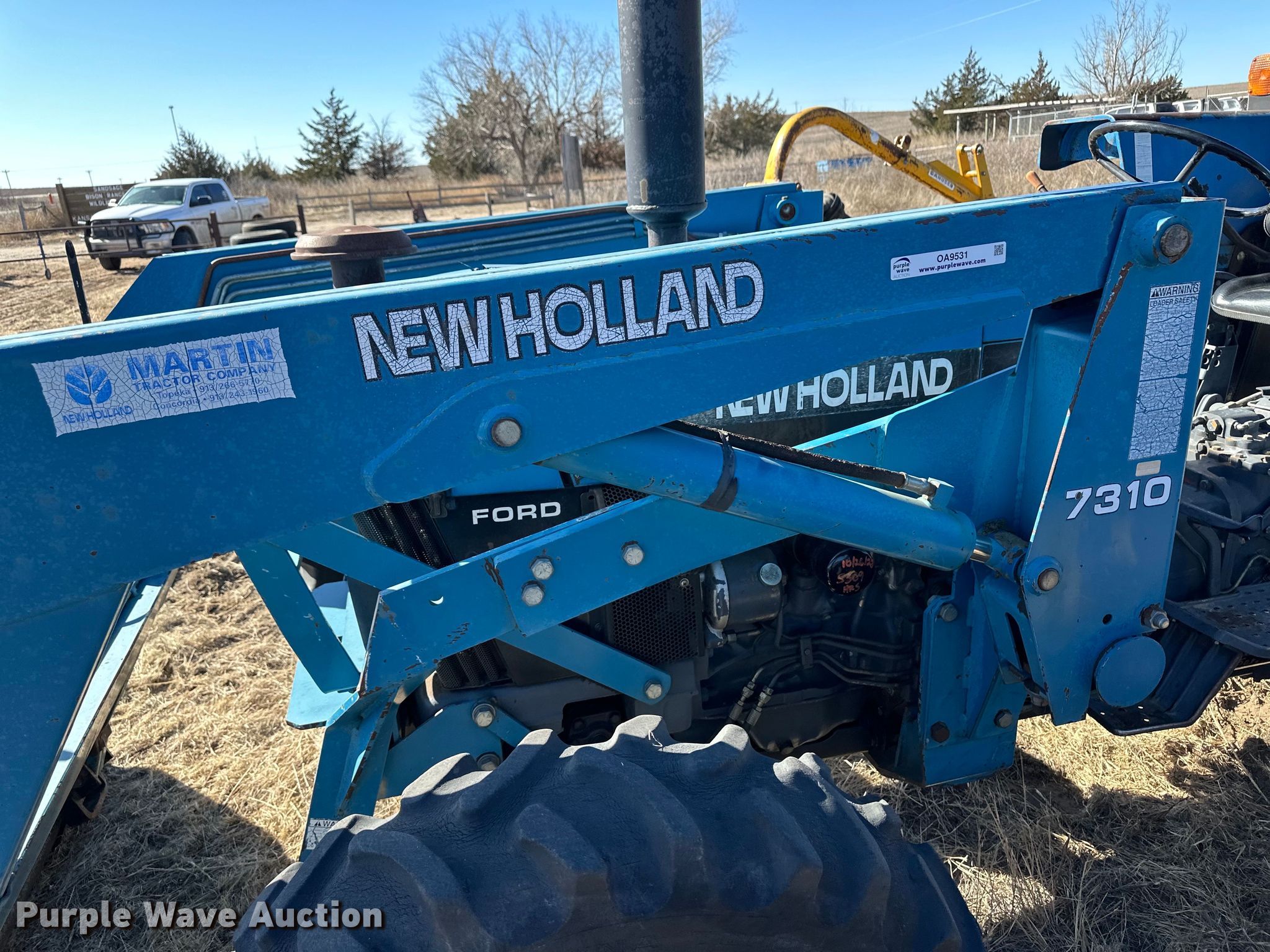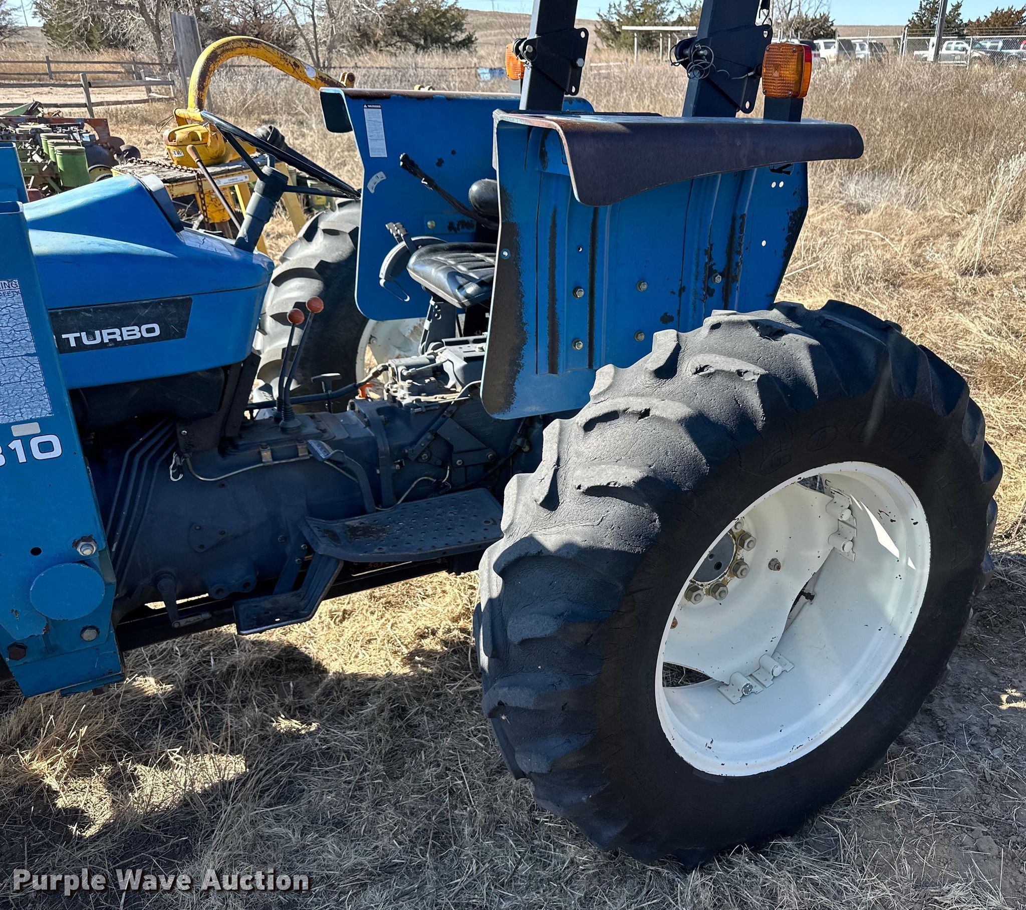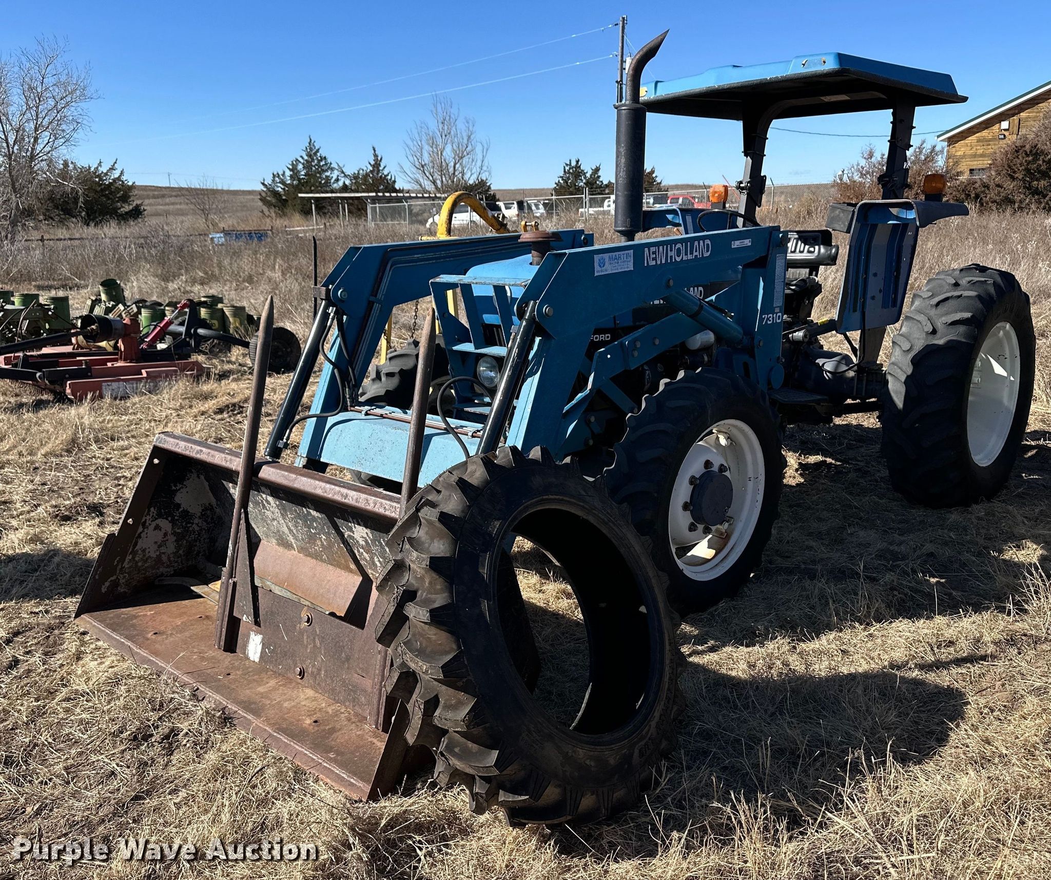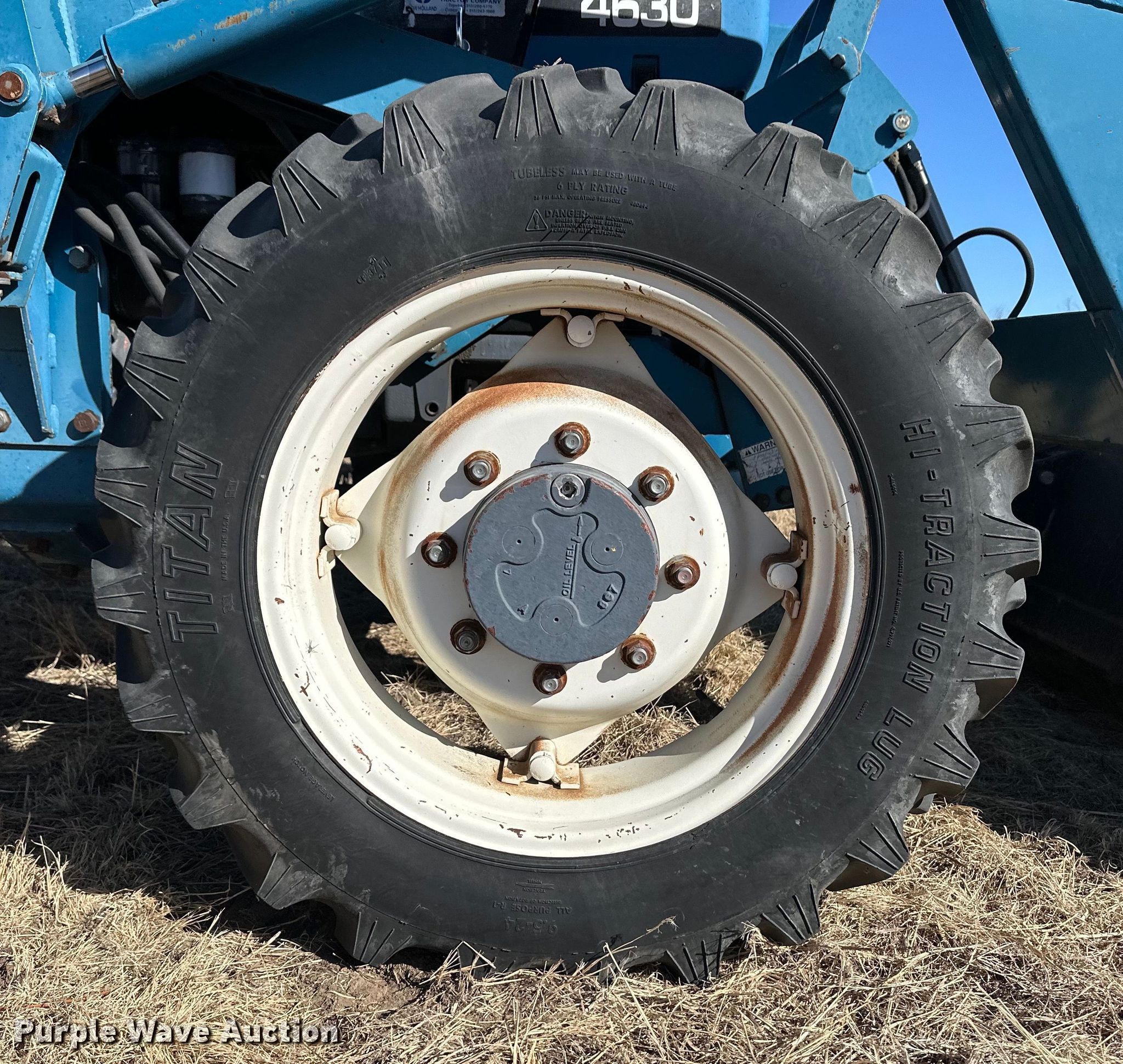 Ford 4630 MFWD tractor. Hours: 3,634 on meter. Engine Cylinders: 3, Fuel type: Diesel. Transmission Manual, 8F - 2R. Features PTO: 540, Three point Top link, Hydraulic remote sets Rear: 2, Loader New Holland 7310, Bale spear, Controls: Two-lever, Bucket Width: 72".. Tires Front: 9.5-24, Rear: 14.9-28. Notes Additional front tires included. Kansas Wildlife & Parks. Garden City, KS 67846