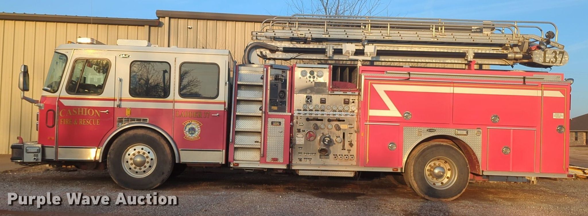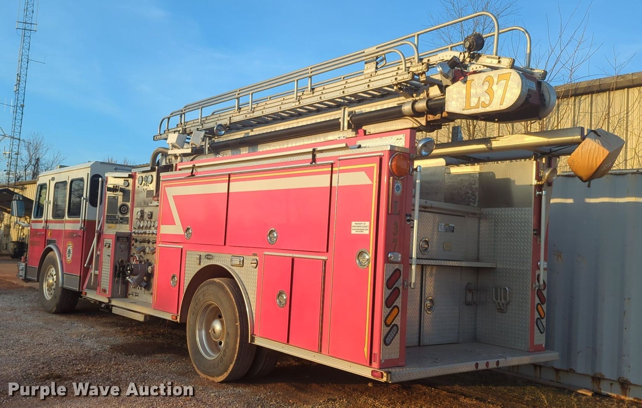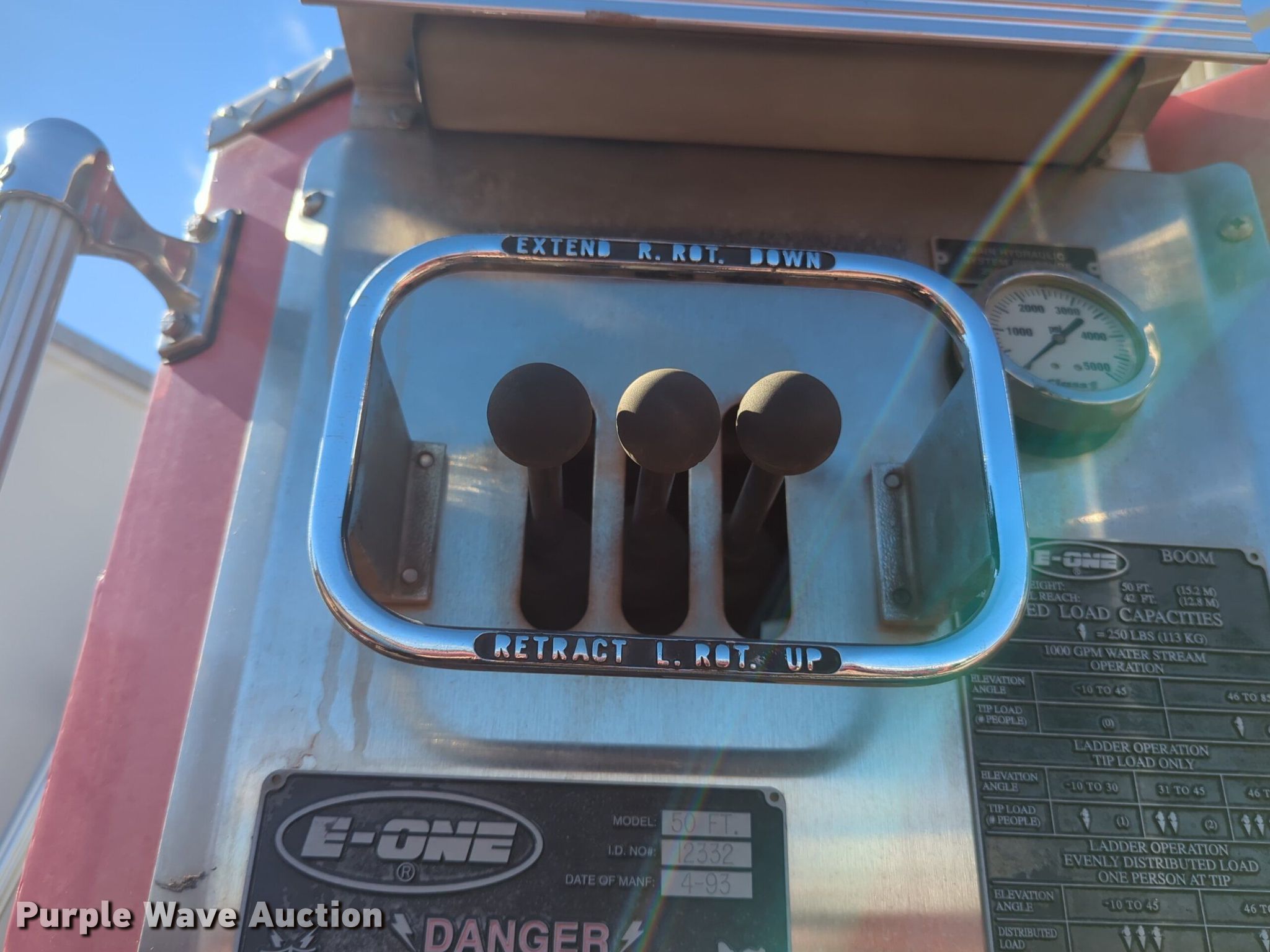 Purple Wave is selling a used Fire Truck or Emergency Vehicle in Oklahoma. This item is a 1993 E-One Cyclone ladder fire truck with the following: Miles: 114,599 on odometer, Hours: 5,492 on meter, VIN: 4ENDAAA84P1002332