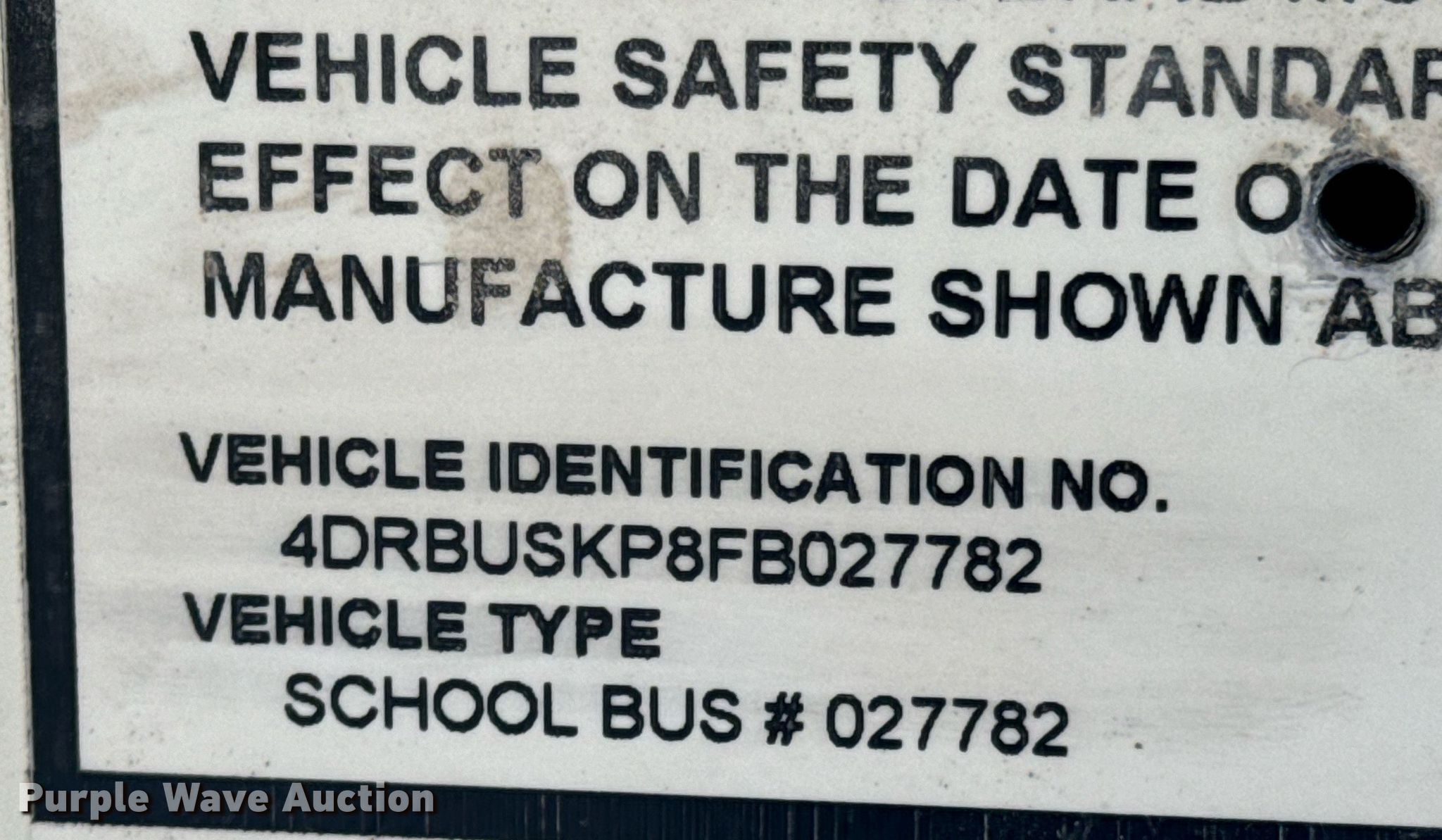 Purple Wave is selling a used Bus in Kansas. This item is a 2015 IC CE school bus with the following: Miles: 93,217 on odometer, VIN: 4DRBUSKP8FB027782, Unit #: 23