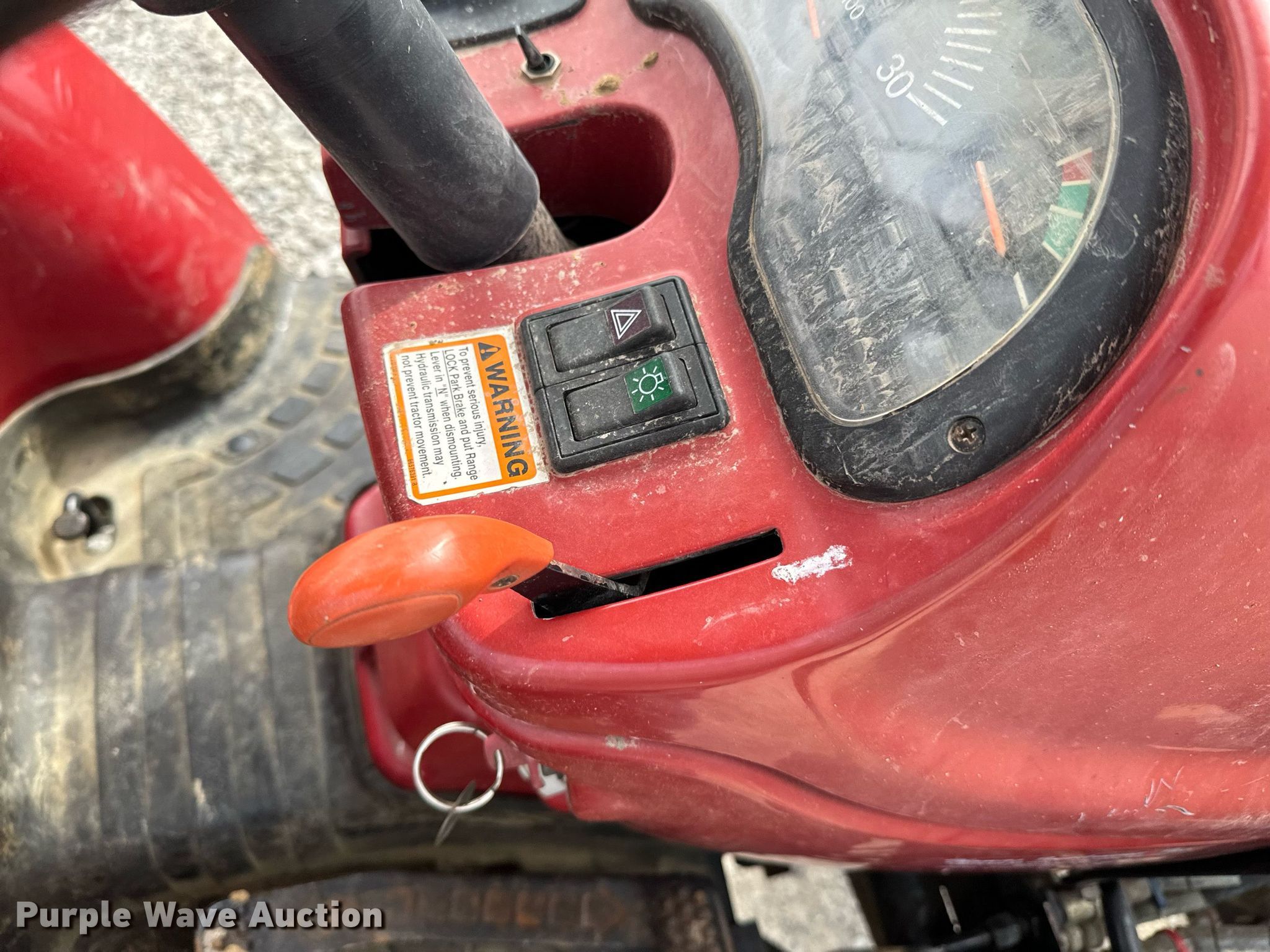 Case IH DX33 tractor. Hours: 4,928 on meter, Serial: 11BA0001546. Engine Cylinders: 3, Fuel type: Diesel. Transmission Hydrostatic. Features PTO: 540, Three point Top link, Loader Controls: Joystick, Bucket Width: 60".. Tires Front: 25x8.5-14, Rear: 13.6-16. Notes Dead battery, Non-operational fuel gauge. USD 506 Labette County Schools. Altamont, KS 67330