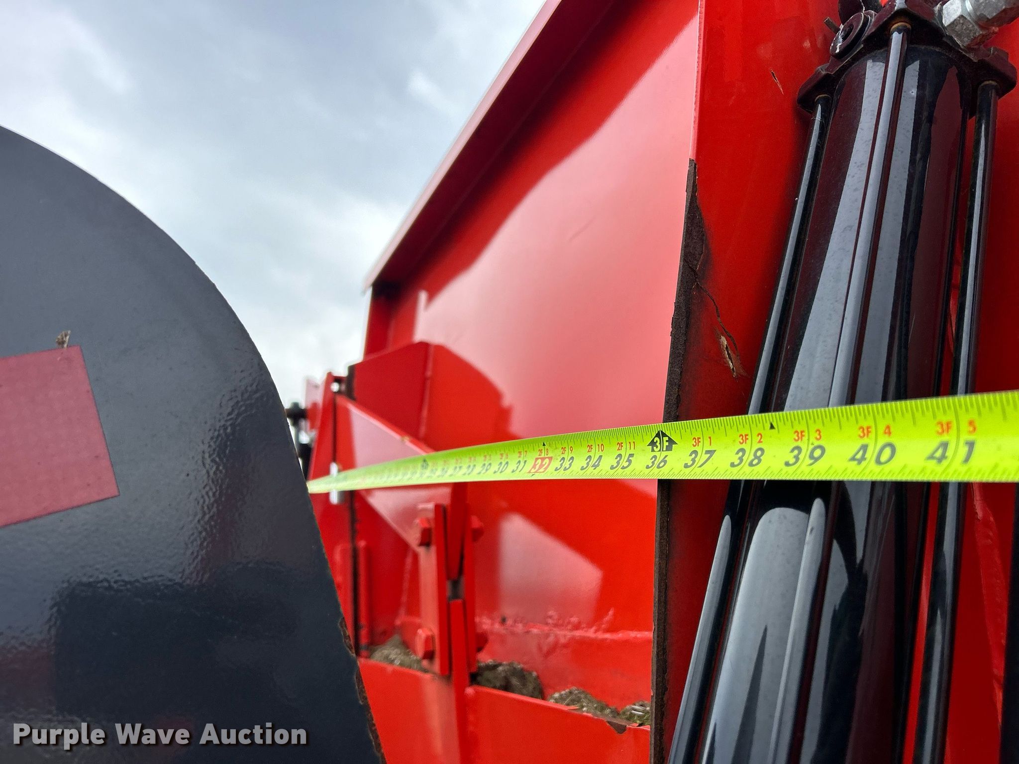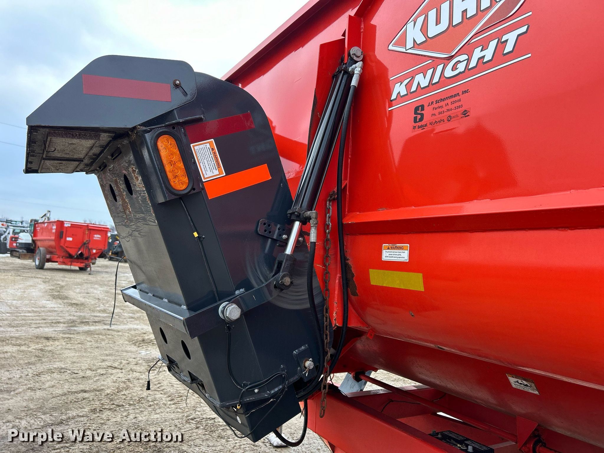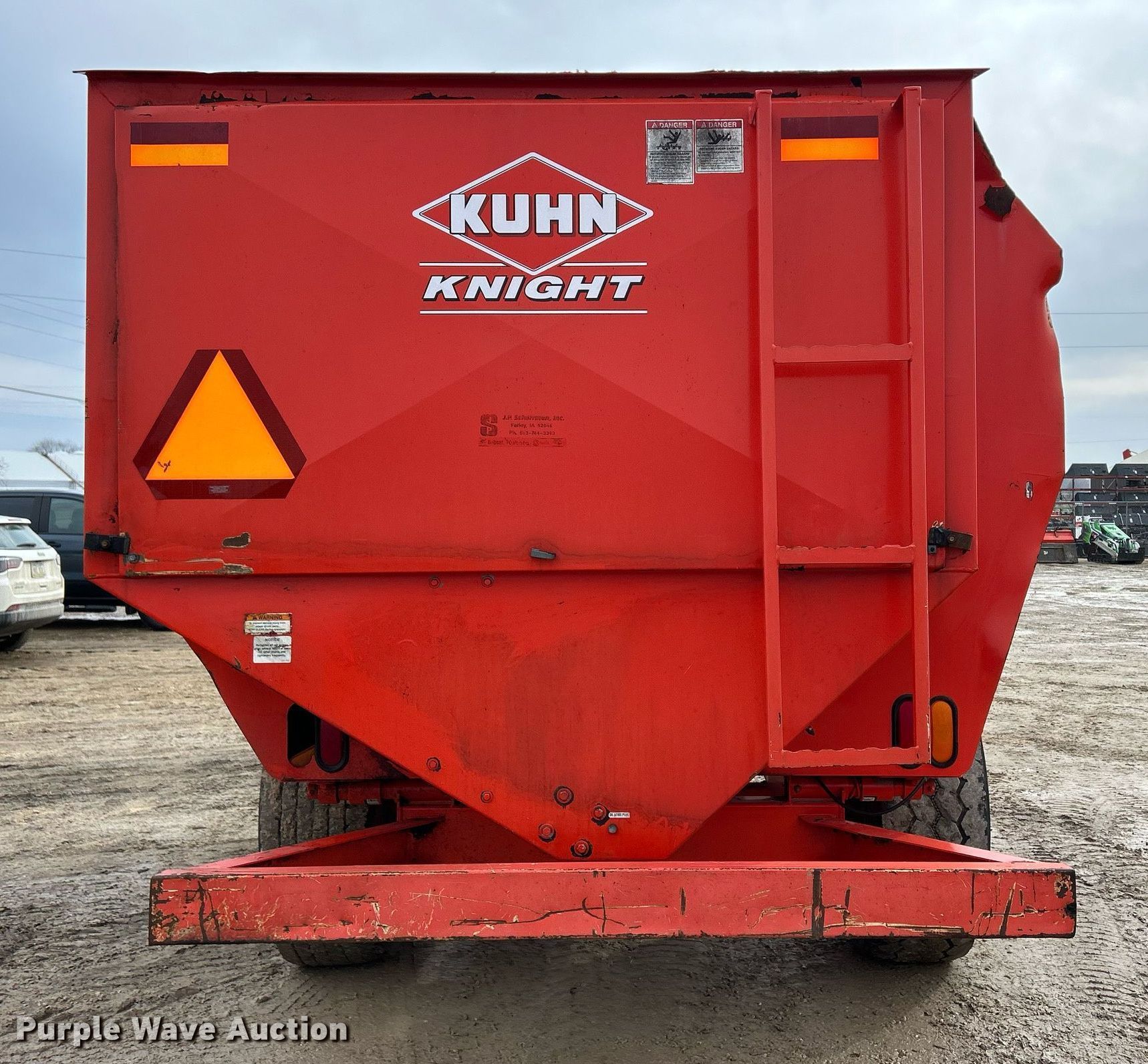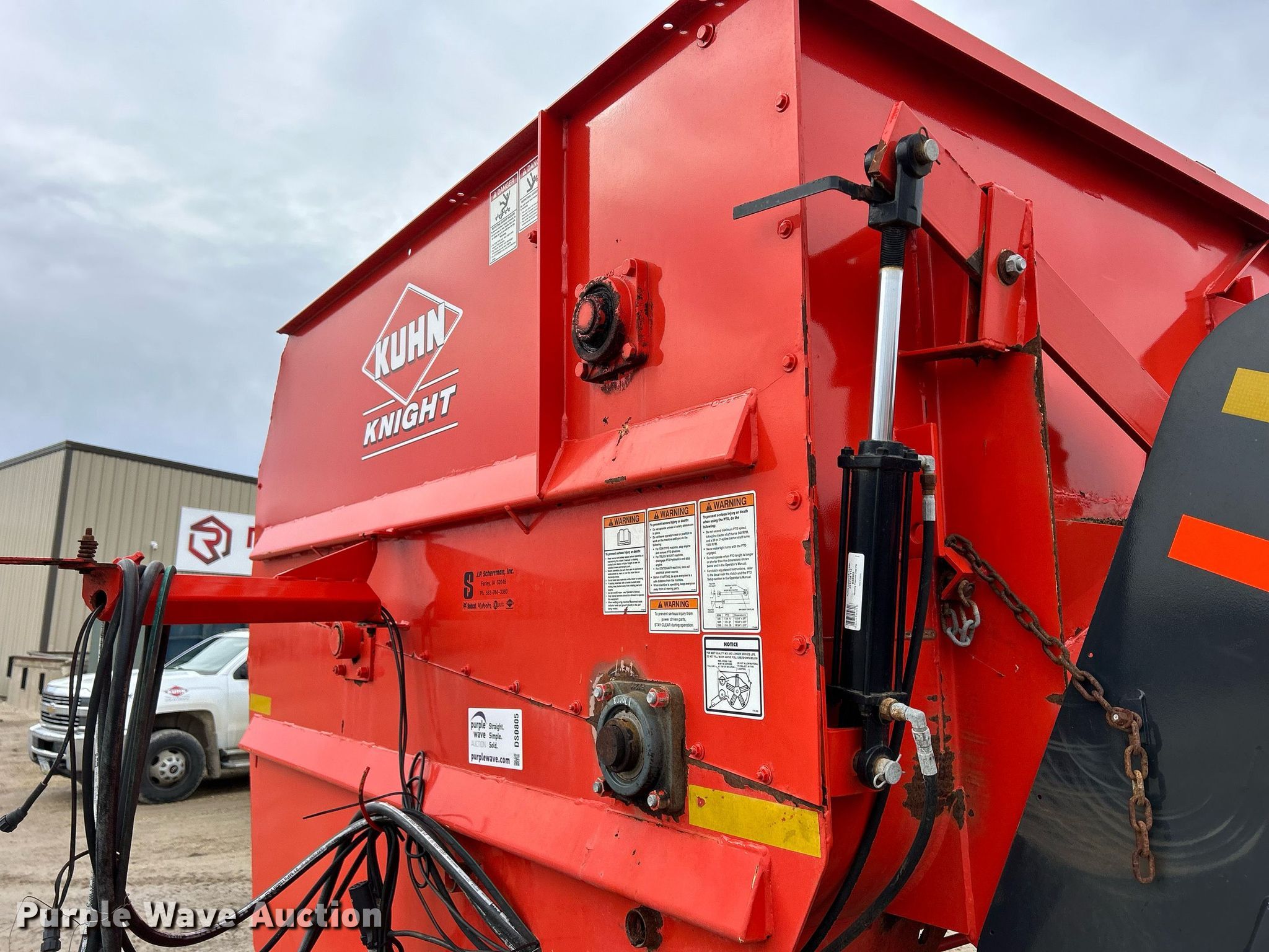 Kuhn Knight 3136 feed mixer. Serial: C0132, Unit #: 025687. Features PTO: 540, Auger Quantity: 2, Discharge: Side Width: 36", Chute: Hydraulic, Door: Hydraulic. Tires Size: 425/65R22.5. Rexco Equipment, Inc.. 1345 1st Avenue Northwest. Farley, IA 52046