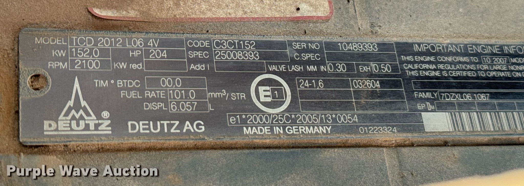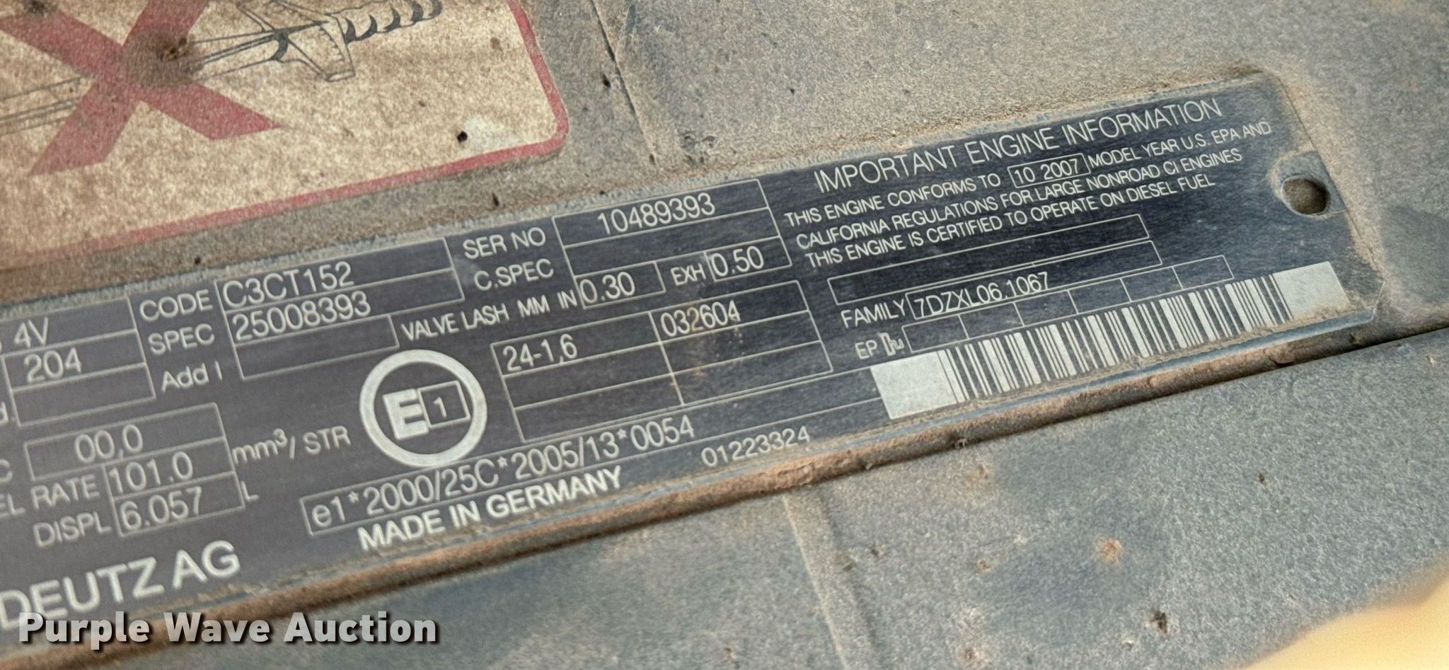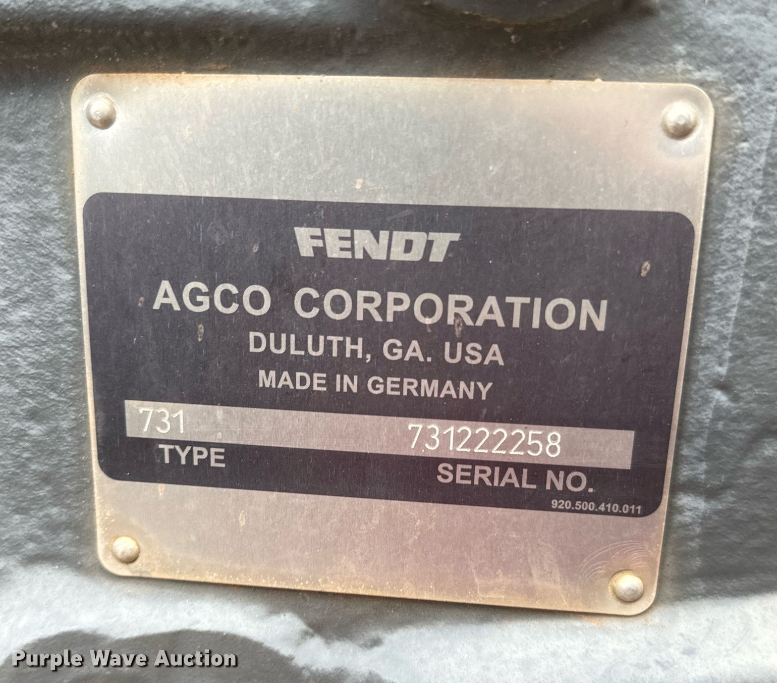2007 Fendt 820 Vario TMS MFWD tractor. Hours: Unknown, Serial: 731222258, Claim #: 3-815138. Engine Deutz TCD2012L064V, Serial: 10489393, Displacement: 6.057L, Fuel type: Diesel, HP: 204, kW: 152. Transmission CVT, Differential lock. Operators station AC, Heat. Features PTO: 1000, Front mounted PTO, Three point Top link, Front mounted three point Top link, Seven pin outlet, Hydraulic remote sets Front: 1, Rear: 4. Tires Front: 540/65R30, Rear: 650/65R42. Notes Lightning damage, Non-operational unit. Insurance salvage unit.. Oklahoma Farm Bureau Insurance. Chickasha, OK 73018