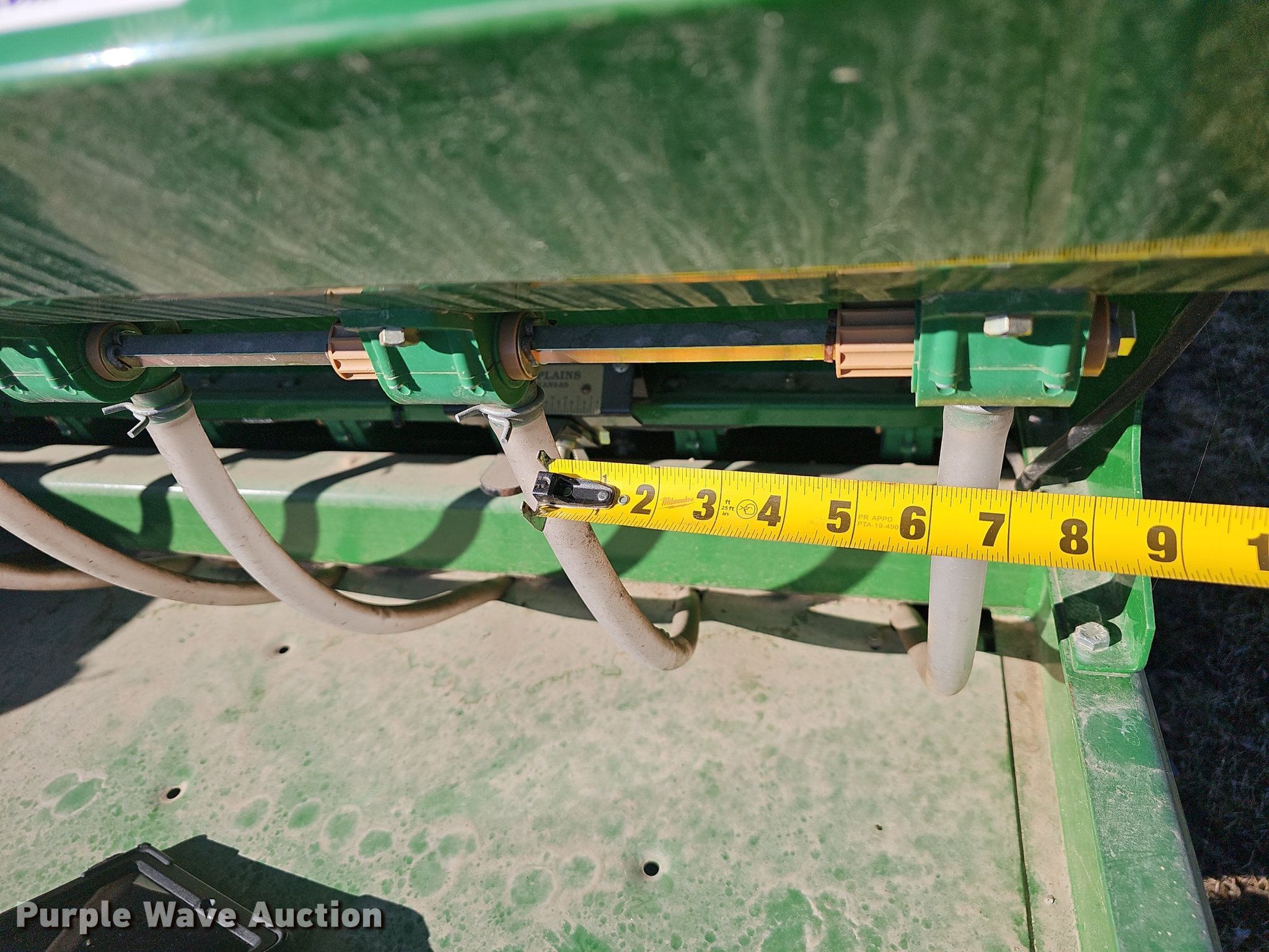 Great Plains NTS2511 no-till seeder. Width: 11', Row units: 18, Row spacing: 6", Serial: GP-D1141L. Features Hydraulic PTO pump, Seed delivery Bulk fill system, Row units Meter drive: Hydraulic, Down pressure: Hydraulic, Electronics Monitor Great Plains Acre counter.. Tires Transport tire size: P225/60R16 Quantity: 4. Notes Four pin connector on wiring harness missing. 1898 East 332nd Road. Polk, MO 65727