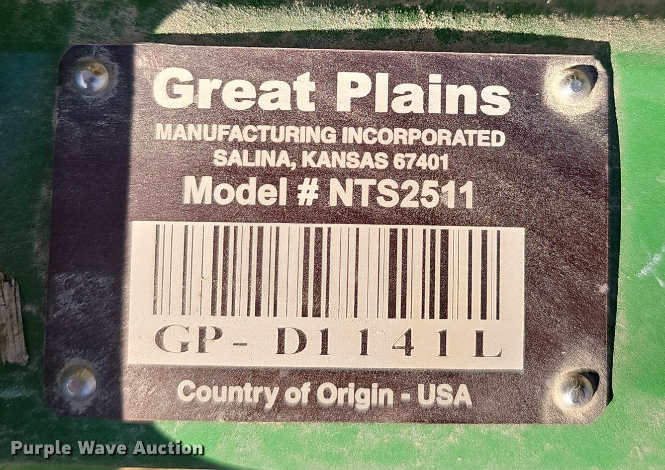 Purple Wave is selling a used Grain Drill or Seeder in Missouri. This item is a Great Plains NTS2511 no-till seeder with the following: Width: 11', Row units: 18, Row spacing: 6", Serial: GP-D1141L