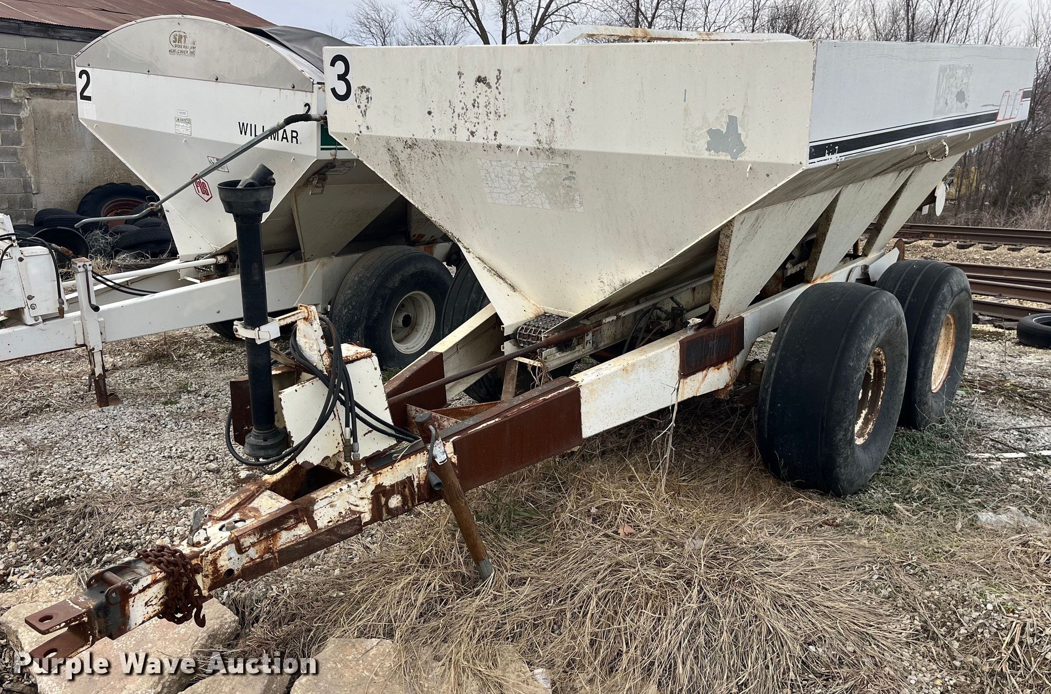 Purple Wave is selling a used Applicator Pull Type in Missouri. This item is a Willmar 600 spreader with the following: PTO: 540, Dry fertilizer spreader, Dual spinners, Ground driven, Conveyor belt, Width: 7",