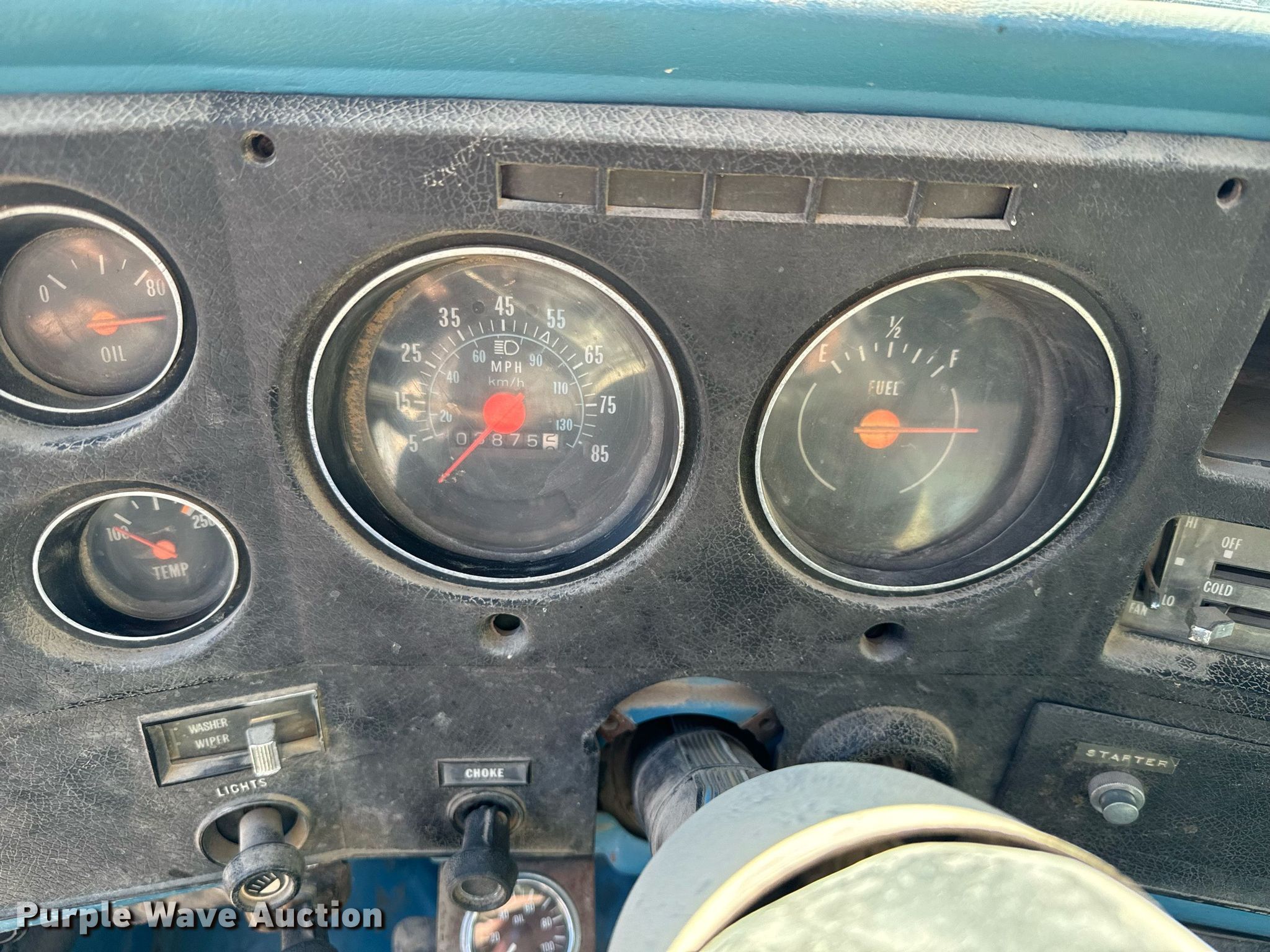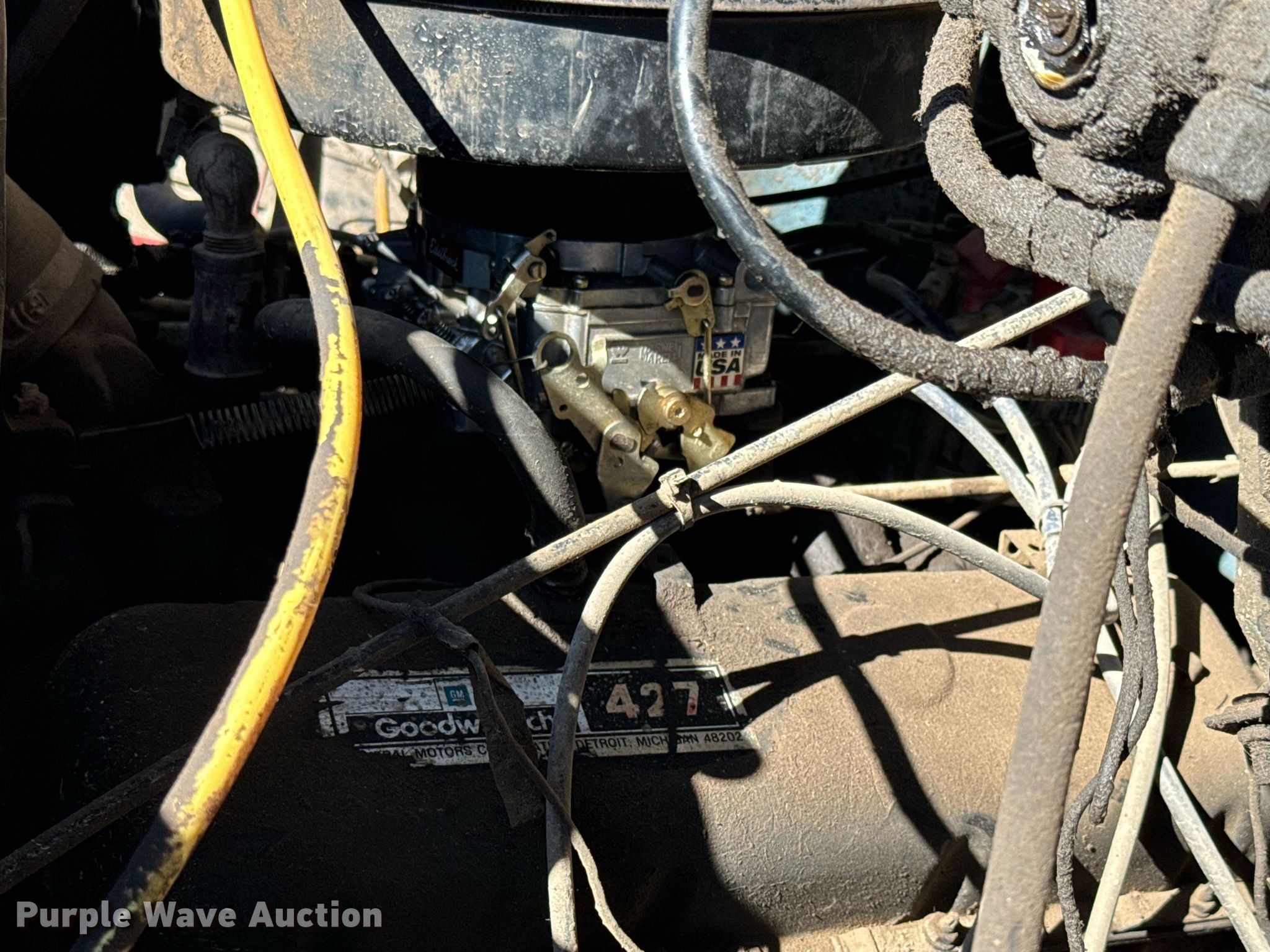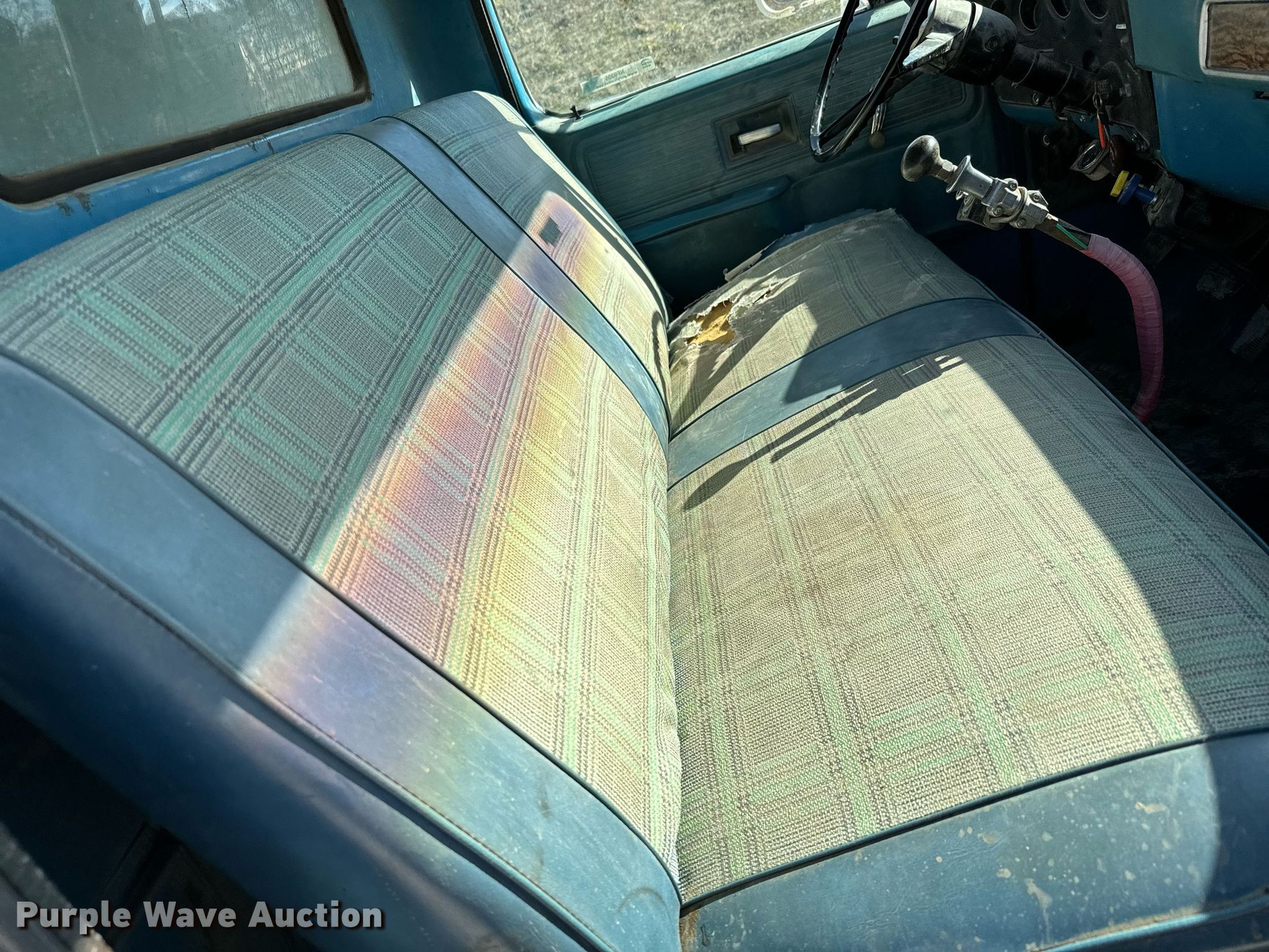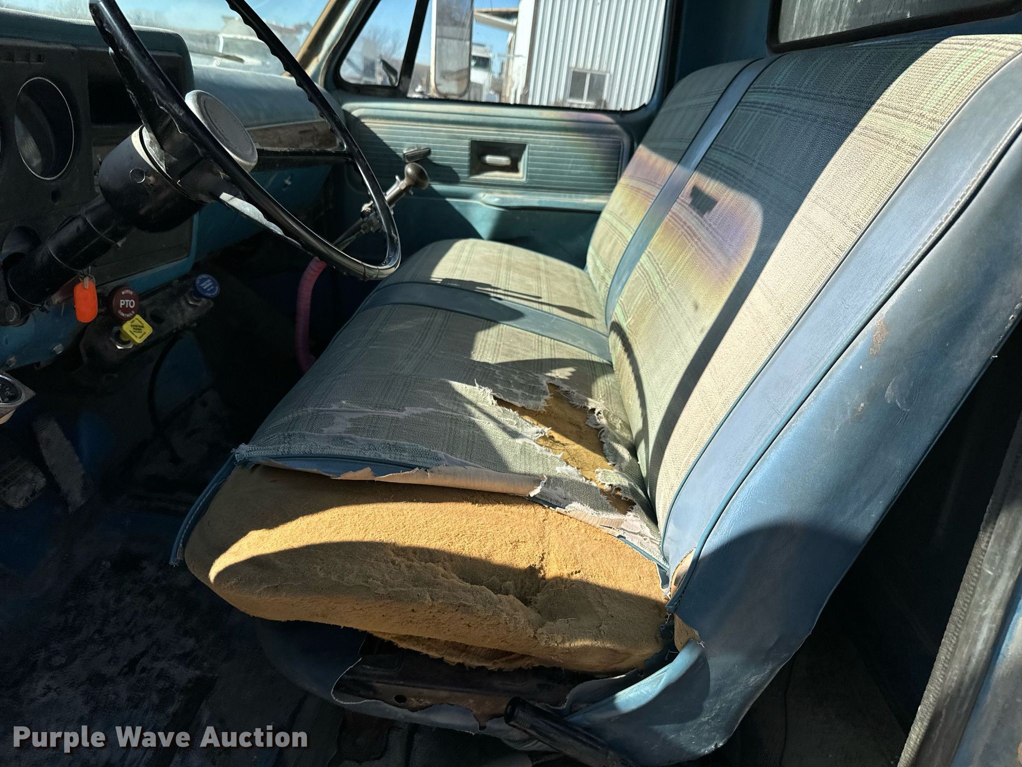 1978 Chevrolet C60 dump truck. Miles: 3,875 on odometer, VIN: CME668V128177. Engine Chevrolet, Displacement: 427 C.I.D., Cylinders: 8, Fuel type: Gas. Transmission Eaton Fuller, Manual, Speed: 10. Chassis Axles: Tandem, Differential lock: Inter-axle, Suspension: Spring over walking beam, Brakes: Air, PTO, GVWR: 43,000 lbs FAWR: 9,000 lbs, RAWR: 34,000 lbs. Interior Heat. Features Dump bed 15' L x 102" W, Side height: 48", Bed type: Steel, Barrel, Ram: Single, End gate: Air operated. Tires Size: 295/75R22.5. Kansas antique title. Mileage has not been verified. Odometer discrepancy will be marked on the title. Title distribution may be delayed up to 30 days from verification of funds. Rezac Land & Livestock. Onaga, KS 66521