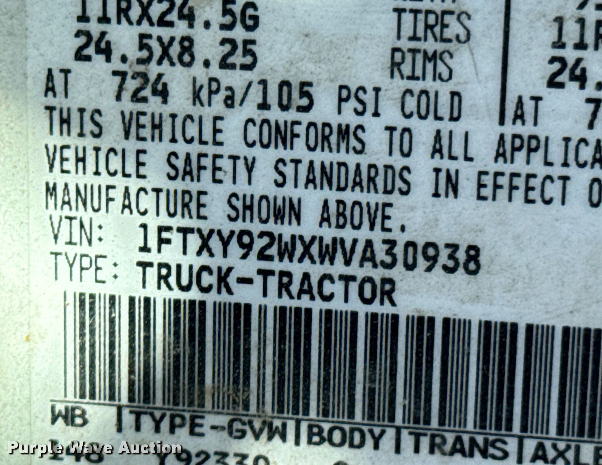 Purple Wave is selling a used Fertilizer or Feed Delivery Truck in Kansas. This item is a 1998 Ford L9000 feed delivery truck with the following: Miles: 944,712 on odometer, VIN: 1FTXY92WXWVA30938