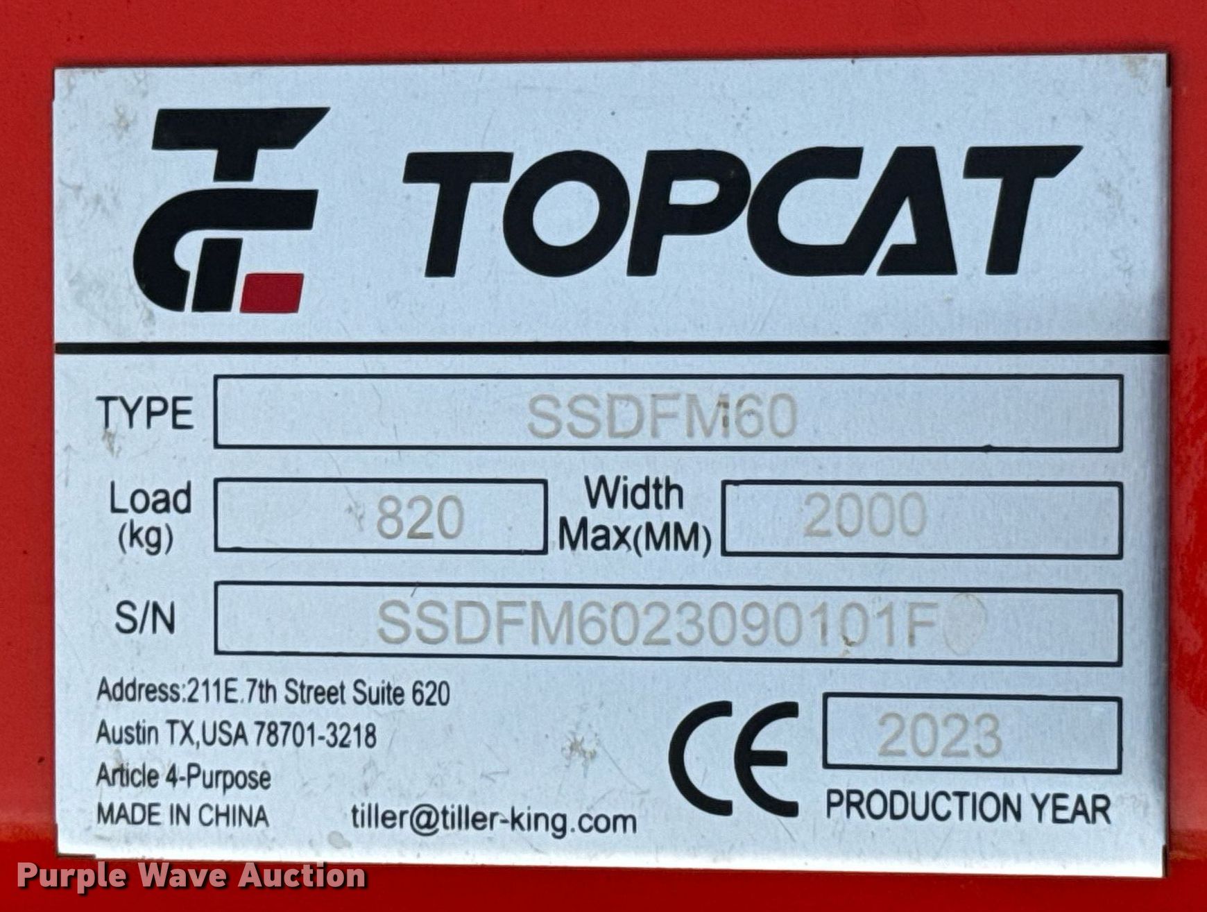 2023 TopCat SSDFM60 skid steer mulcher has sold in Yates Center, Kansas for $4510. Item OJ9395 sold on March 6th, 2024.