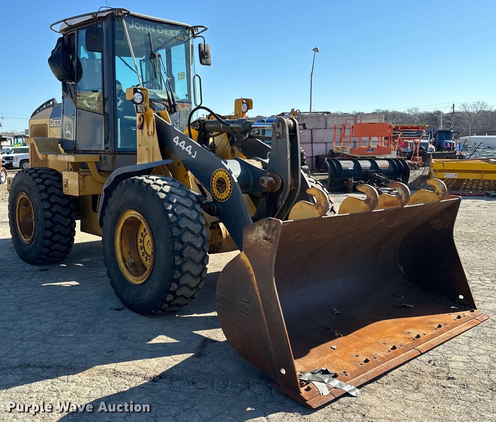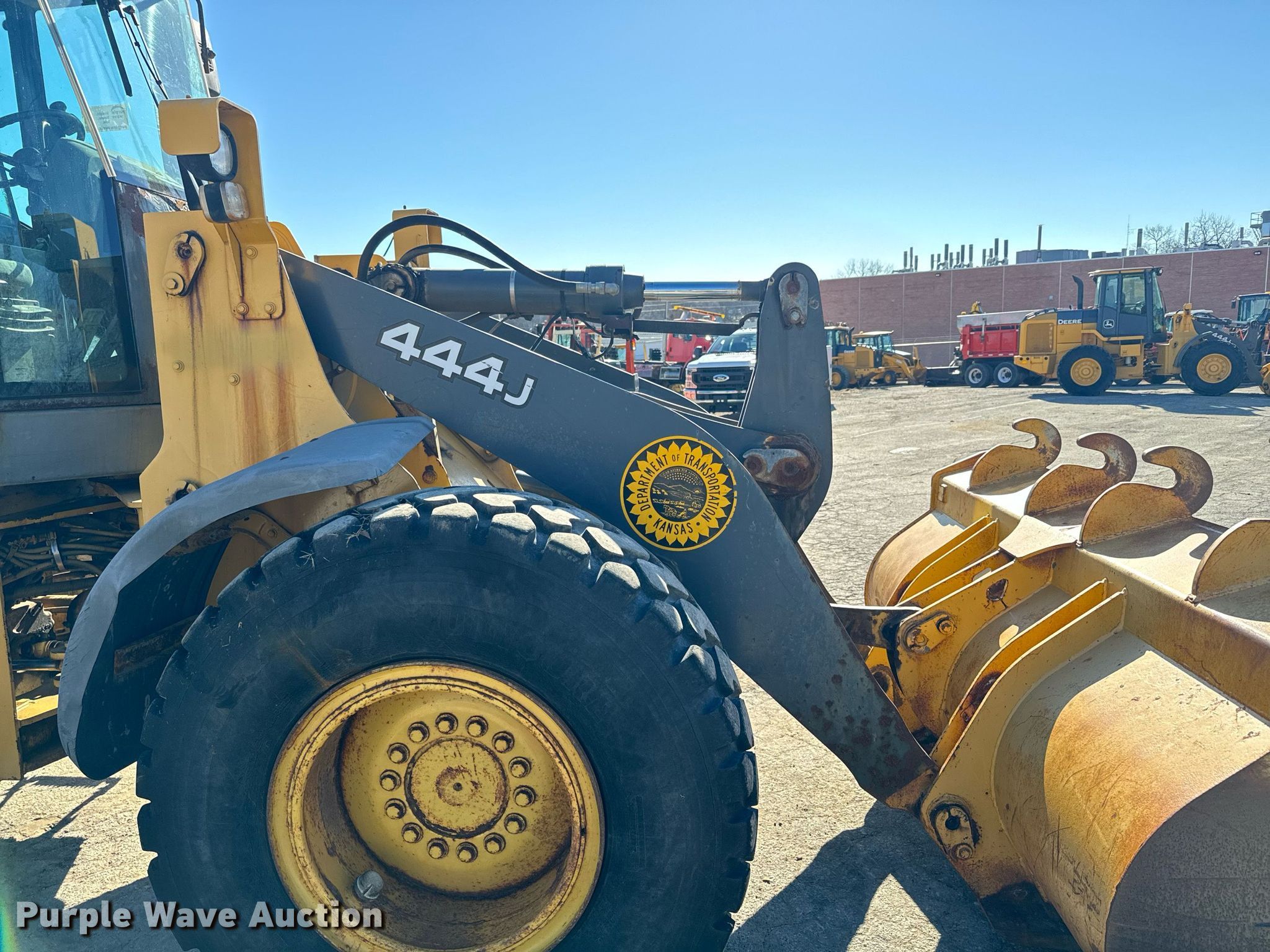 Purple Wave is selling a used Wheel Loader in Kansas. This item is a 2005 John Deere 444J wheel loader with the following: Hours : 601 on meter, Serial: DW444JZ594721, KDOT ID: 365-1044