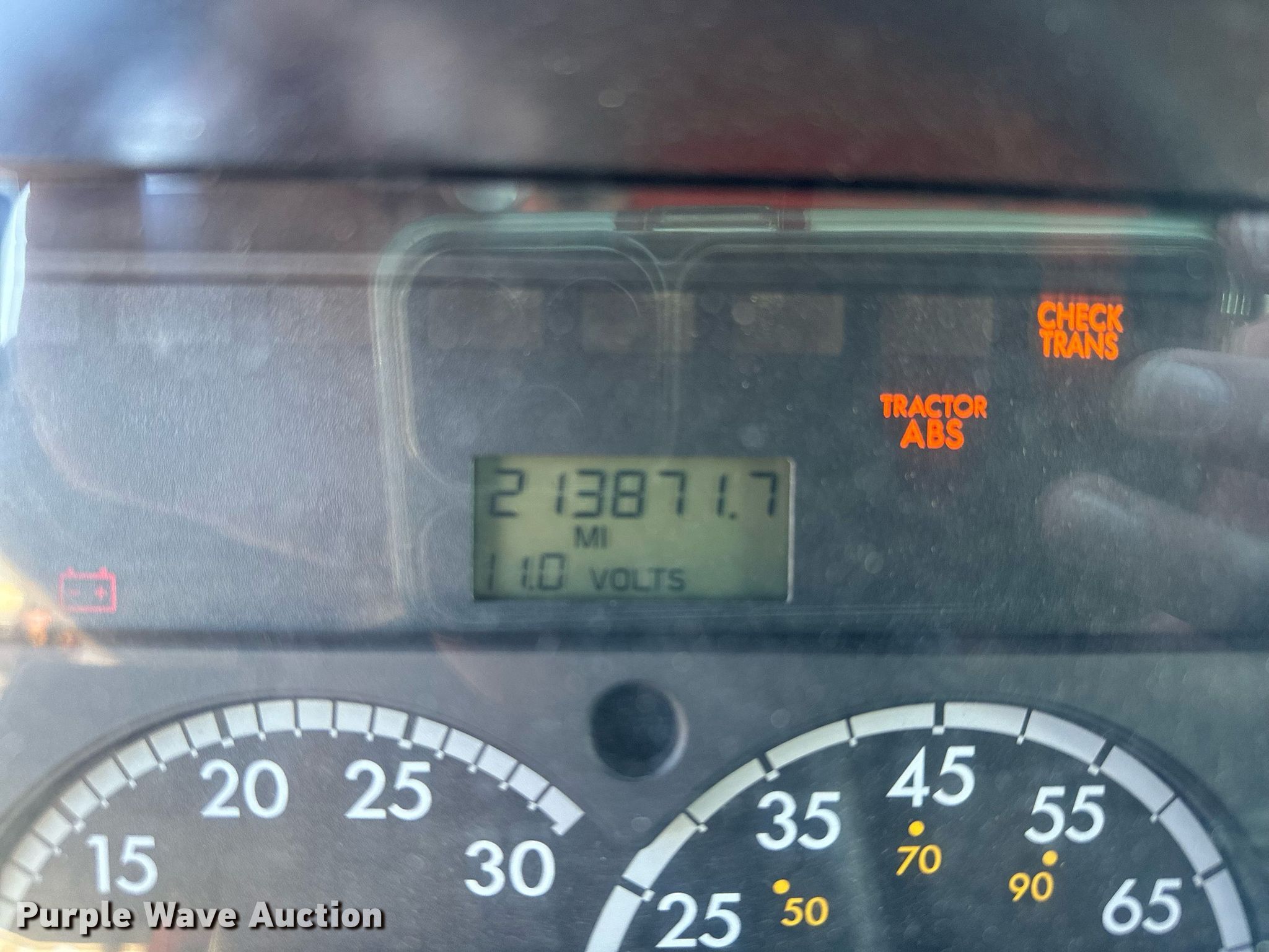 2005 Sterling LT7500 dump truck. Miles: 213,872 on odometer, Hours: 9,904 on meter, VIN: 2FZHATDC15AU46761, KDOT ID: 236-1134. Engine Caterpillar C7, Displacement: 7.2L, Cylinders: 6, Fuel type: Diesel. Transmission Automatic. Chassis Axles: Tandem, Differential lock: Inter-axle, Suspension: Spring, Brakes: Air, Front mount PTO, GVWR: 53,220 lbs FAWR: 13,220 lbs, IAWR: 20,000 lbs, RAWR: 20,000 lbs. Interior AC, Heat, Cruise control. Features Dump bed Henderson, 13' 6" L x 96" W, Side height: 36", Bed type: Steel, Roll tarp, Ram: Single, End gate: Air operated, Spreader Henderson, Plow Henderson, Width: 132". Tires Front: 295/75R22.5, Rear: 275/80R22.5. Notes Bed rust damage, holes in right side, Transmission issues, Dash warning indicator: Check engine, Low oil pressure, Check trans, Tractor ABS, Dead battery. Titles will be distributed after confirmation of payment and removal. Kansas title. Title distribution may be delayed up to 30 days from verification of funds. Kansas Department of Transportation - Topeka. 121 SW 21st St. Topeka, KS 66612