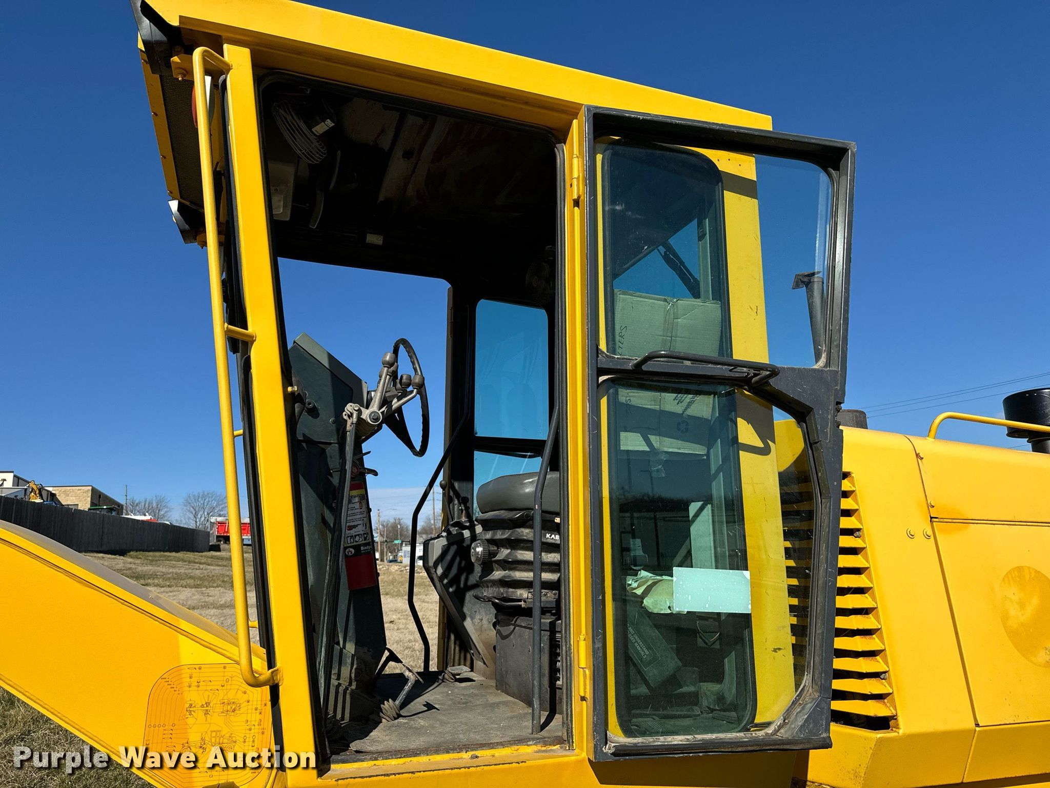 1997 Galion 830B motor grader. Hours: 999 on meter, Serial: G380020U202908, KDOT ID: 305-1027. Engine Cummins, Displacement: 5.9L, Fuel type: Diesel. Transmission Powershift, 6F - 3R. Chassis All wheel drive. Operators station Enclosed cab, AC, Heat, Hydraulic control valves: 10. Features Moldboard: Tip control, Side shift, Moldboard total width: 12', Scarifier Make: Dymax, Scarifier type: Front-mounted. Tires Size: 14.00R24. Notes Hour meter replaced at 2,645 hours, Parking brake issues, weak, Transmission issues, would not shift out of 1st gear. Kansas Department of Transportation - Topeka. 121 SW 21st St. Topeka, KS 66612