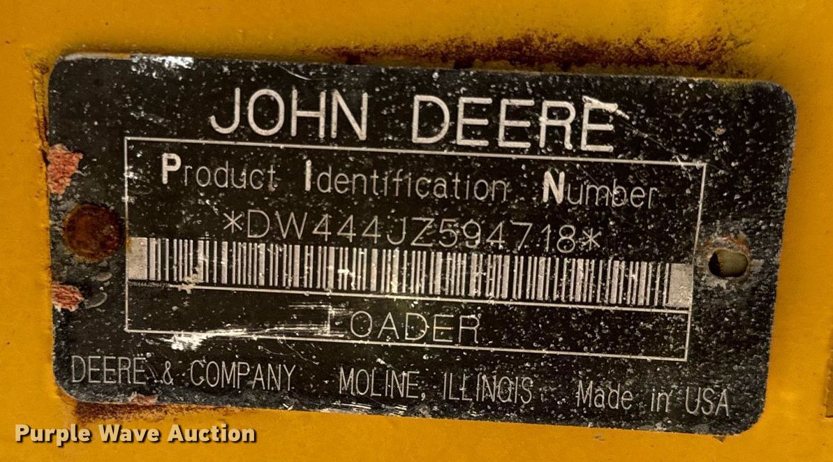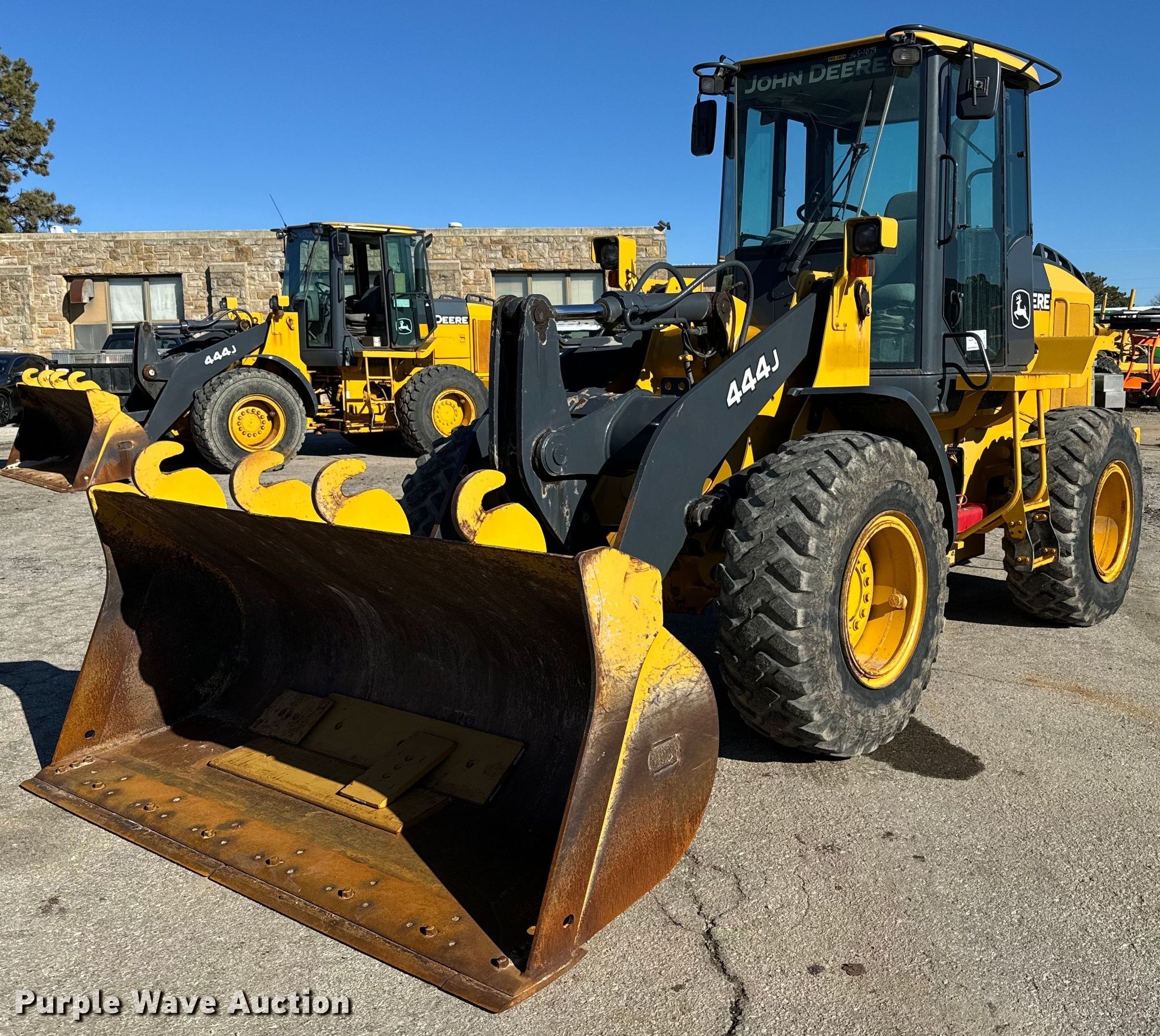 Purple Wave is selling a used Wheel Loader in Kansas. This item is a 2005 John Deere 444J wheel loader with the following: Hours: 3,348 on meter, Serial: DW444JZ594718, KDOT ID: 365-1074