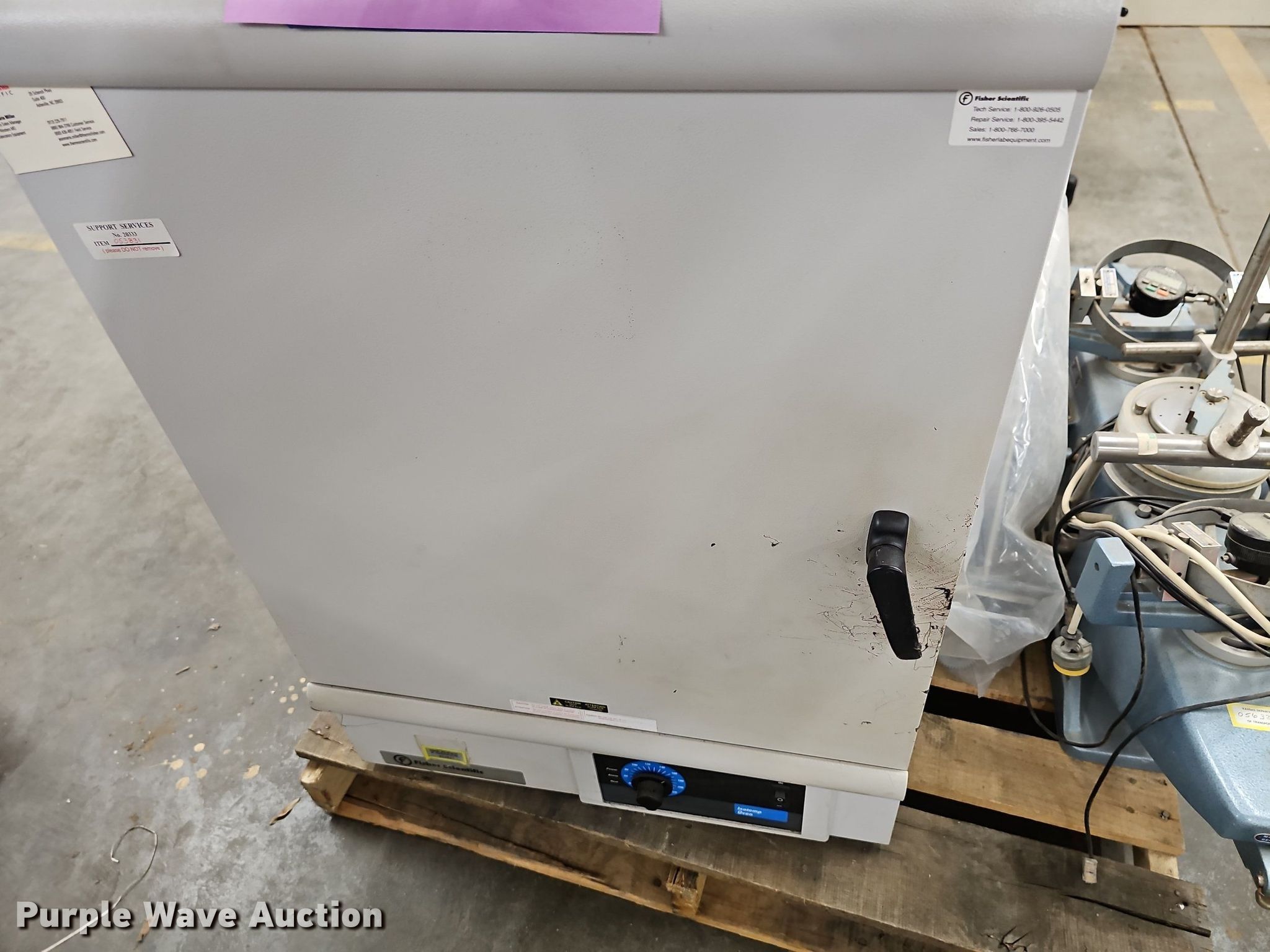 Purple Wave is selling a used Office Supplies and Equip. in Kansas. This item is a Office equipment with the following: KDOT ID: 24032605, (7) chairs, Fisher 0V601G oven, Serial: 203309104712, Fisher Scientific Isotemp 500 Series oven, Serial: 71000533, TA HR-1 dynamic shear rheometer tester, Serial: 5332-0269, Wykeham Tarrance 25851 ring shear tester, Serial 171AL