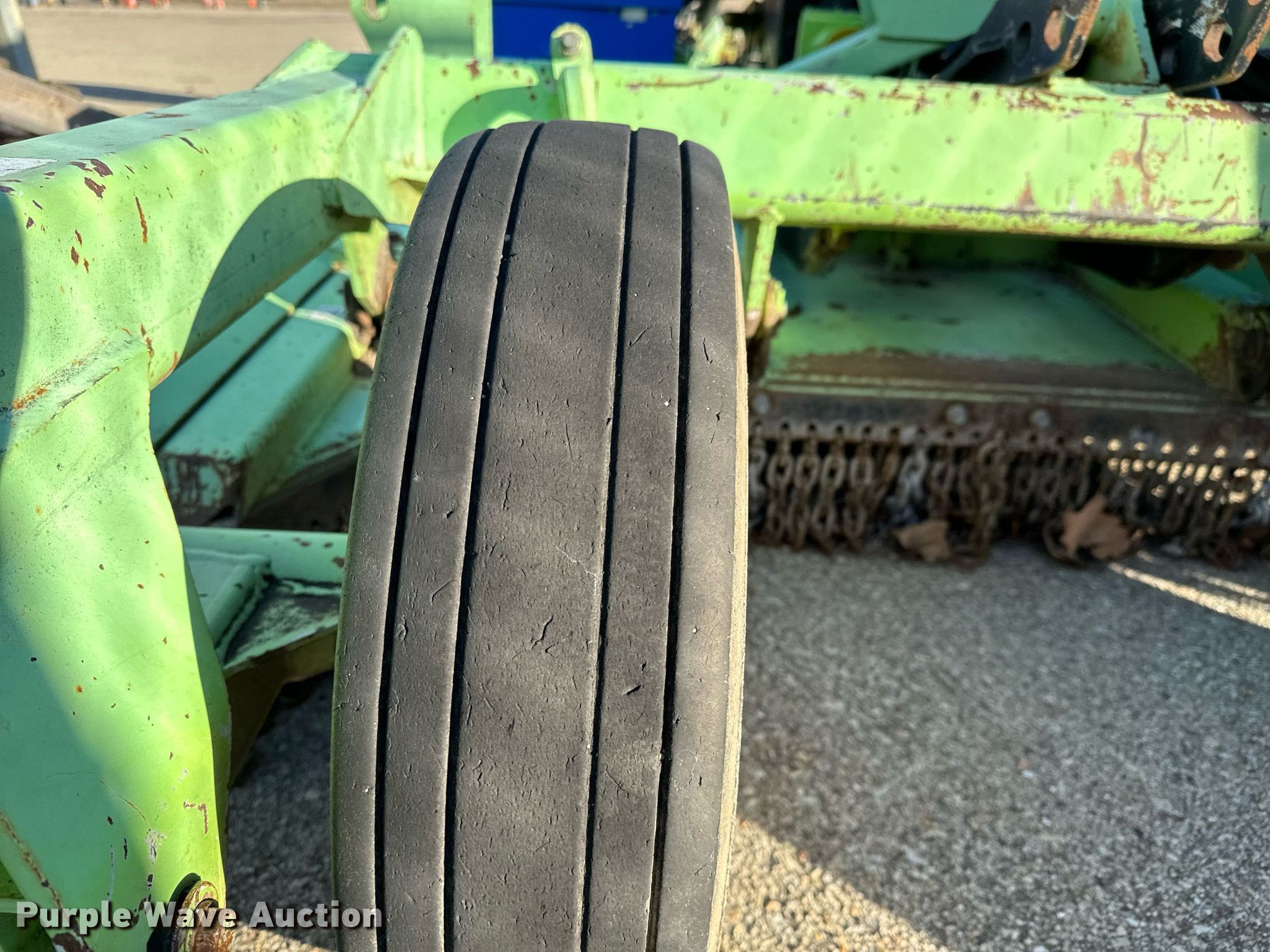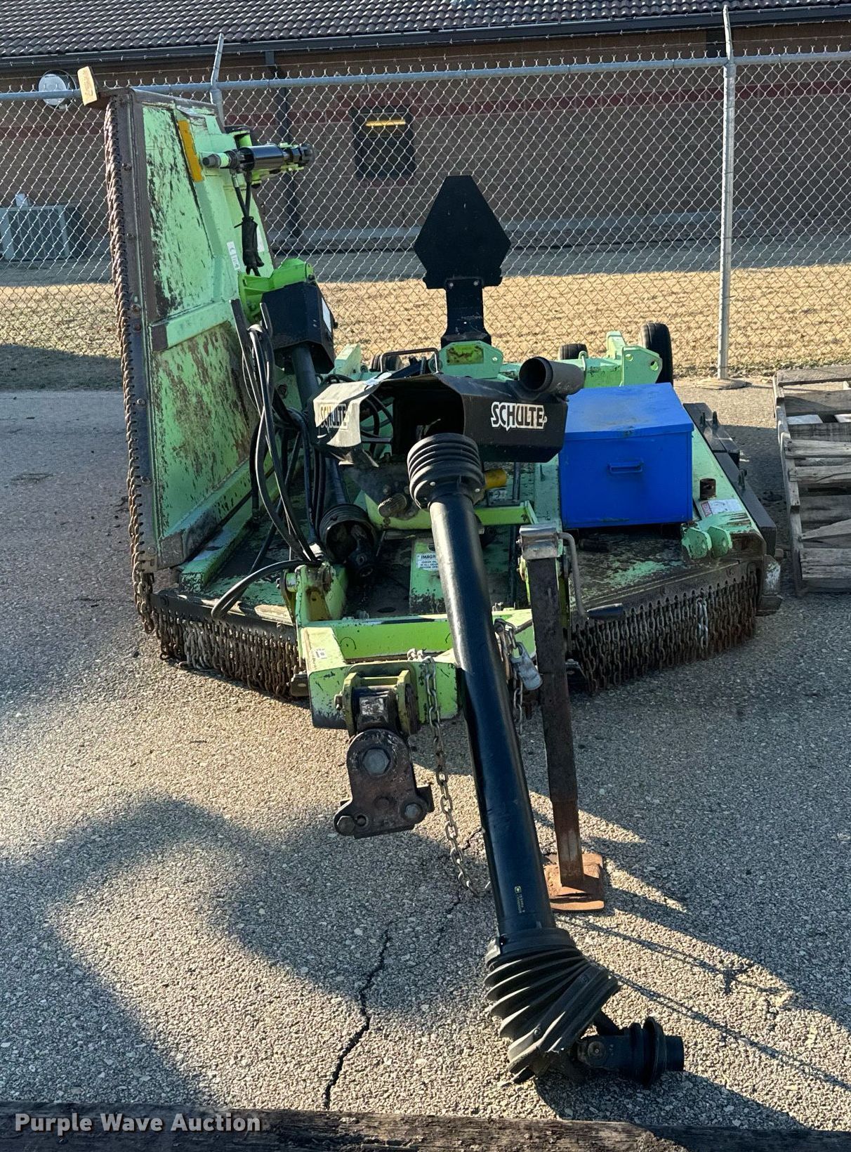 2006 Schulte XH1000 rotary mower. Serial: C30200785606, KDOT ID: 394-2056. Features Width: 10', Hydraulic lift, Hydraulic fold, PTO: 1000. Tires Size: 22x6.6-10, Solid. Notes Main PTO shaft damaged, Center gear box loose, Non-operational unit. Kansas Dept. of Transportation. 1006 North 3rd. Salina, KS 67401