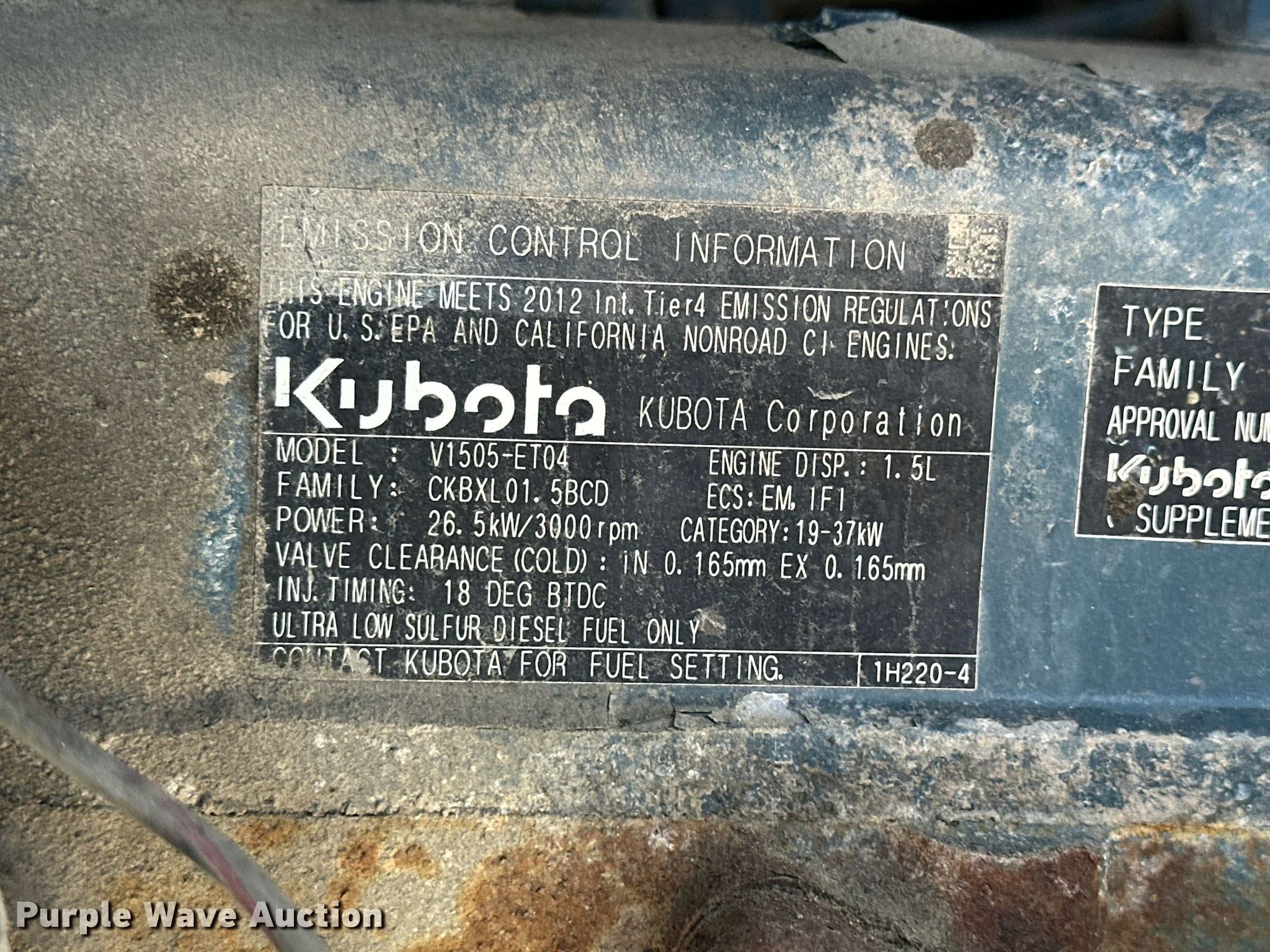2012 Stepp SRM-10X120 asphalt recycler. Hours: 418 on meter, VIN: 4S9RM1124CS127060, KDOT ID: 607-2013. Engine Kubota V1505-ET04, Displacement: 1.5L, Cylinders: 4, Fuel type: Diesel. Chassis Hitch: Pintle, Landing gear: Single, Suspension: Spring, Brakes: Electric, Axles: Tandem, GVWR: 10,160 lbs, GAWR: 6,000 lbs. Features (2) burners Fuel type: Diesel, Insulated wand, Kettle capacity: 120 gallons, Mixer Dimensions: Approx. 65" x 39" x 49", Conveyor Approx. 13' L x 18" W. Tires Size: ST225/75R15. Notes Conveyor issues, Insulated wand issues, Engine issues, will not start, Kettle full of oil, Landing gear welds cracked, Hour meter replaced at 533 hours, Battery may need replaced, Non-operational unit. Ownership documentation will be distributed after confirmation of payment and removal. This is worksite support equipment and will not come with a title. Transfer of ownership documentation will be a bill of sale. Kansas Dept. of Transportation. 1006 North 3rd. Salina, KS 67401