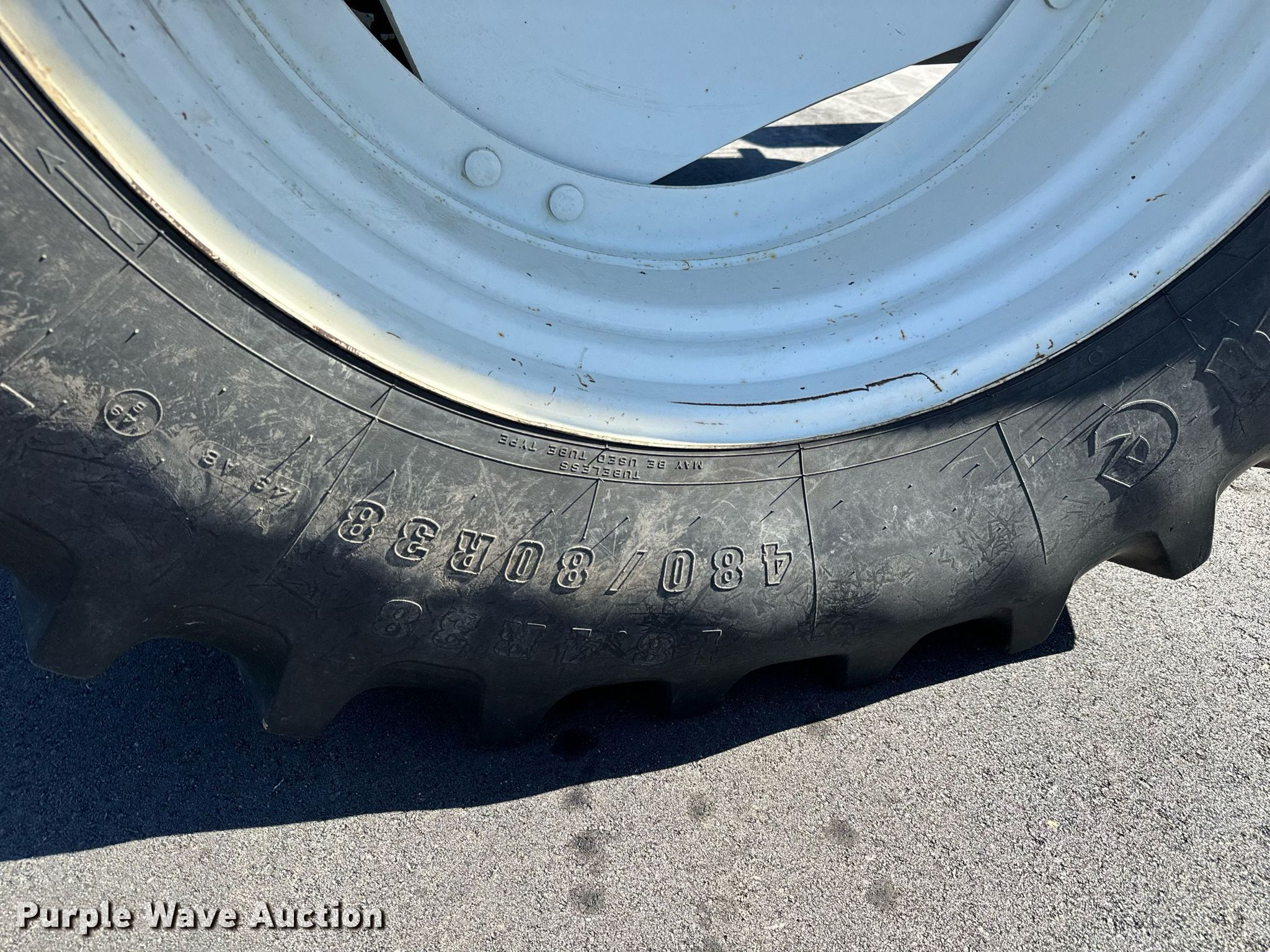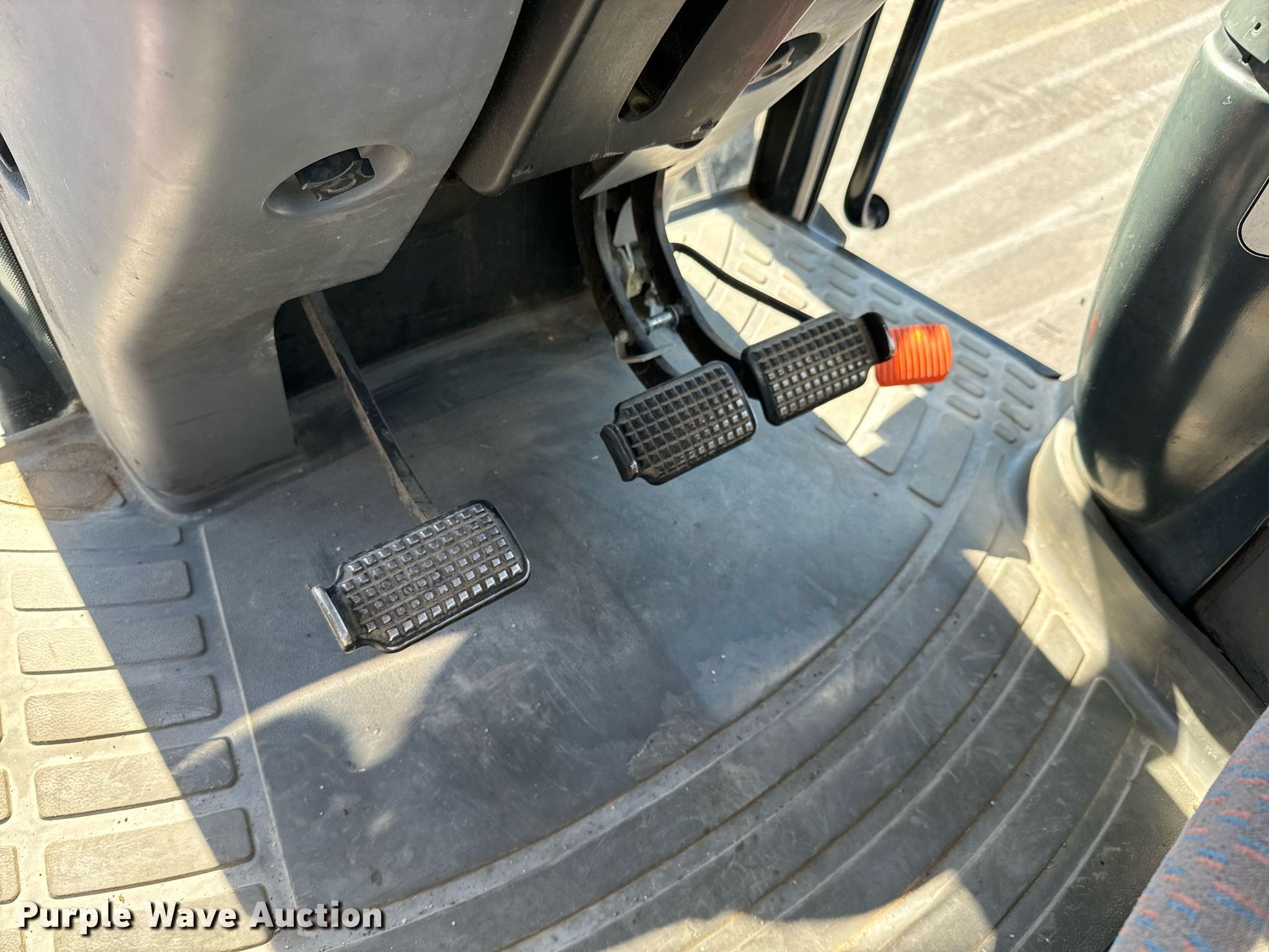 2006 New Holland TM-120 MFWD tractor. Hours: 5,686 on meter, Serial: ACM270528, KDOT ID: 352-2046. Engine Cylinders: 6, Fuel type: Diesel. Transmission Powershift, 16F - 6R, Left-hand reverser, Differential lock. Operators station AC, Heat. Features PTO: 540, 1000, Three point Top link, Seven pin outlet, Hydraulic remote sets Rear: 3, Rear weight box, Loader Quicke Q55, Quick attach, Controls: Joystick, Bucket Width: 74".. Tires Front: 14.9R28, Rear: 480/80R38. Notes Loader hydraulic leaks, Batteries may need replaced. Kansas Dept. of Transportation. 1006 North 3rd. Salina, KS 67401