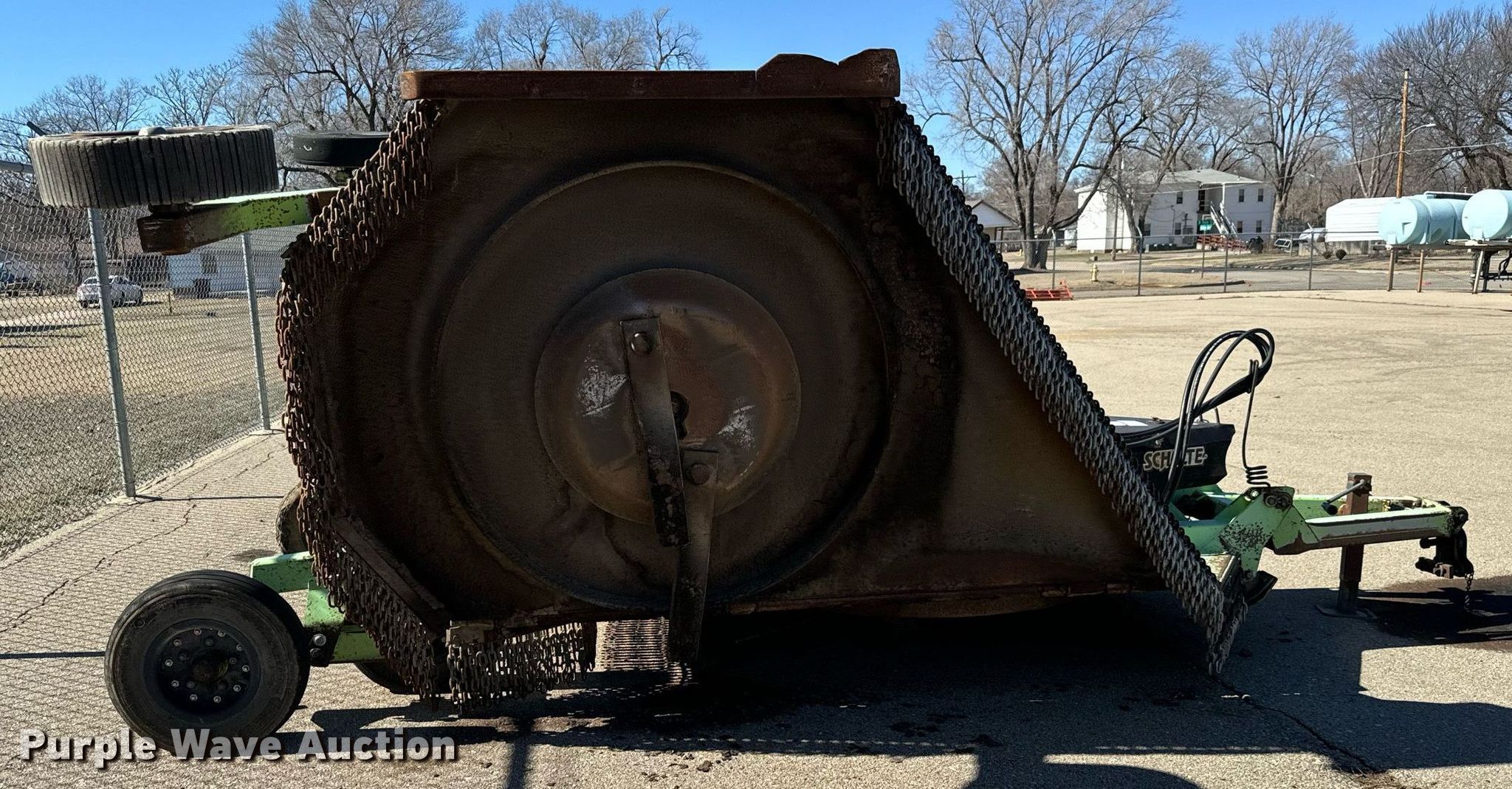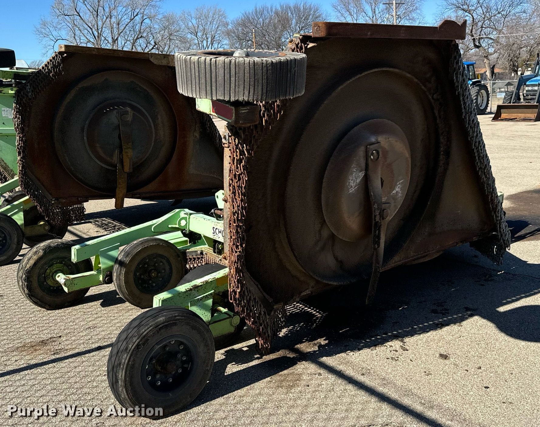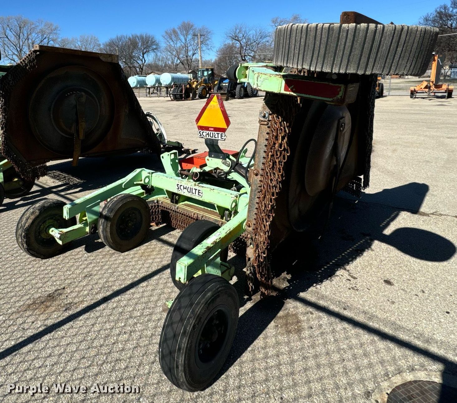 Schulte XH1000 rotary mower. Serial: C30200786606, KDOT ID: 394-2066. Features Hydraulic lift, Hydraulic fold, PTO: 1000. Tires Size: 22x6.6-10, Solid. Notes PTO half shaft missing, Unknown operating condition. Kansas Dept. of Transportation. 1006 North 3rd. Salina, KS 67401