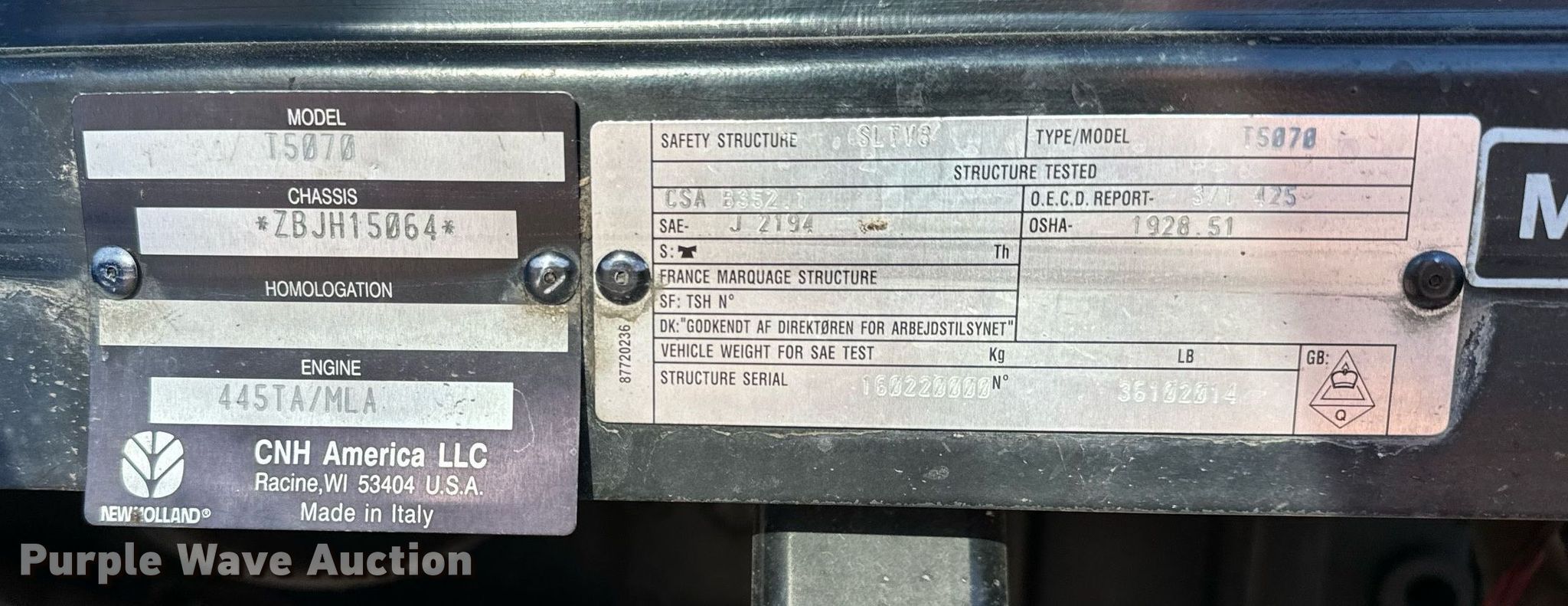 Purple Wave is selling a used Tractor in Kansas. This item is a 2012 New Holland T-5070 MFWD tractor with the following: Hours: 5,853 on meter, Serial: ZBJH15064, KDOT ID: 352-5151