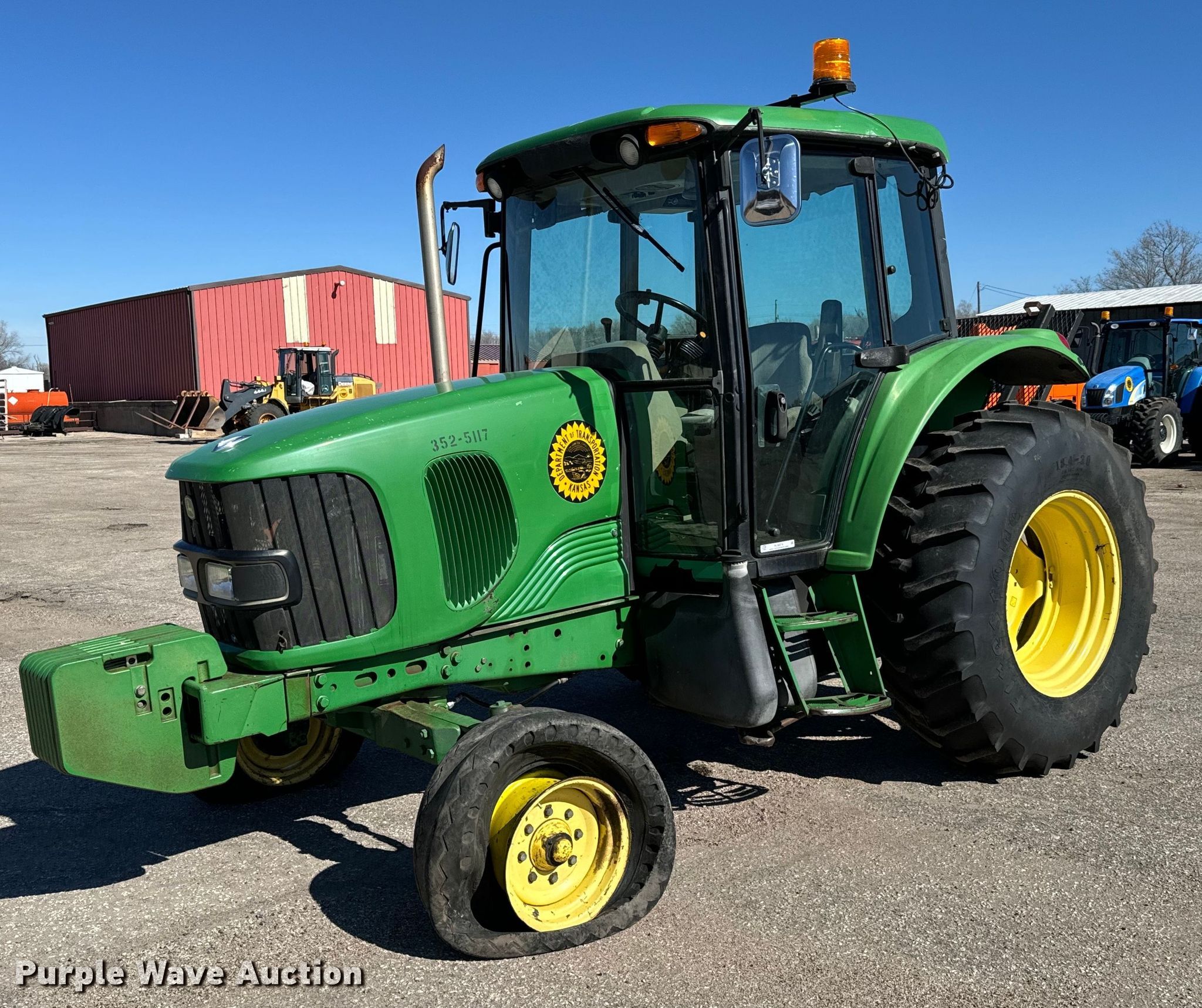 Purple Wave is selling a used Tractor in Kansas. This item is a 2007 John Deere 6415 tractor with the following: Hours: 5,128 on meter, Serial: L06415B542832, KDOT ID: 352-5117