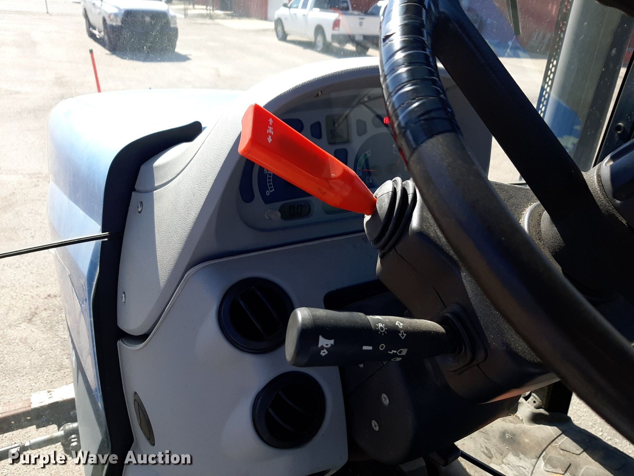 2008 New Holland T-6020 tractor. Hours: 5,003 on meter, Serial: Z8BD20757, KDOT ID: 352-5098. Engine Cylinders: 4, Fuel type: Diesel, HP: 95. Transmission Dual Command, 24F - 24R, Left-hand reverser. Operators station AC, Heat. Features PTO: 540, Three point, Hydraulic remote sets Rear: 3, Suitcase weights: 8. Tires Front: 11L-16, Rear: 460/85R30. Kansas Dept. of Transportation-Shop. 500 N. Hendricks. Hutchinson, KS 67504