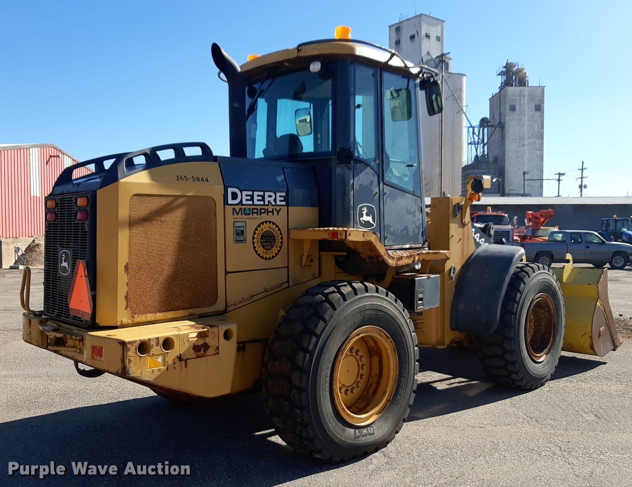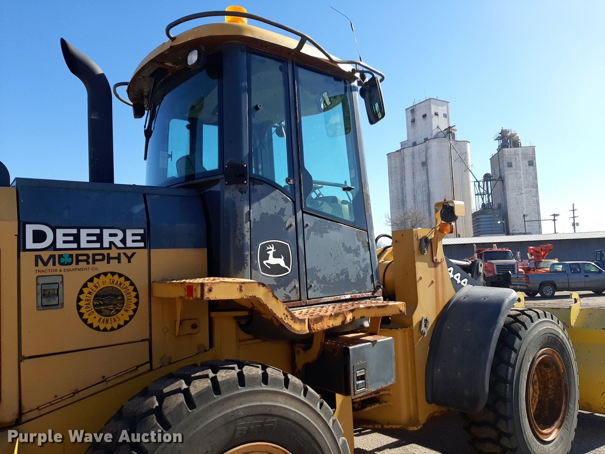 Purple Wave is selling a used Wheel Loader in Kansas. This item is a 2005 John Deere 444J wheel loader with the following: Hours: 5,679 on meter, Serial: DW444JZ594927, KDOT ID: 365-5044