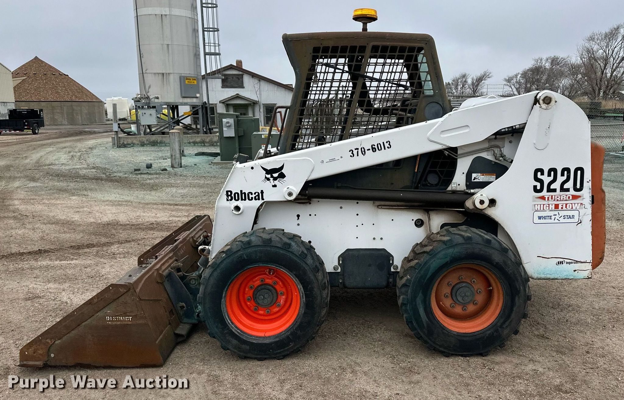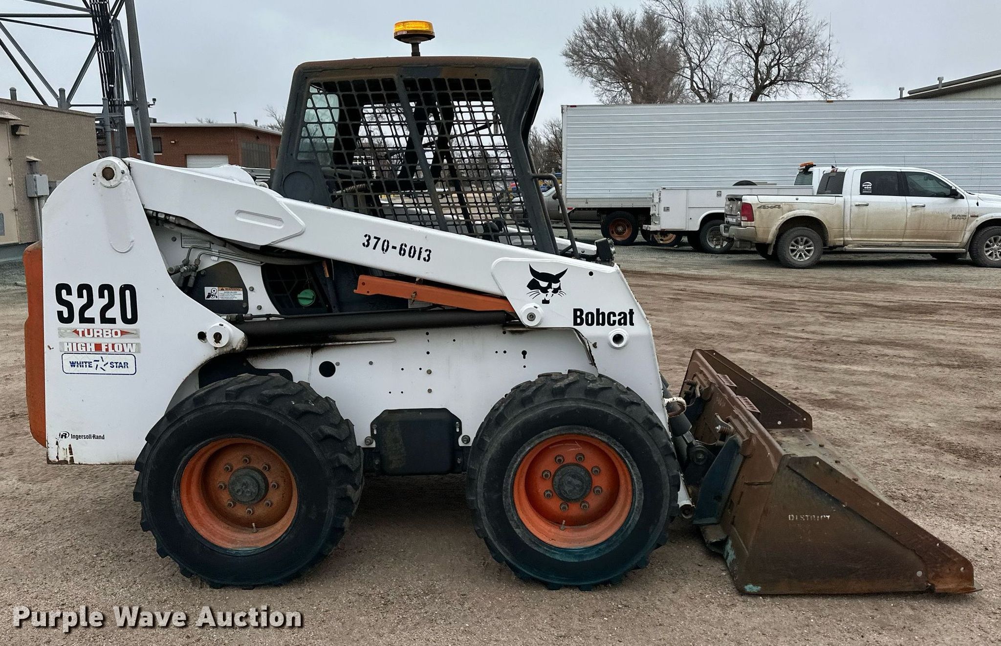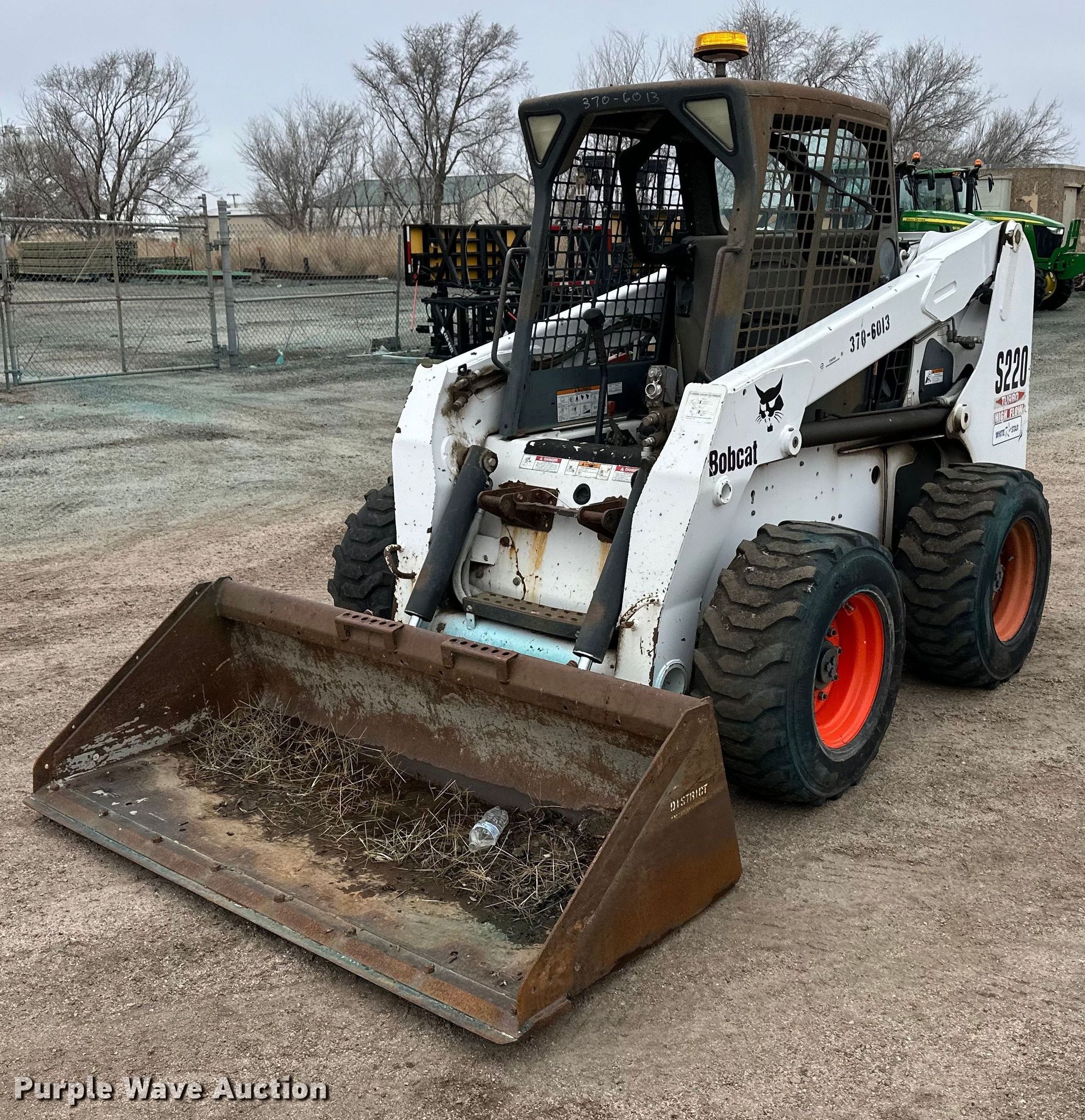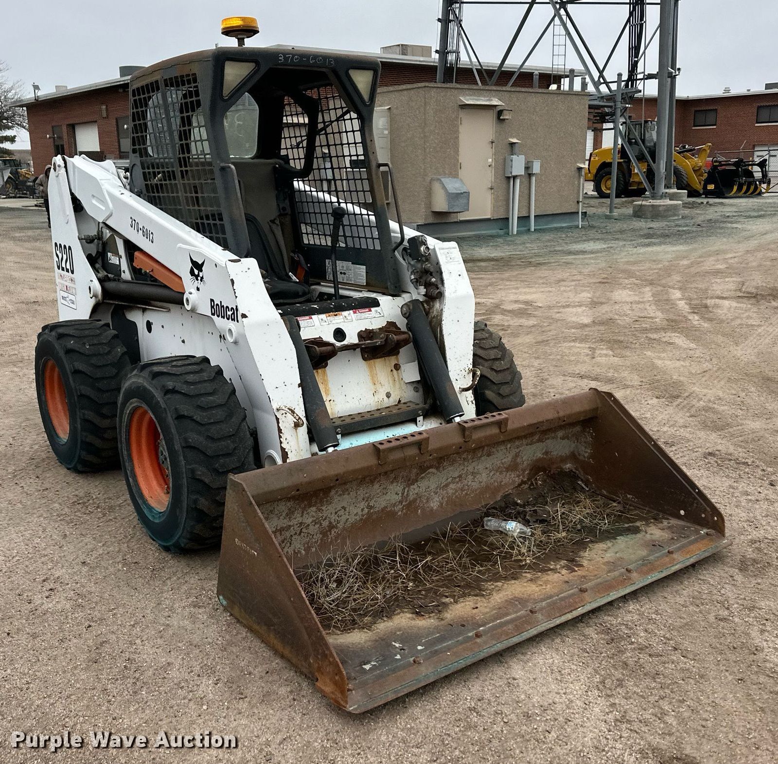 Purple Wave is selling a used Skid Steer Loader in Kansas. This item is a Bobcat S220 skid steer loader with the following: Hours: 1,751 on meter, Serial: 523211178, KDOT ID: 370-6013