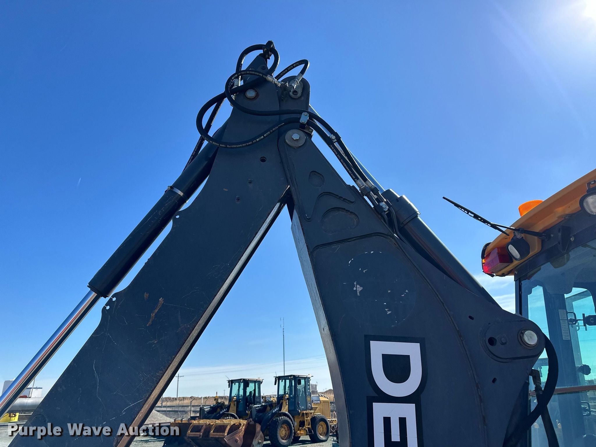 2008 John Deere 310J backhoe. Hours: 2,590 on meter, Serial: T0310JX160597, KDOT ID: 363-6028. Engine John Deere, Displacement: 4.5L, Cylinders: 4, Fuel type: Diesel. Transmission Powershift, 4F - 4R. Chassis Four wheel drive, Differential lock. Operators station Enclosed cab, AC, Heat, Backhoe controls: Wobble stick / two stick. Features Loader Bucket Width: 86", Cutting edge: Bolt-on, Backhoe Extendable stick, Bucket Width: 24", Teeth: 5.. Tires Front: 12-16.5, Rear: 19.5L-24. Kansas Department of Transportation - Garden City. 121 N Campus Drive. Garden City, KS 67846