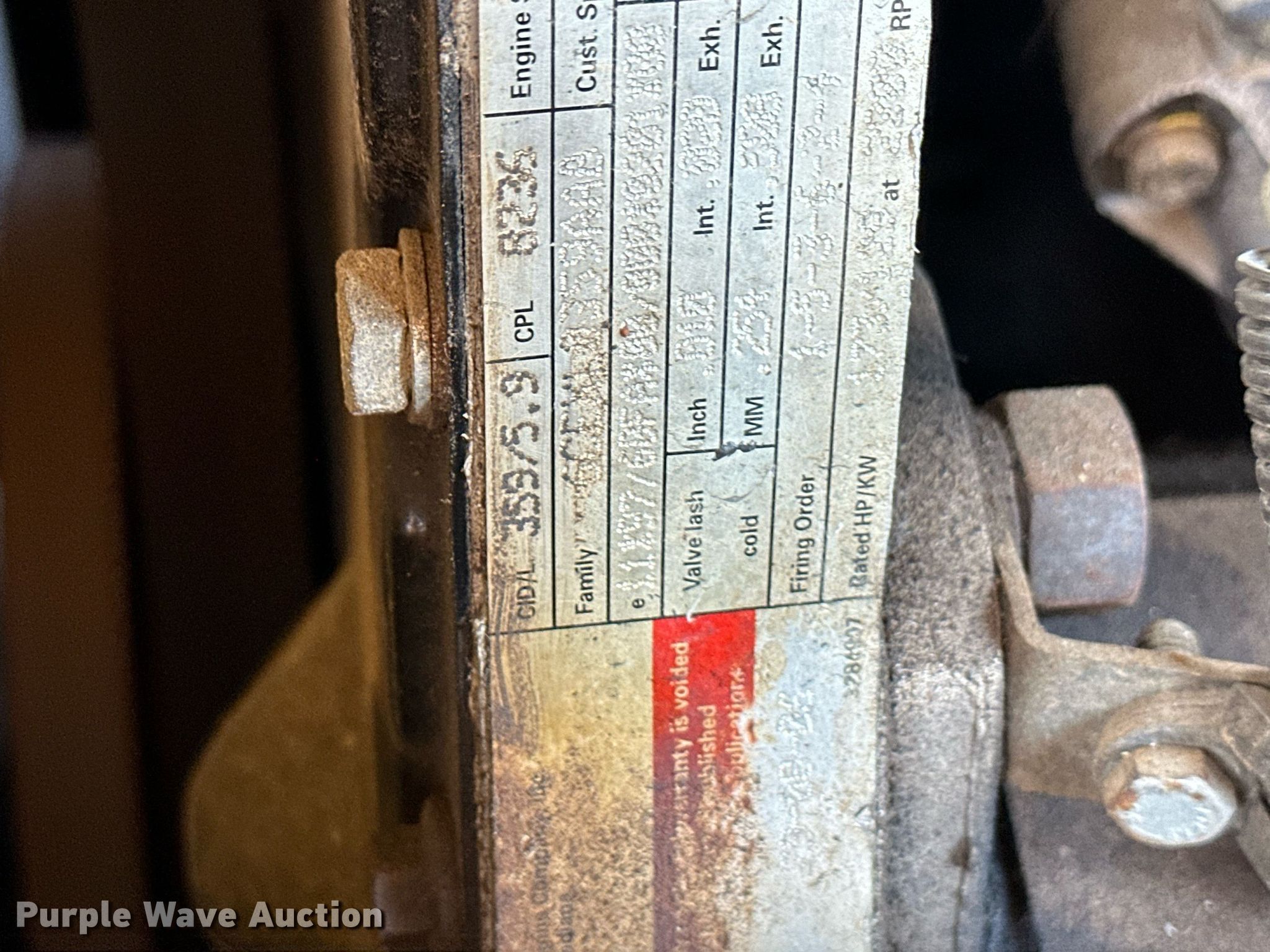 2006 JCB 436 ZX wheel loader. Last known hours: 2,959, Serial: JCB436Z0K61305215, KDOT ID: 369-6046. Engine Cummins, Displacement: 5.9L, Cylinders: 6, Fuel type: Diesel. Transmission Powershift, 4F - 3R. Operators station Enclosed cab, AC, Heat, Bucket controls: Joystick. Features Quick coupler: Hydraulic, Bucket Capacity: 4 cu.yd., Width: 106", Self- leveling bucket, Cutting edge: Bolt-on. Tires Size: 550/65R25. Notes Bucket lift cylinder leak, Flat tire. Kansas Department of Transportation - Garden City. 121 N Campus Drive. Garden City, KS 67846