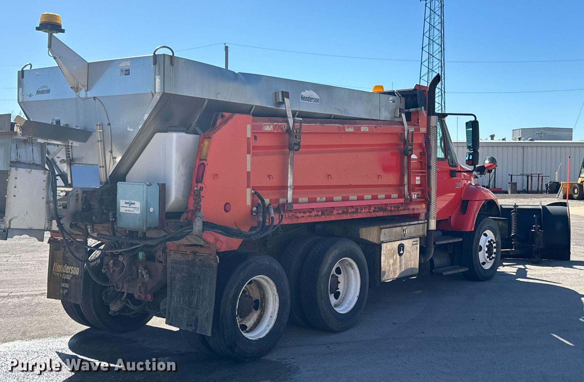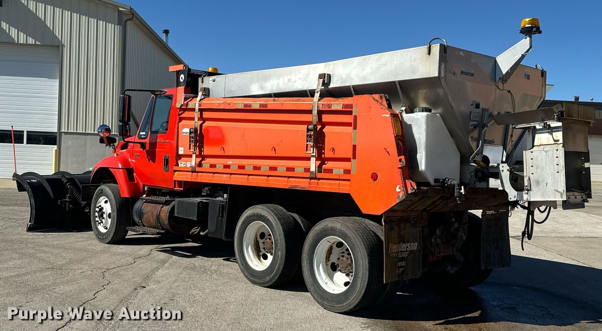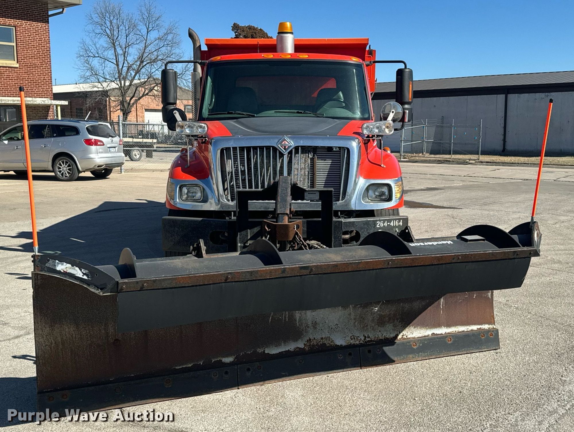 2005 International 7400 dump truck. Miles: 241,526 on odometer, Hours: 11,875 on meter, VIN: 1HTWHAAR45J139056, KDOT ID: 264-4164. Engine International DT466, Displacement: 7.6L, Cylinders: 6, Fuel type: Diesel. Transmission Automatic. Chassis Axles: Tandem, Suspension: Spring over walking beam, Brakes: Air, Front mount PTO, Wheelbase: 183". Features Dump bed 13' L x 8' W, Side height: 40", Bed type: Steel, Ram: Single, Spreader Henderson, Plow Henderson, Width: 132". Tires Size: 295/75R22.5. Titles will be distributed after confirmation of payment and removal. Kansas title. Title distribution may be delayed up to 30 days from verification of funds. Kansas Dept. of Transportation - Chanute. 411 W 14th St. Chanute, KS 66720