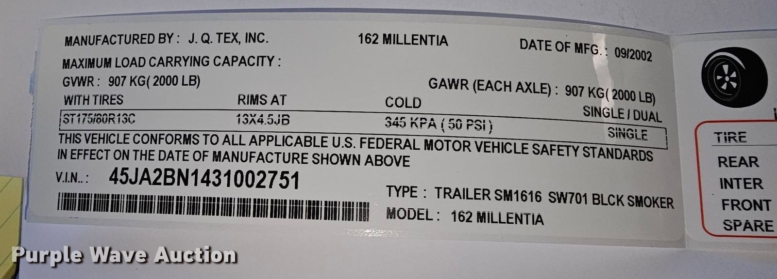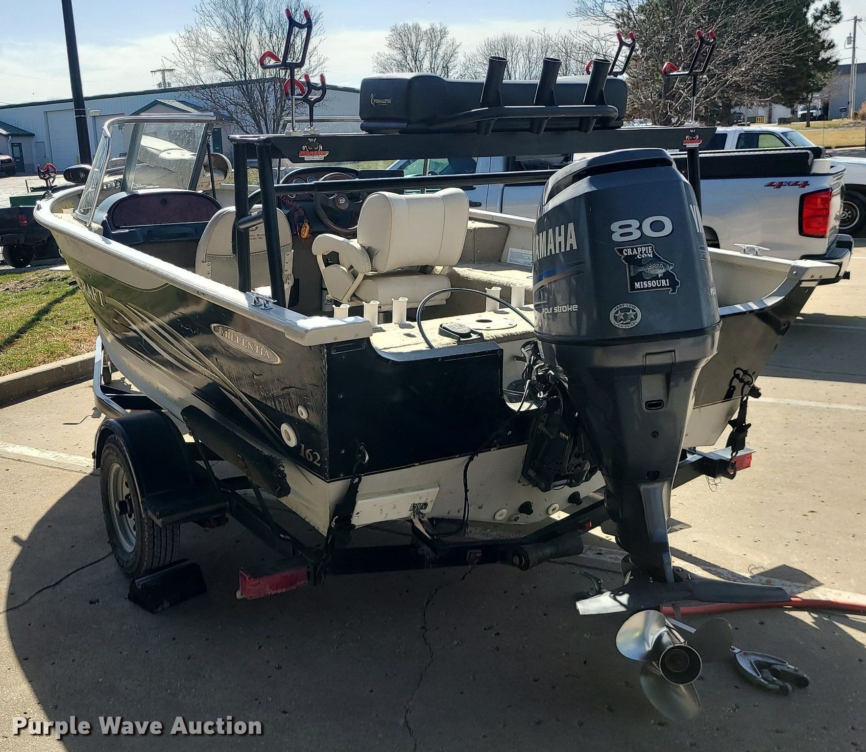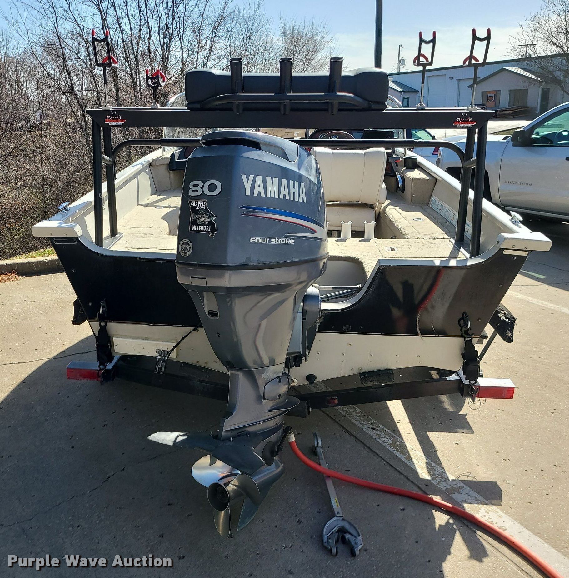 2003 Smokercraft Millenta 162 boat. Length: 16', Hull ID: SMK477341203. Engine Engine type: Outboard, Yamaha F80tlra, Serial: 67GL308210, Fuel type: Gas, HP: 80. Operators station Capacity Person: 5, 750 lbs. Features Trolling motor: Minn Kota. Trailer 2003 JQ Tex, VIN: 45JA2BN1431002751, Overall length: 18', Overall width: 84", Ball hitch size: 2", Axles: Single, Tire size: ST175/80R13. Notes Trailer tongue bent. Boat: Missouri title. Motor: Missouri title. Trailer: Missouri title. Title distribution may be delayed up to 14 days from verification of funds. Commercial Waterproofing, Inc... 6330 Northwest Kelly Drive. Kansas City, MO 64152